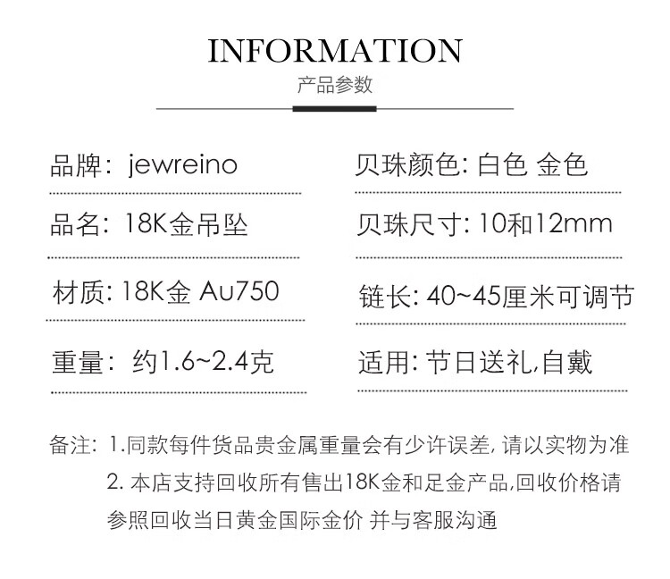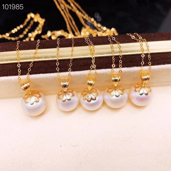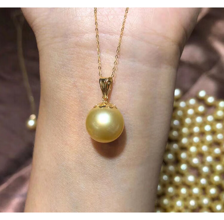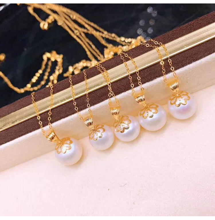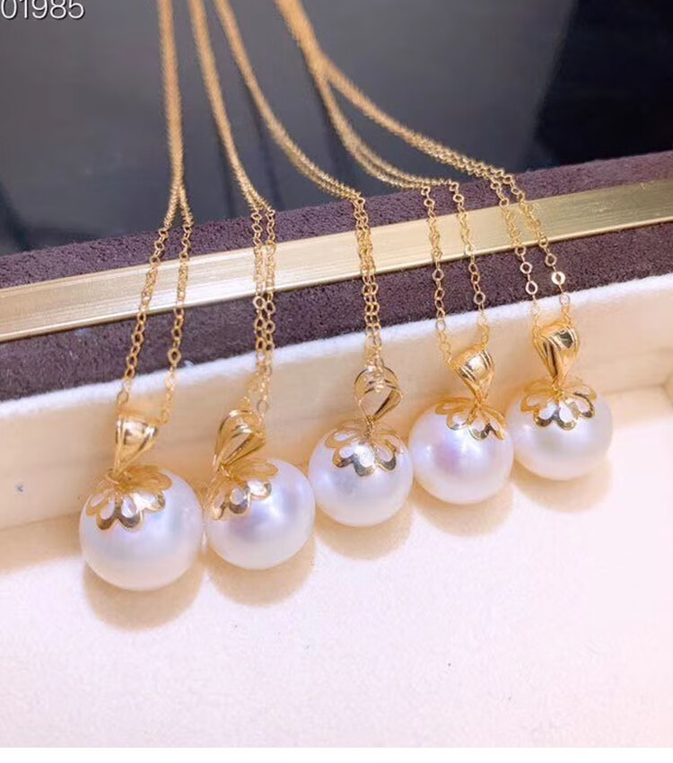 Junbu 18k gold Au750 color gold pearl necklace pendant single single pendant for women rose gold buckle without chain South Sea gold beads 18K gold + white beads 10mm (not including necklace)