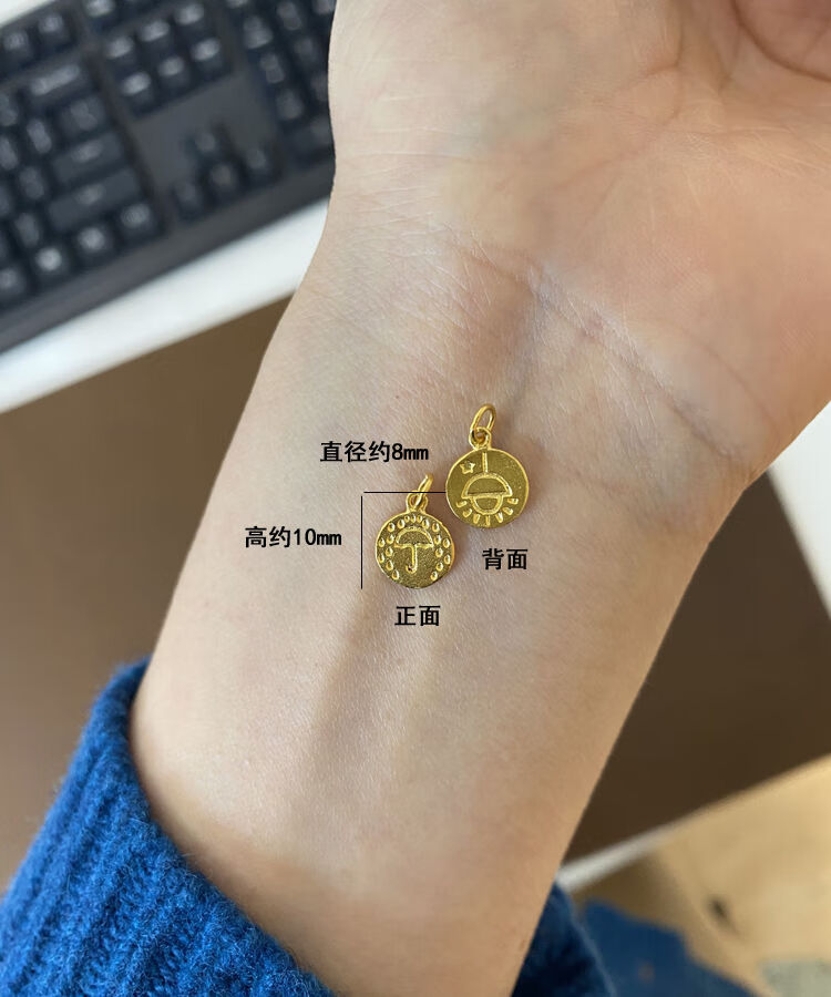 Junbu Pure Gold Customized Gold Circle Pendant with Lights and Umbrella in the Dark and Rainy Days, 18K Gold Necklace, Single Pendant Approximately 0.66-0.68g