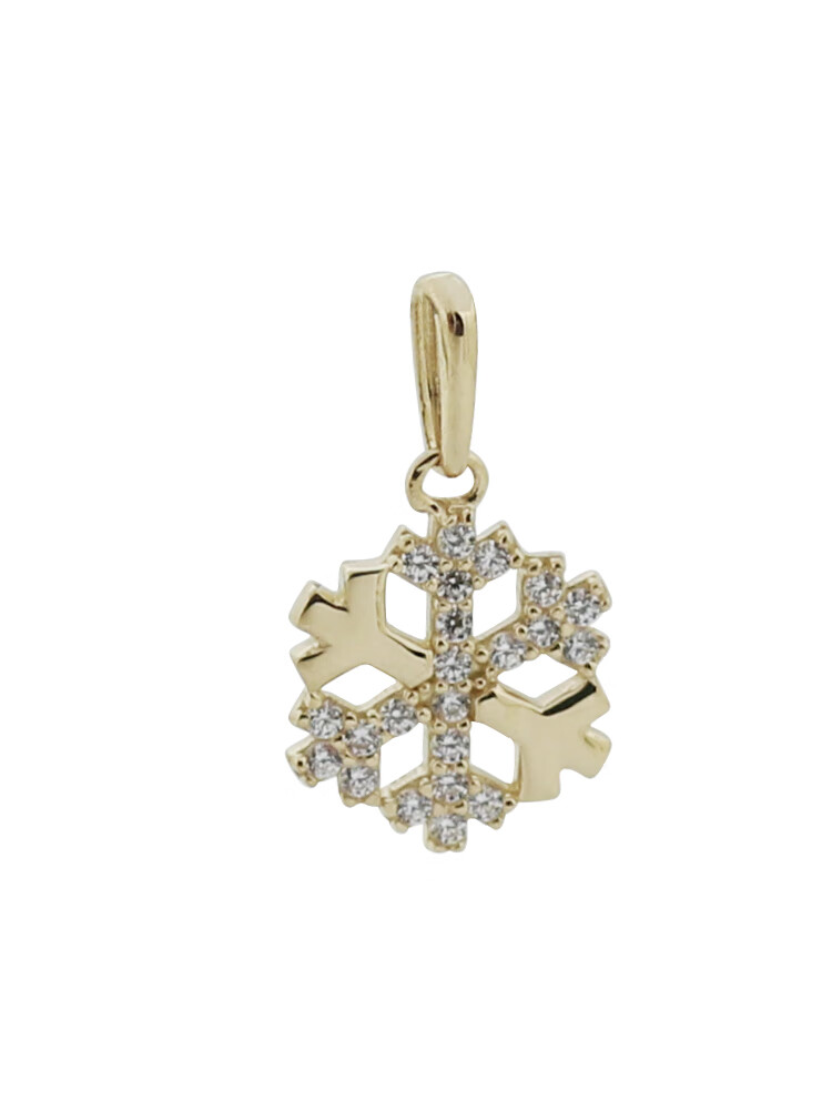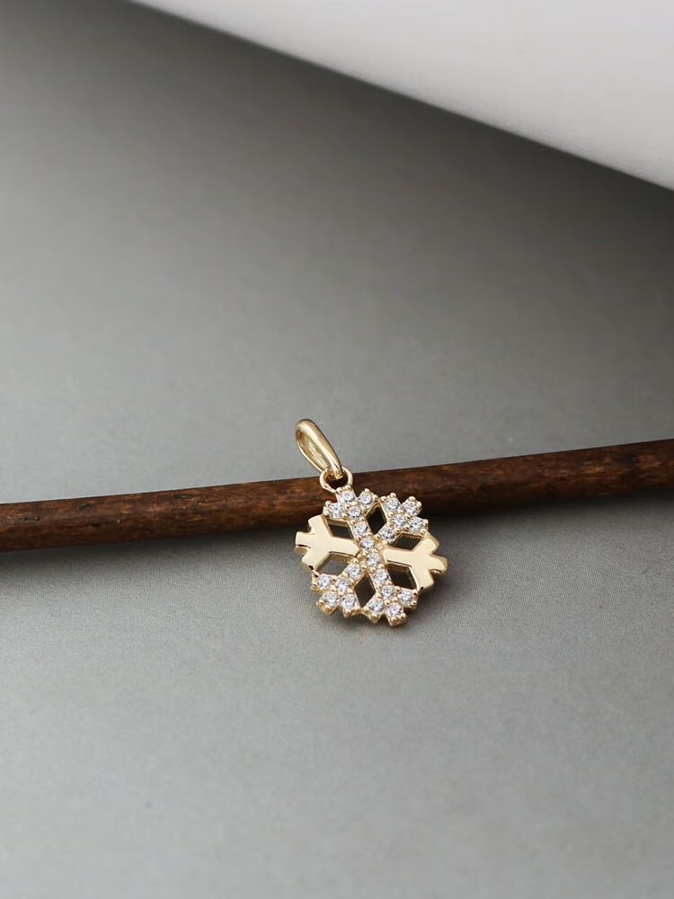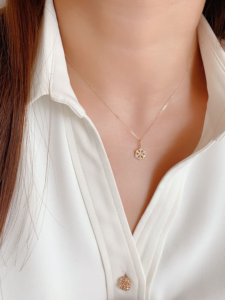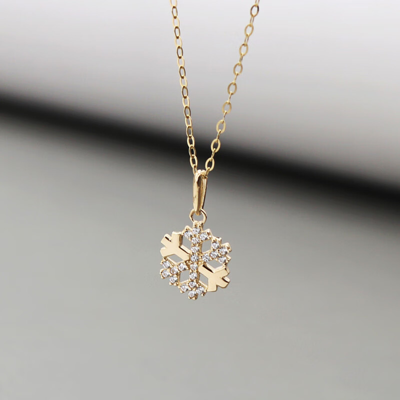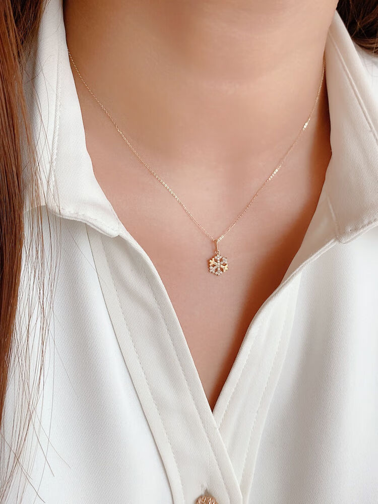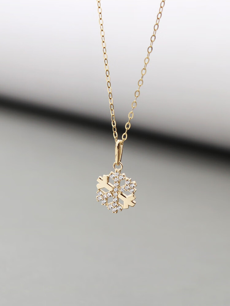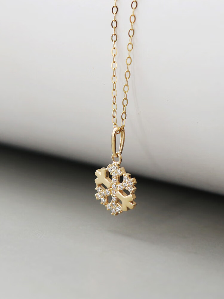 Junbu South Korea imported pure 14K gold pendant for women, high-end, versatile snowflake inlaid design, K gold clavicle chain gift, 14K gold color, individual pendant, chain not included