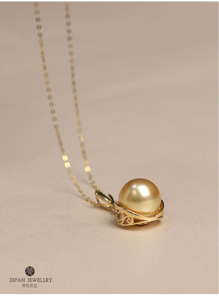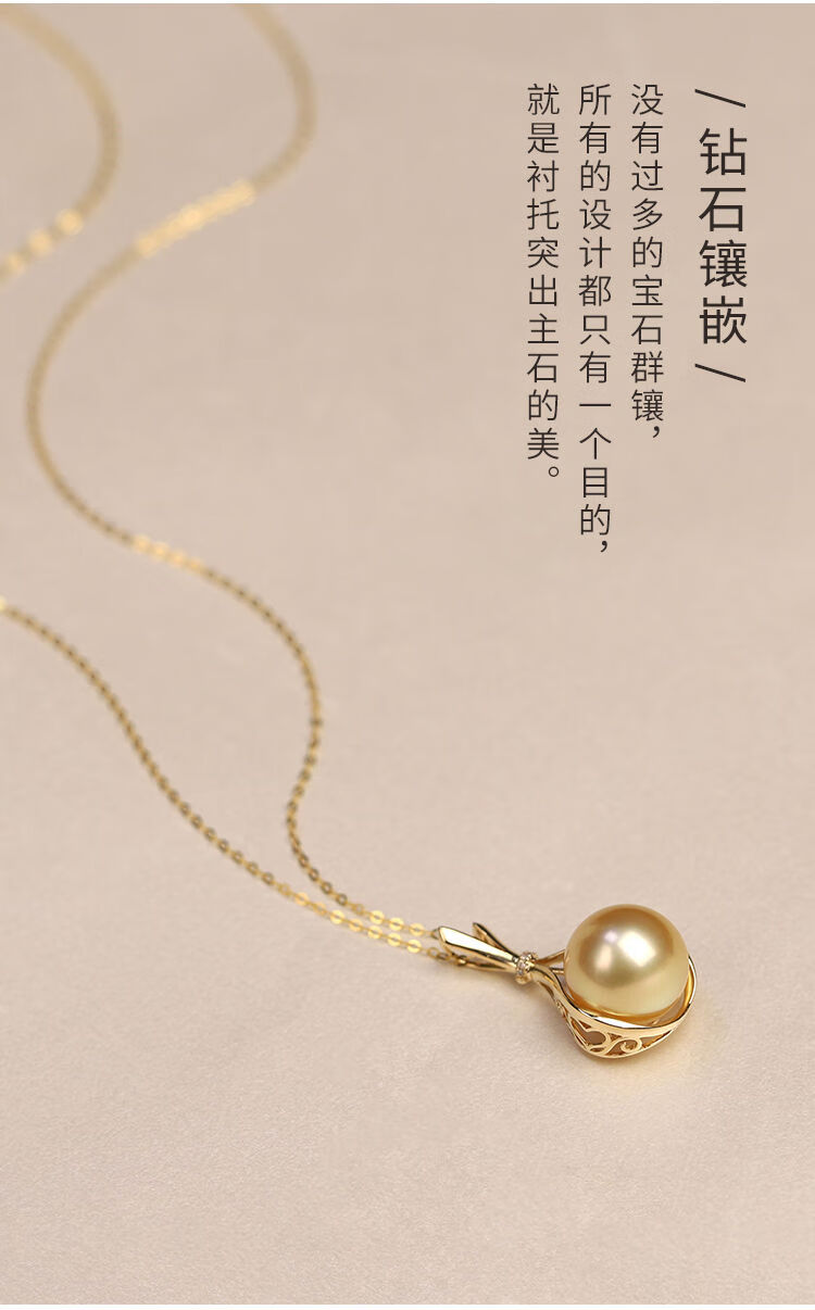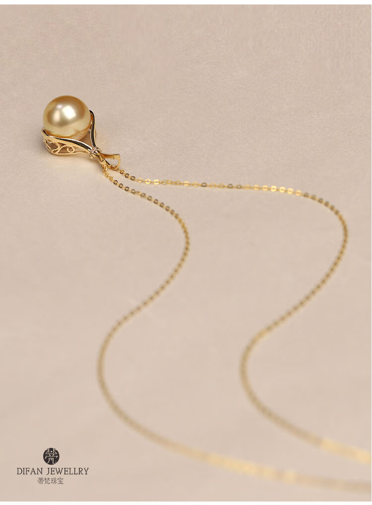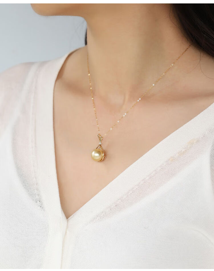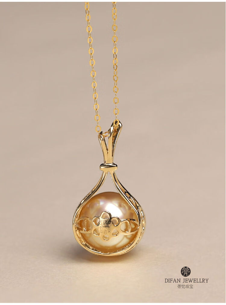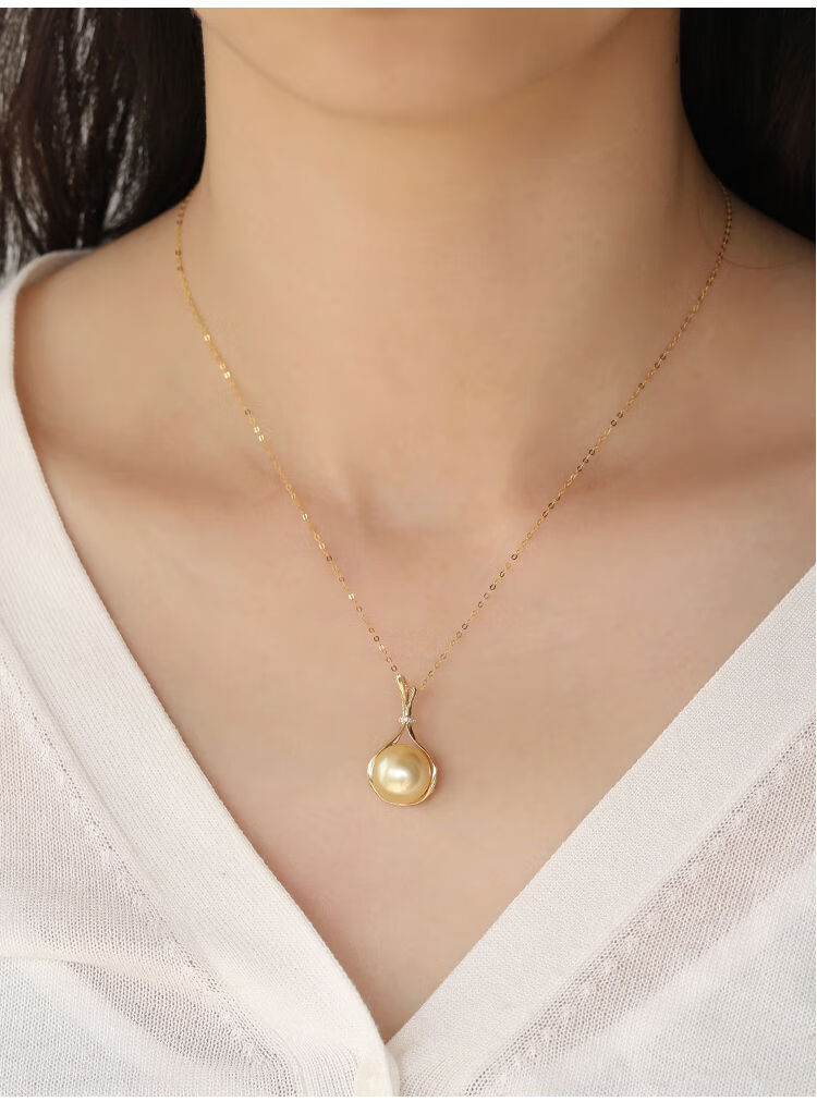 Jun Bu means natural color South Sea gold pearls, seawater pearls, 18k gold diamond lucky bag pendant necklace, 18k gold diamond/single pendant (excluding chain) 12-13mm