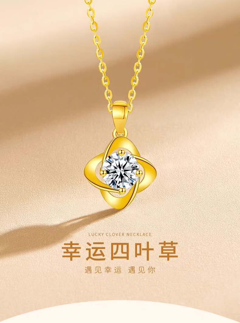 Chu Xiaoxiang gold four-leaf clover necklace for women imitation pure gold pendant 18K pure gold for Valentine's Day for your girlfriend Four-leaf clover