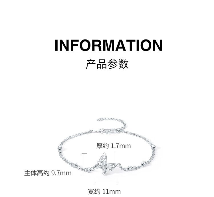 Saturday Fortune (ZLF) PT950 platinum bracelet for women, versatile sparkling butterfly bracelet for your girlfriend, 16+3cm-2.95g