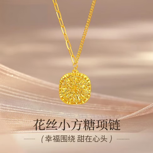 Shilian Gold Sparkling Sugar Cube Earrings Love Sugar Cube Pendant Pure Gold Pendant Holiday Gift (0.85g) Small Sugar Cube Pendant + 18k Necklace