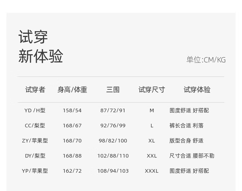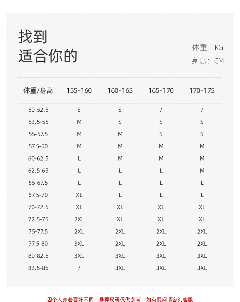 China (cm) 160-165/84-86 165-170 / 88-90 167-172 / 92-96 168-173 / 98-102 170-176 / 106-110