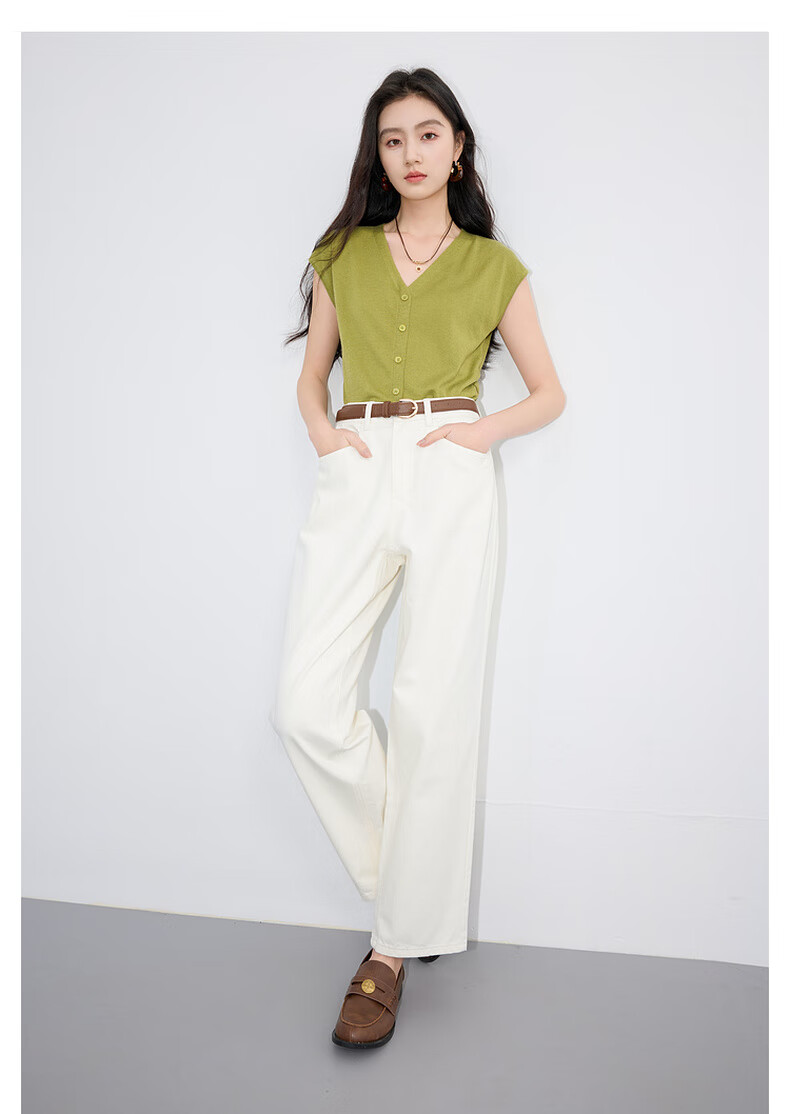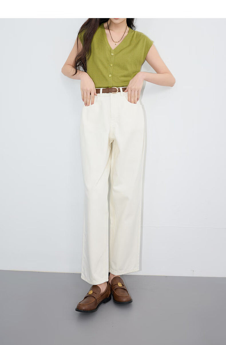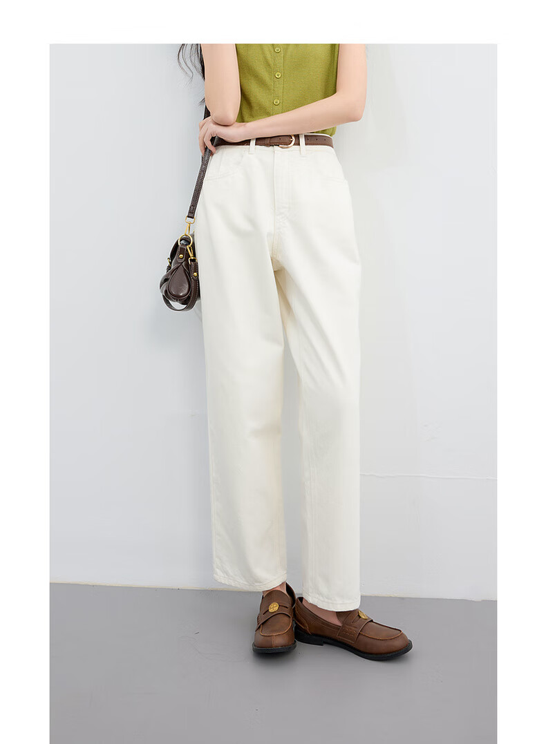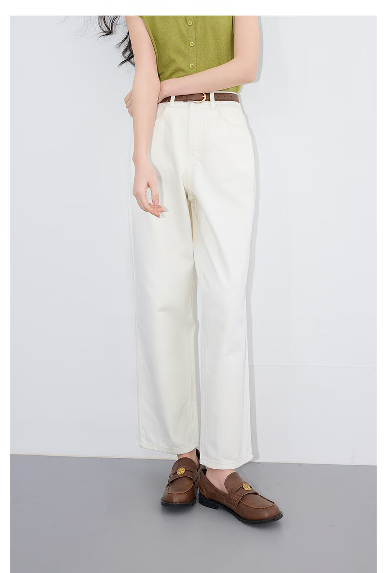 Three Color Large Size Women's Clothing 2025 Autumn Casual Cotton High Waist Jeans Straight White Pants Make Slimming MM Milky White L 165/76B