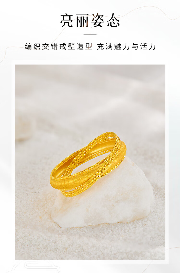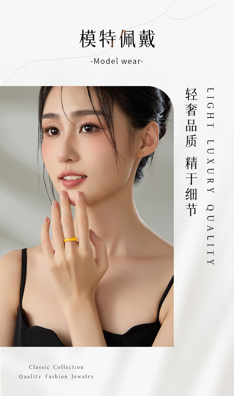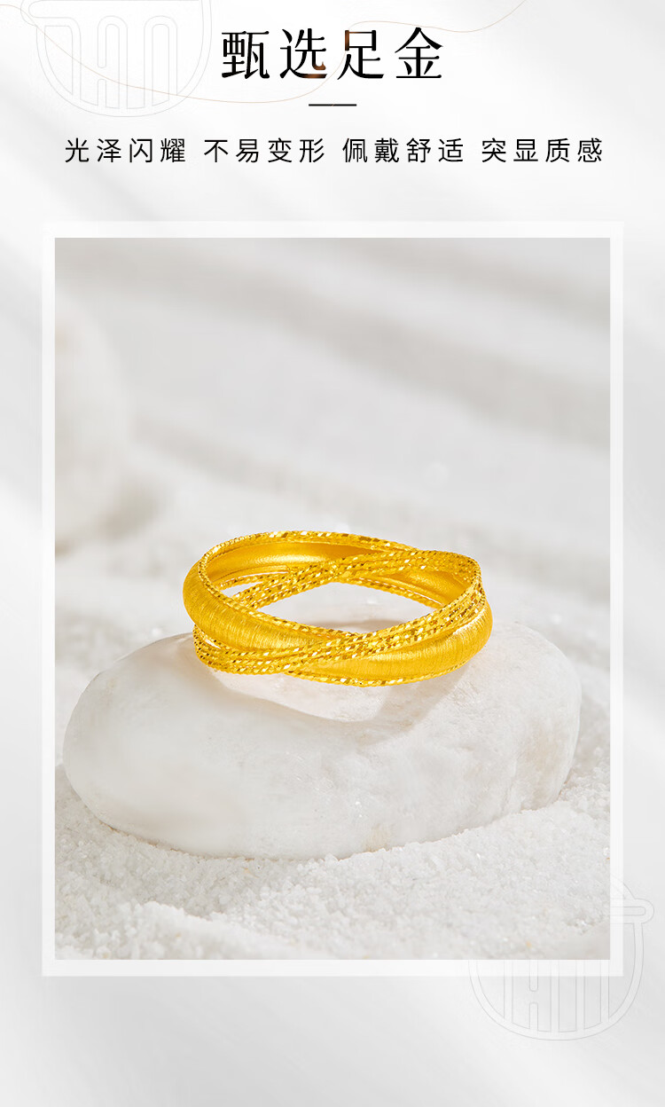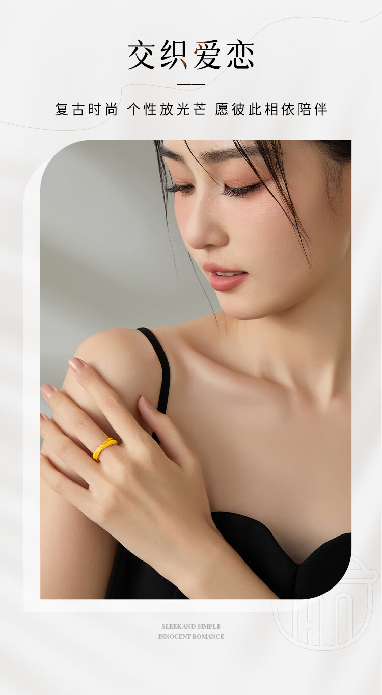 Laomiao gold ring boutique 5G Golden Years interlocking solid gold women's ring to give to girlfriend and wife's birthday Chinese Valentine's Day gift Golden Years women's ring 16# about 4.5g