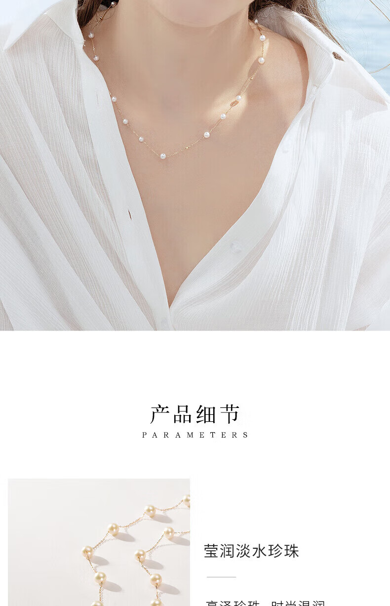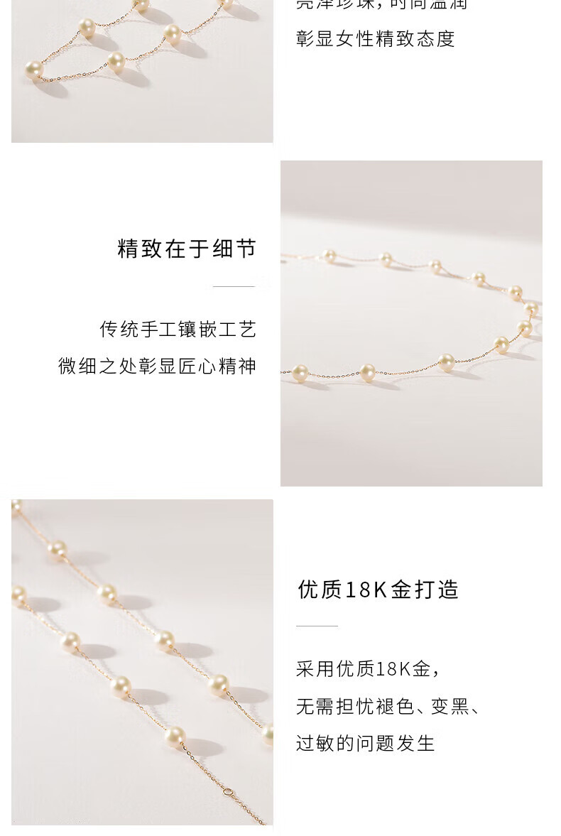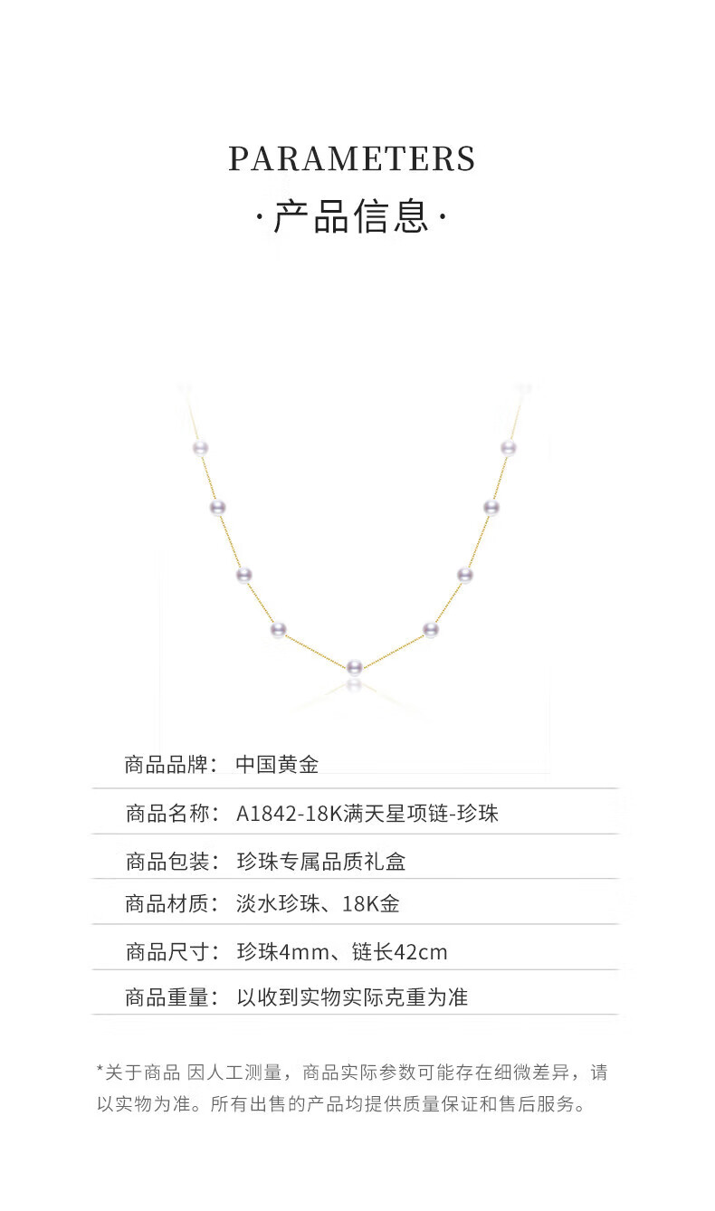 China Gold (CHINA GOLD) 18K gold freshwater pearl necklace women's fashion chain set birthday gift for girlfriend, wife, mother, elders practical gypsophila 18k gold pearl necklace