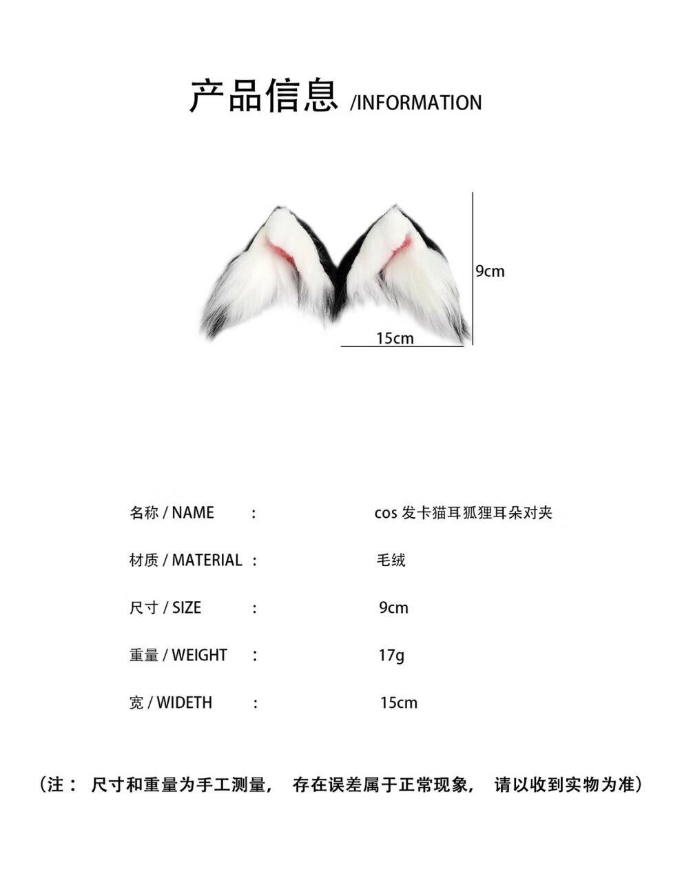 MOYAN puppy animal ear hair clip super cute Japanese cos hair clip cat ear fox ear clip cat hair accessories trendy men black and white hair clip (TS1188) B05-204