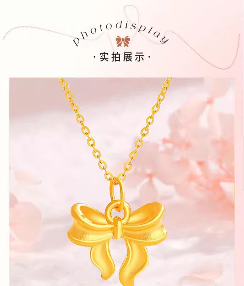 Junbu gold bow necklace new 18k gold pendant 999 gold clavicle chain girlfriend gift fugitive princess bow necklace