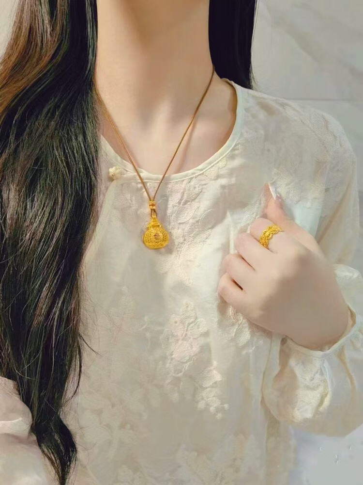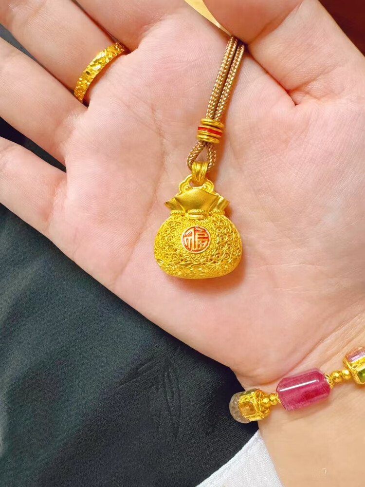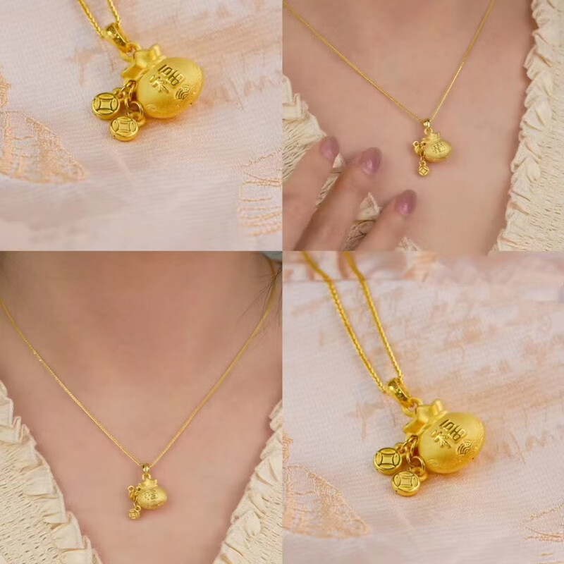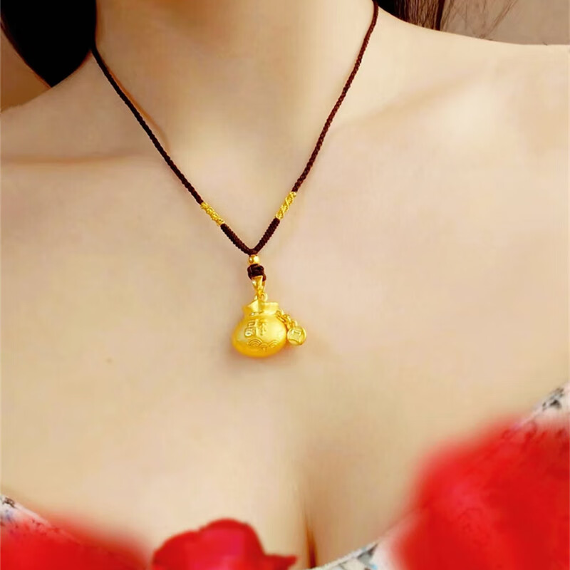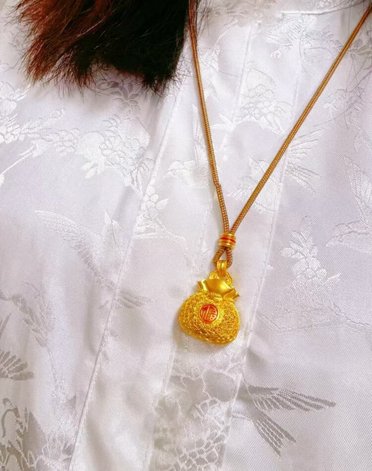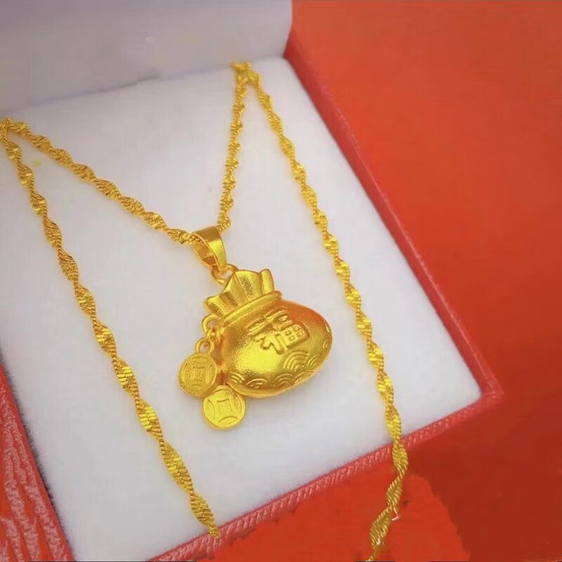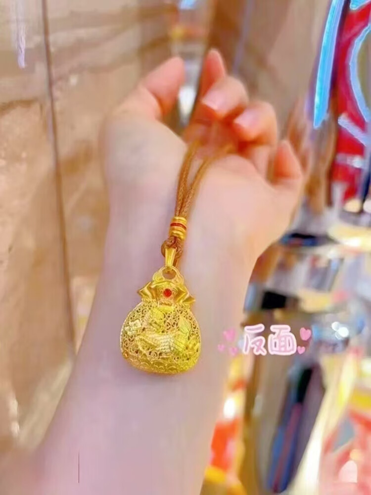 Junbu's new versatile small lucky bag gold pendant for women to transfer ancient money and coin lucky bag imitation gold necklace gift 18K gold unicorn lucky bag pendant + lanyard
