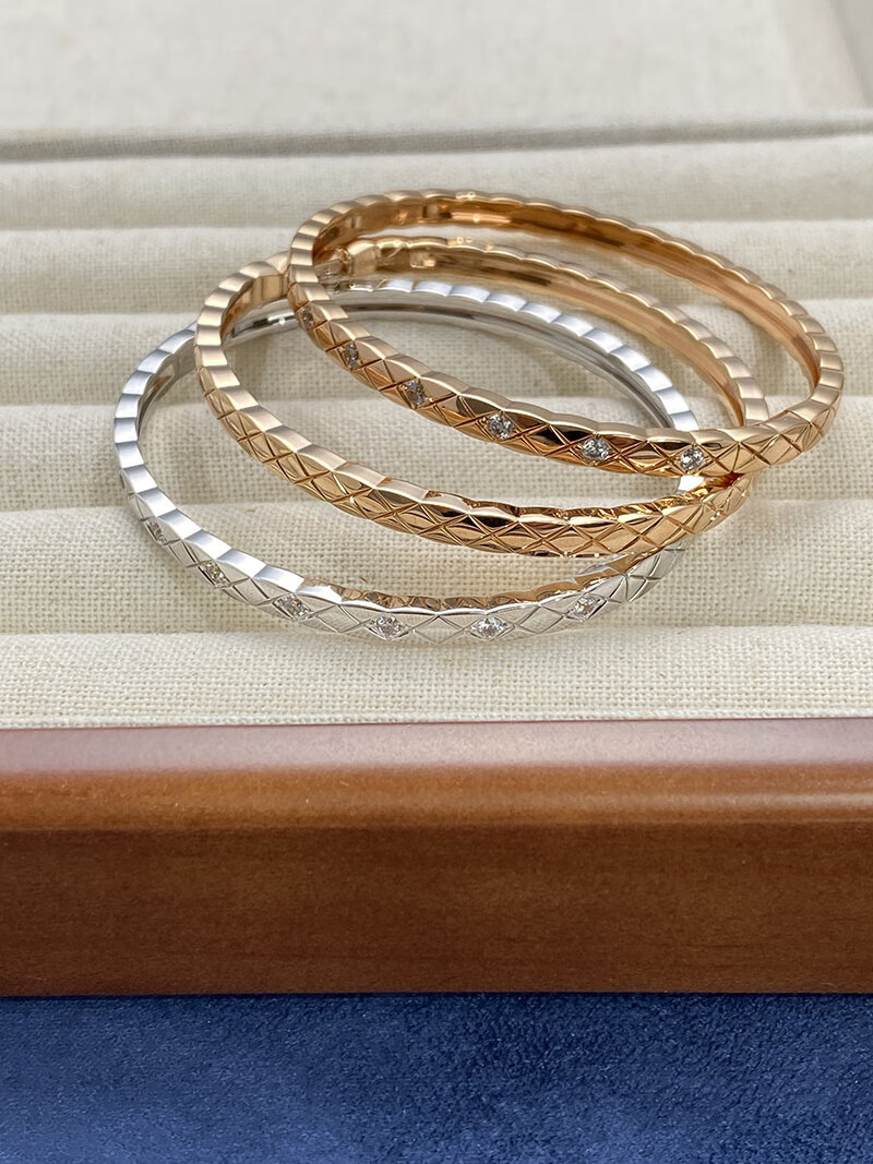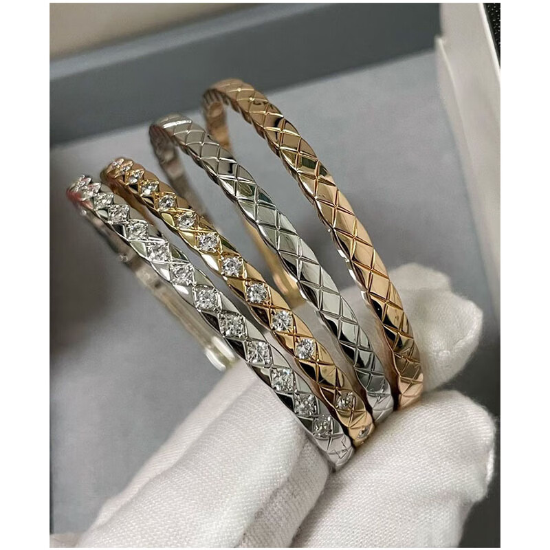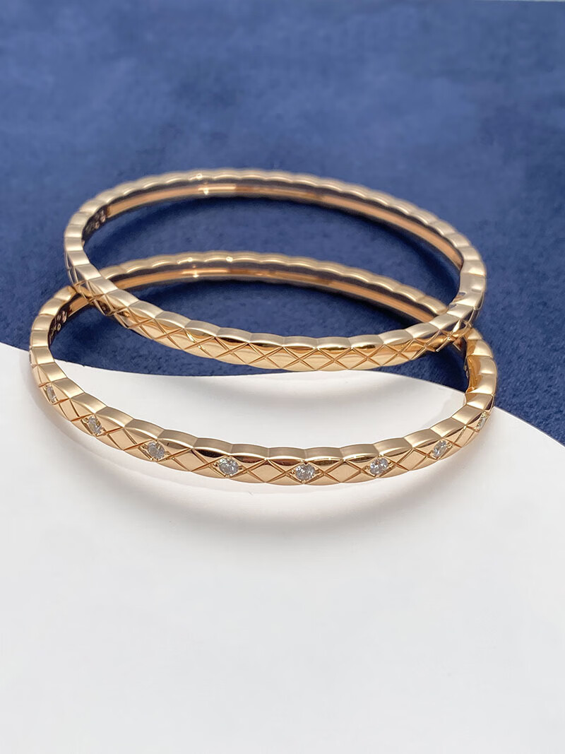 Shilian narrow version diamond pattern bracelet for women rose gold simple electroplated 18k gold hand decoration style light luxury ring rose gold full diamond