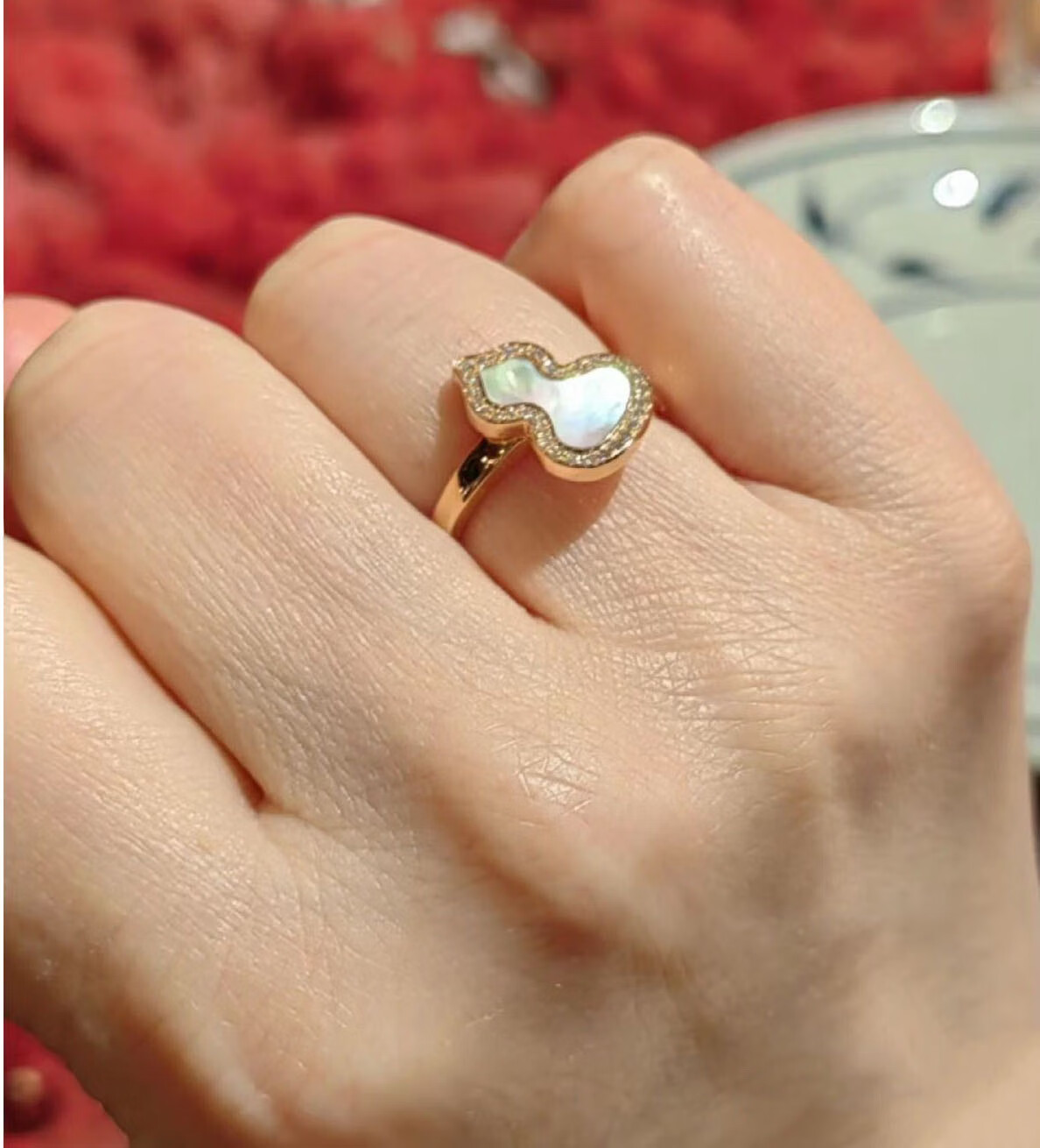 Shilian full diamond ring sterling silver plated 18k rose gold ring light luxury high-end pair ring niche ins style red gourd ring 6 Hong Kong sizes (11-13) circumference (50mm-52m)