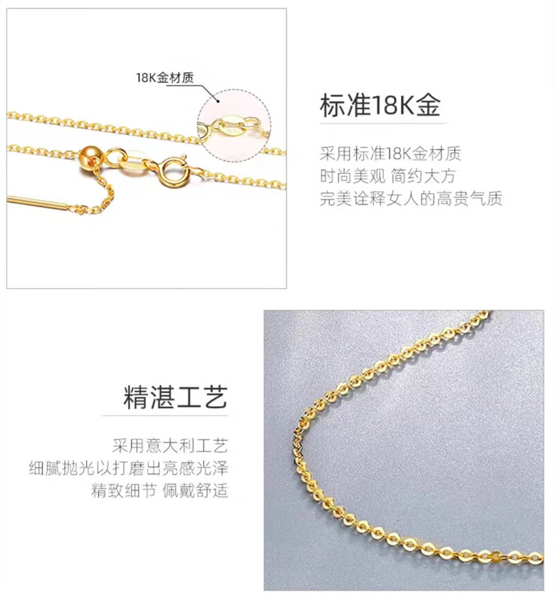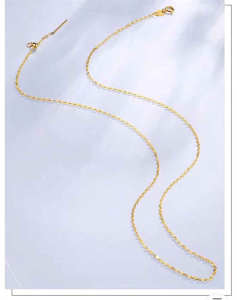 Junbu 18k gold necklace women's pin chain O-shaped chain plain chain colored gold adjustable chain plain gold clavicle chain versatile 45cm gold color O-shaped universal chain S