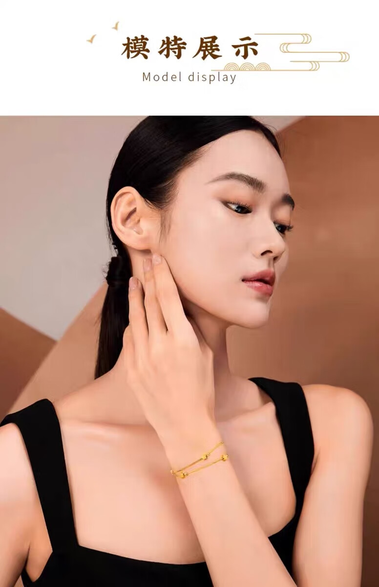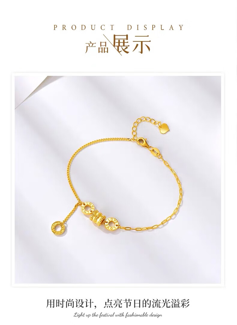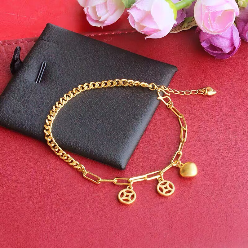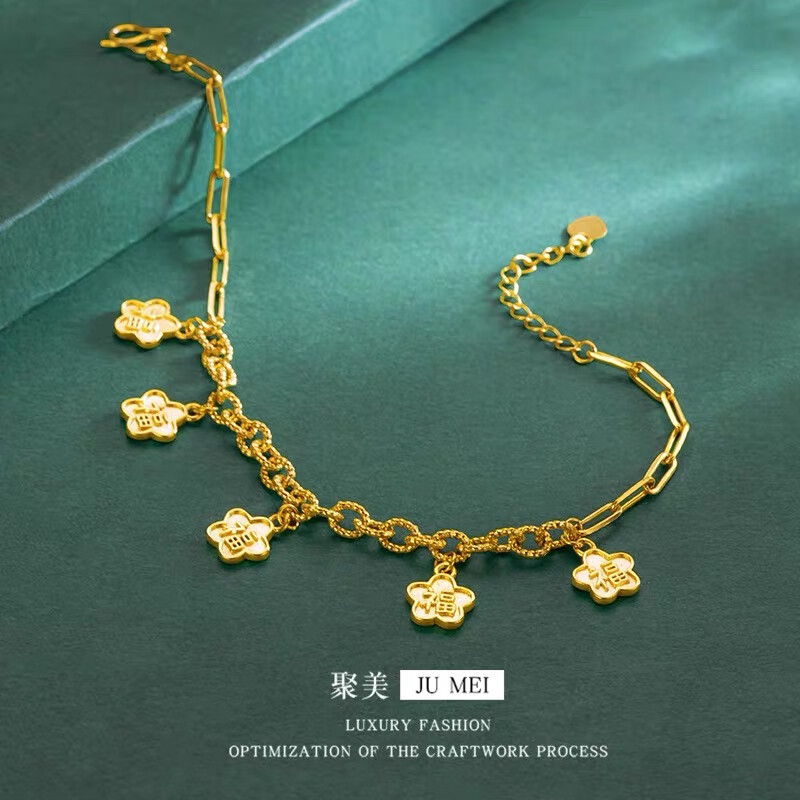 Junbuxiang gold color heart-pounding bracelet for women 2025 imitation 999 pure gold 18k pure gold double layer pounding heart bracelet 20cm