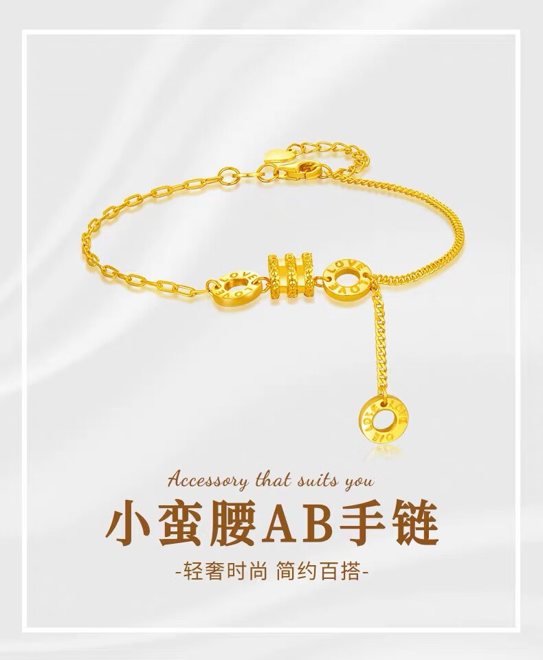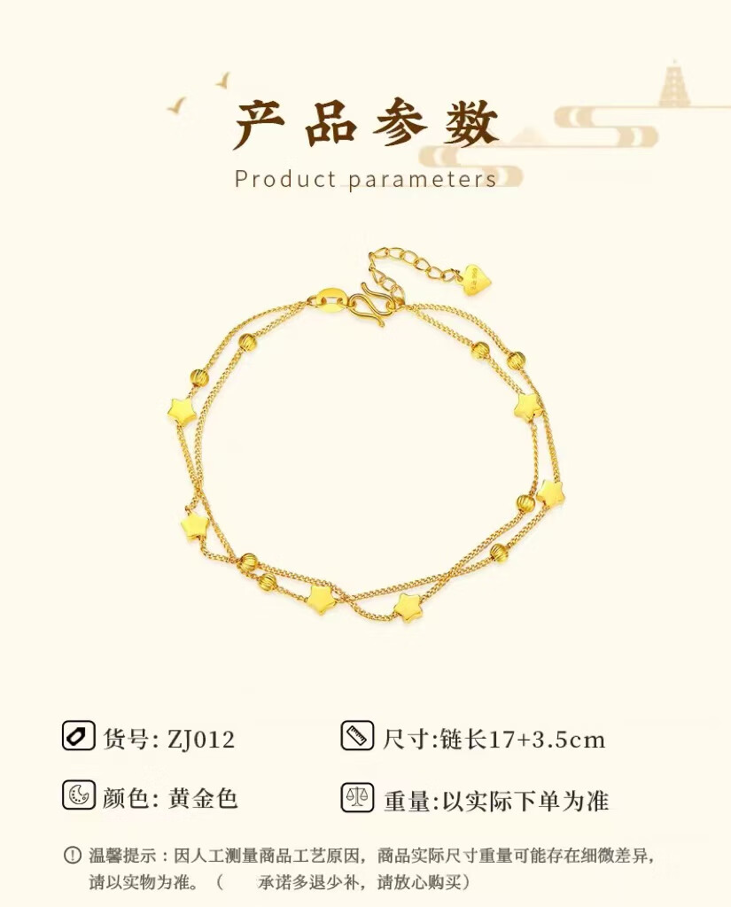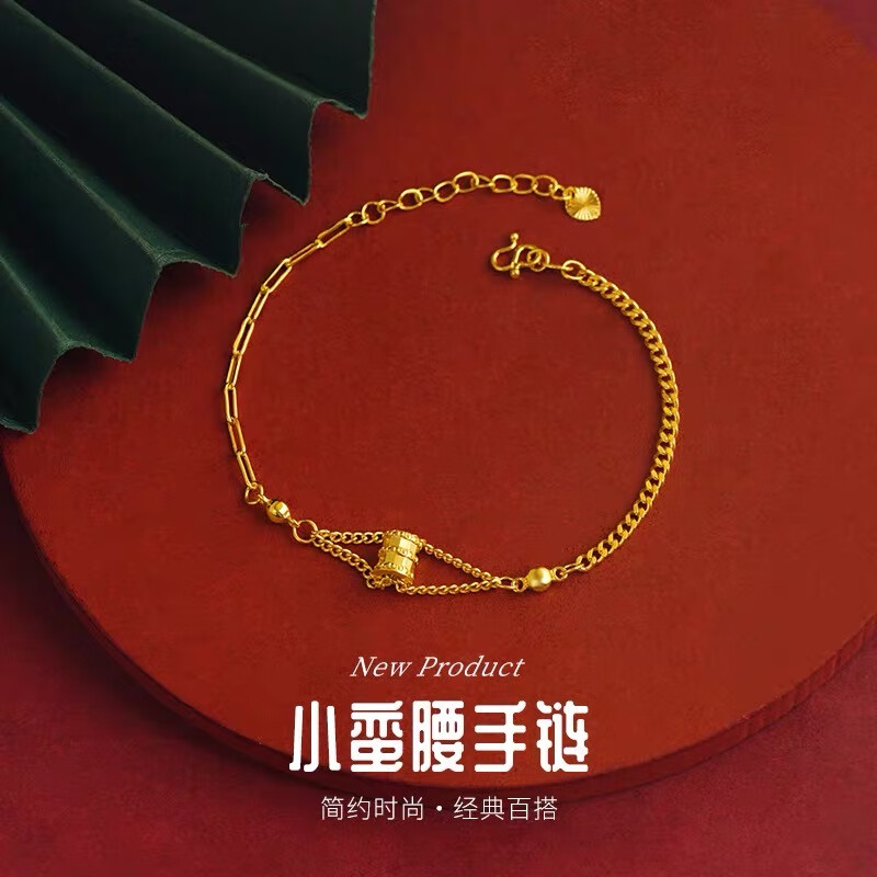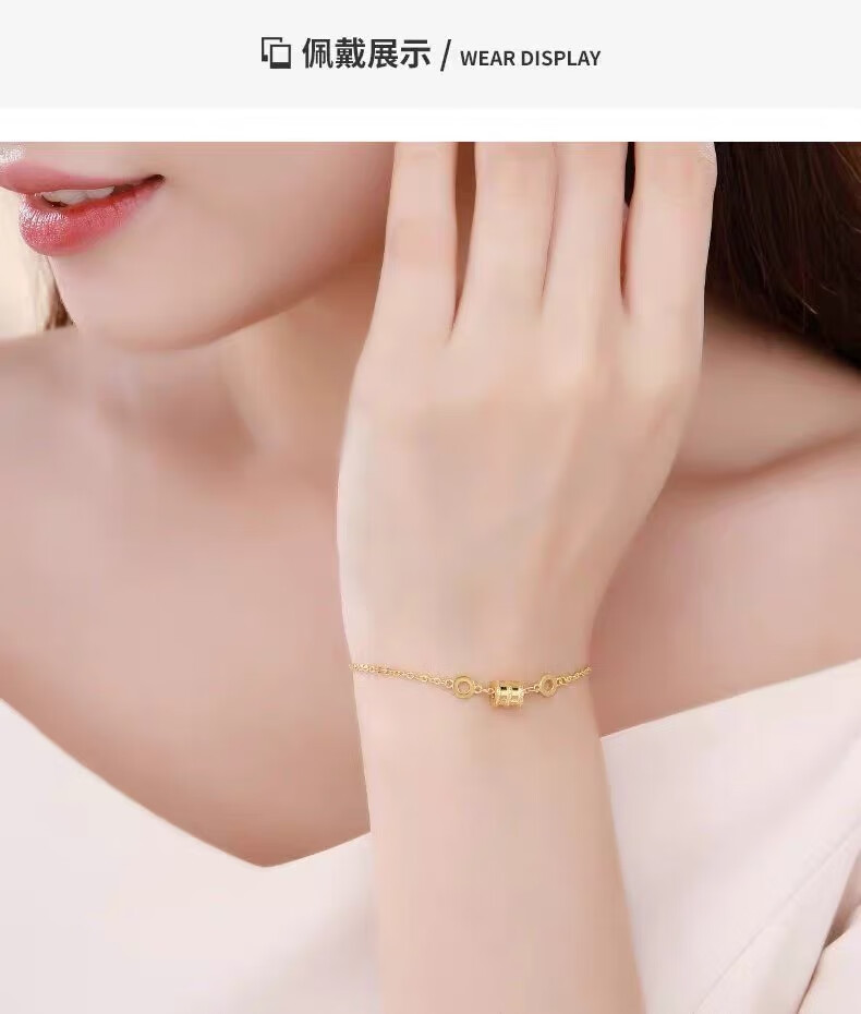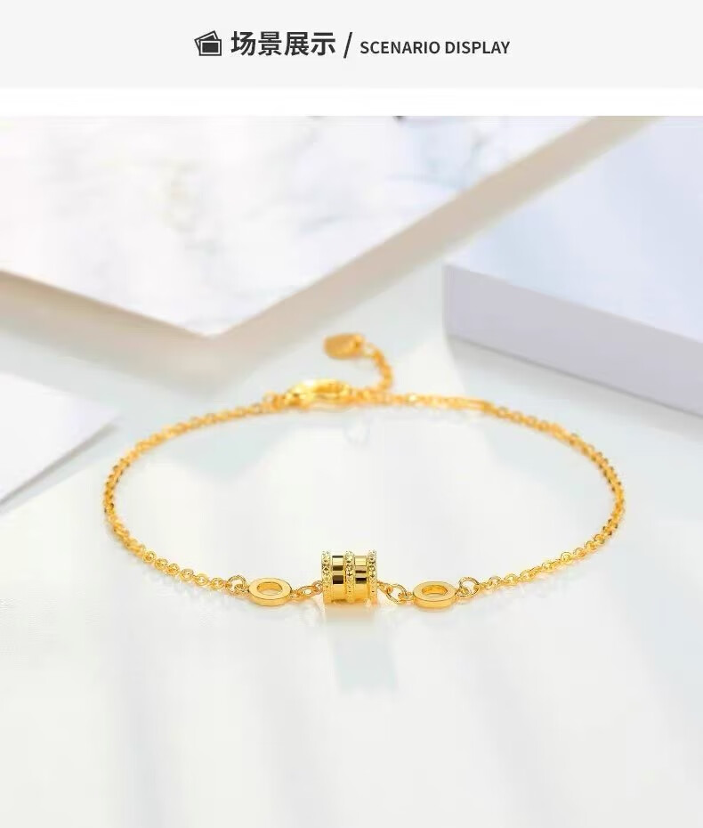 Junbuxiang gold color heart-pounding bracelet for women 2025 imitation 999 pure gold 18k pure gold double layer pounding heart bracelet 20cm