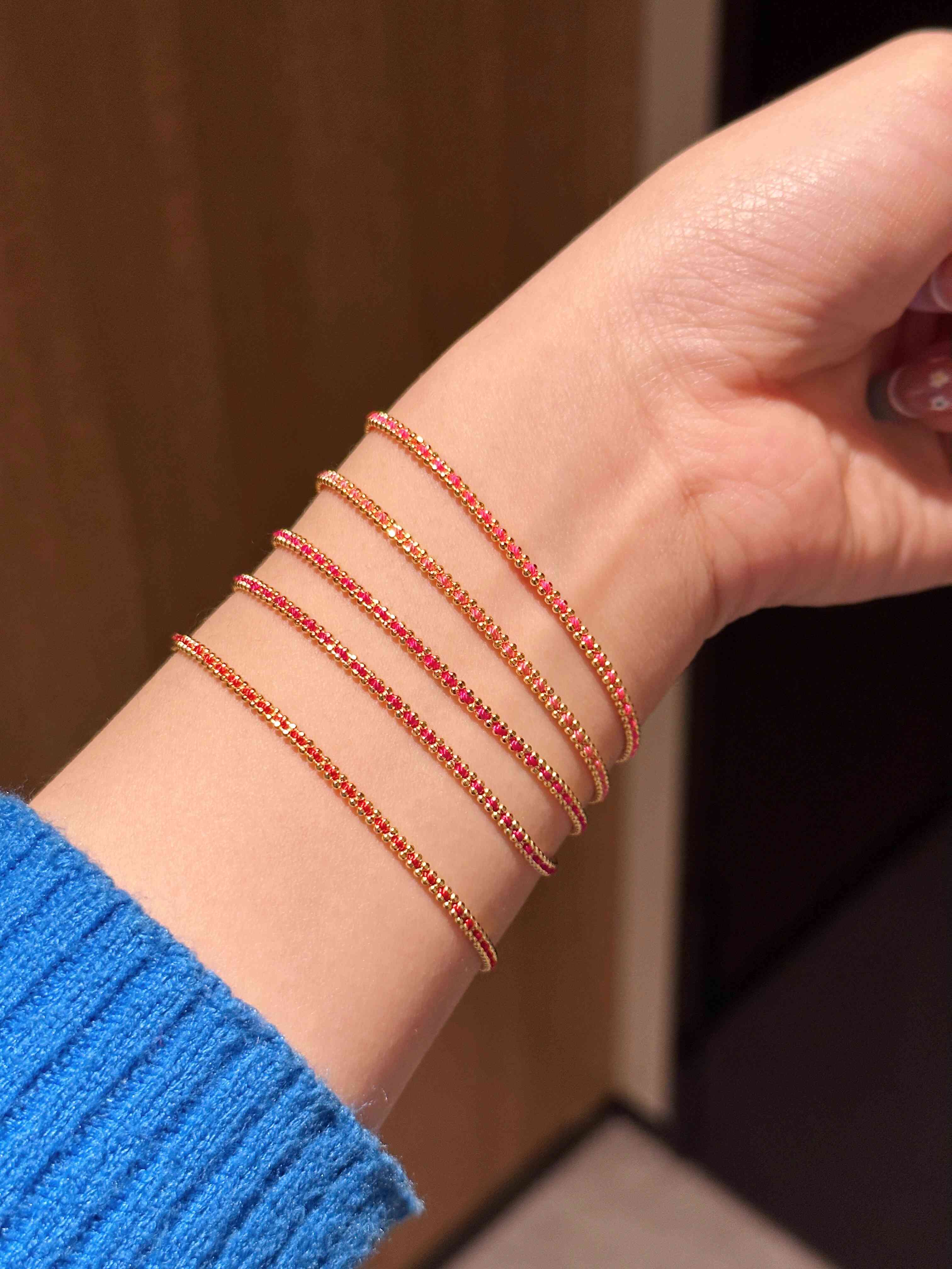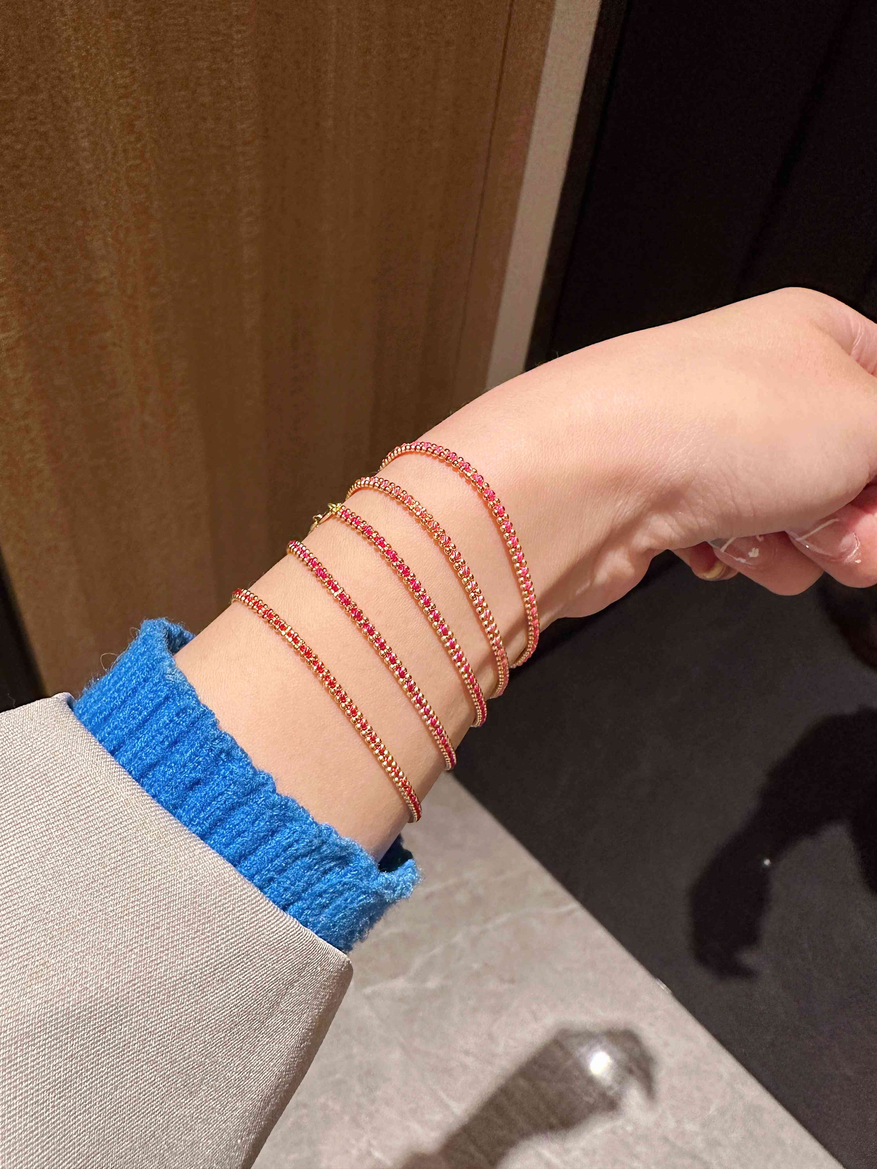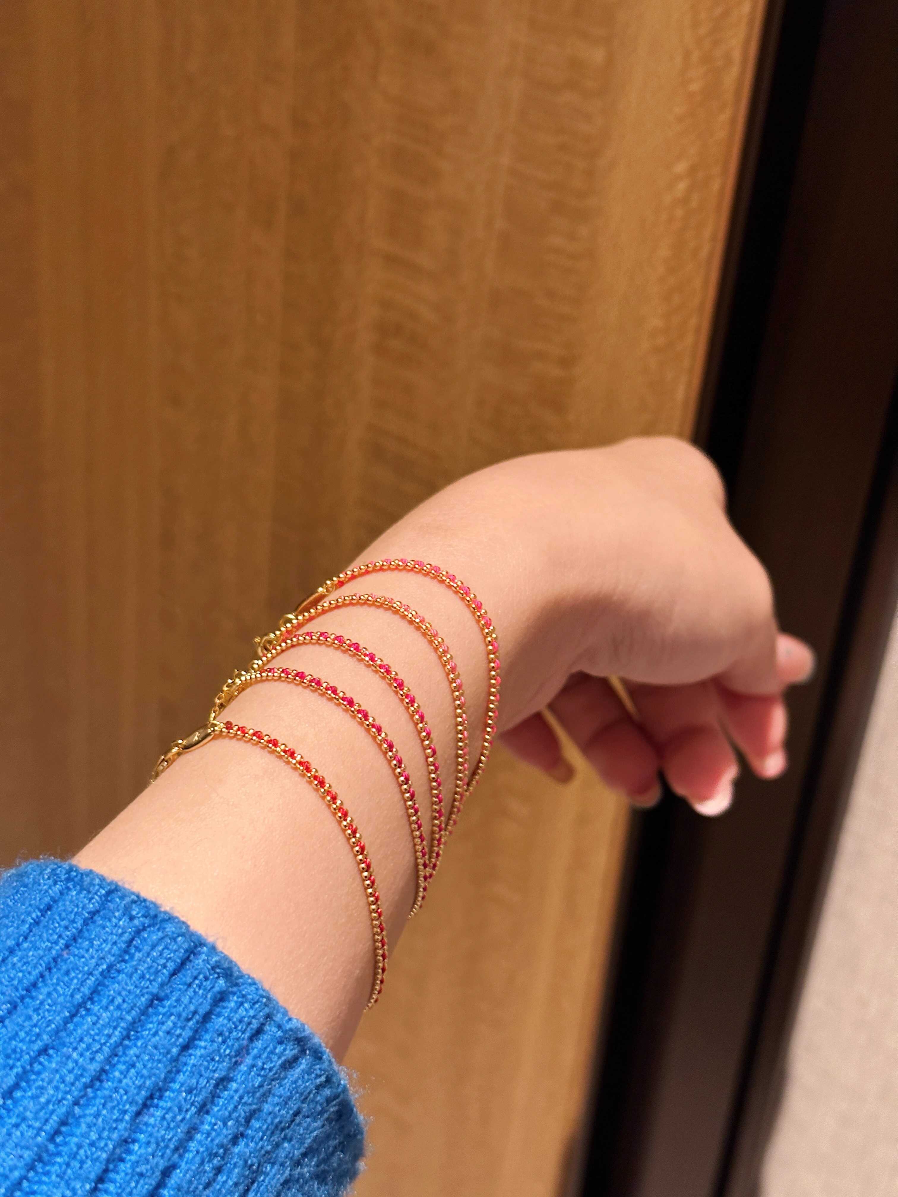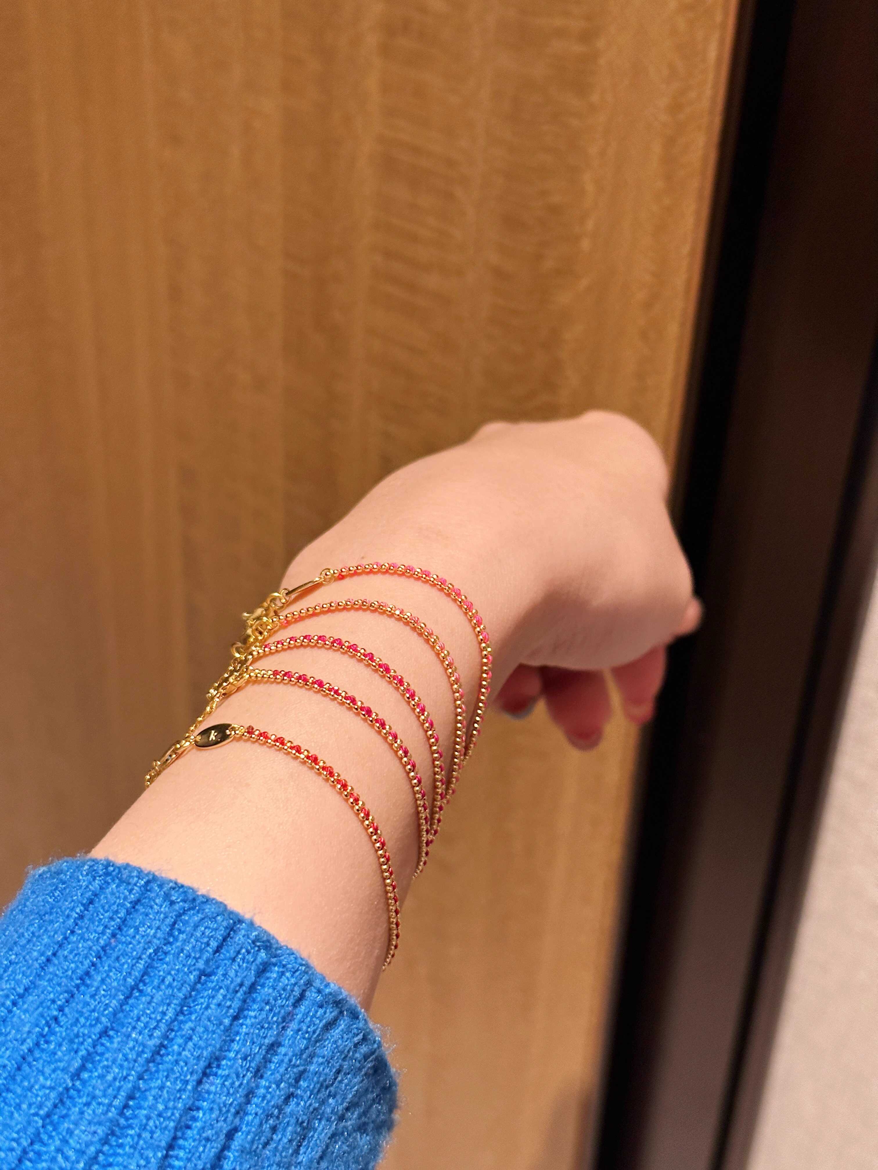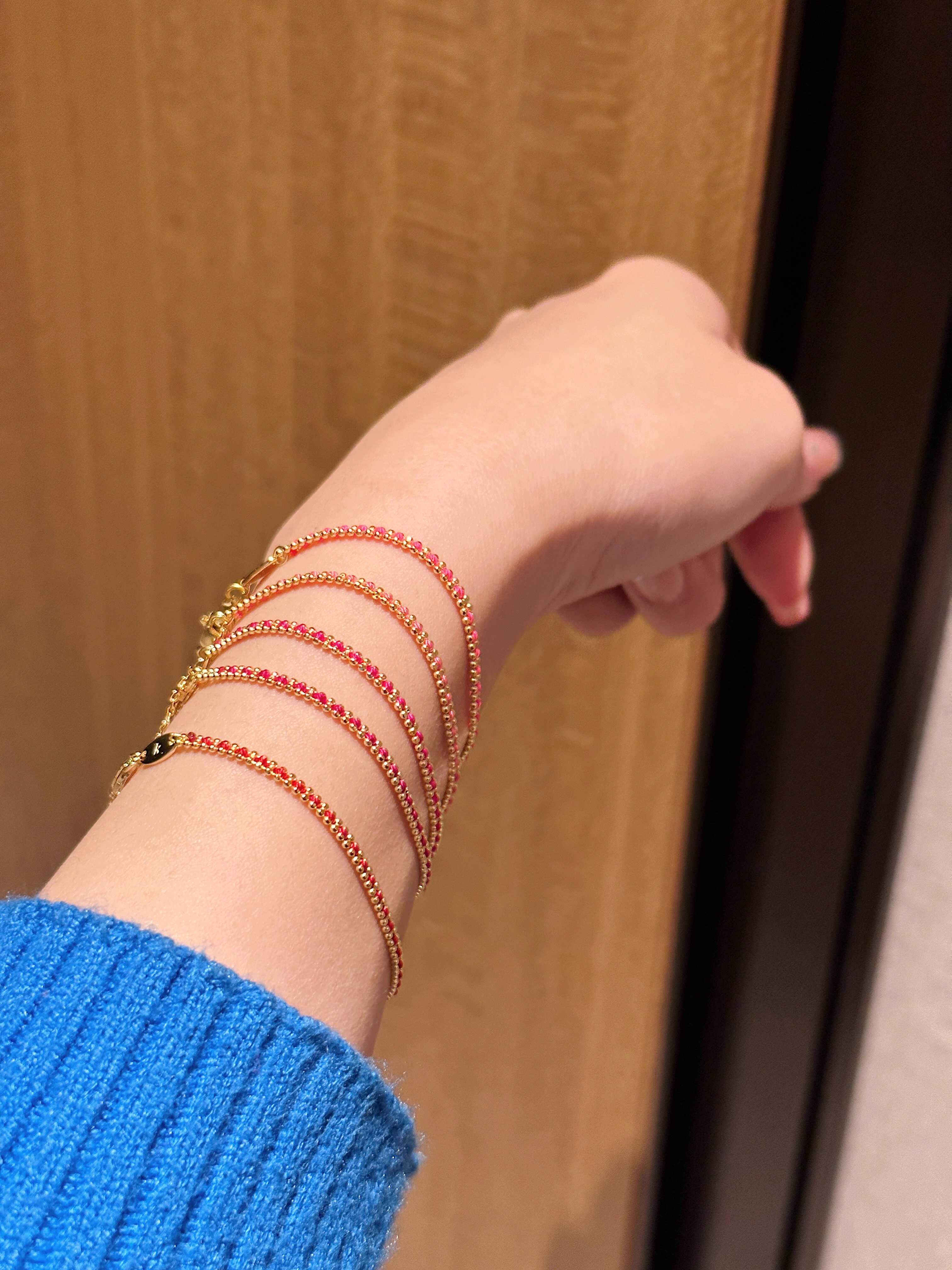Junbu France Light Luxury Little Red Rope Braided 18K Gold Bracelet Lucky Bracelet Adjustable Women's Safe and Happy Bracelet 1_Fluorescent Pink
