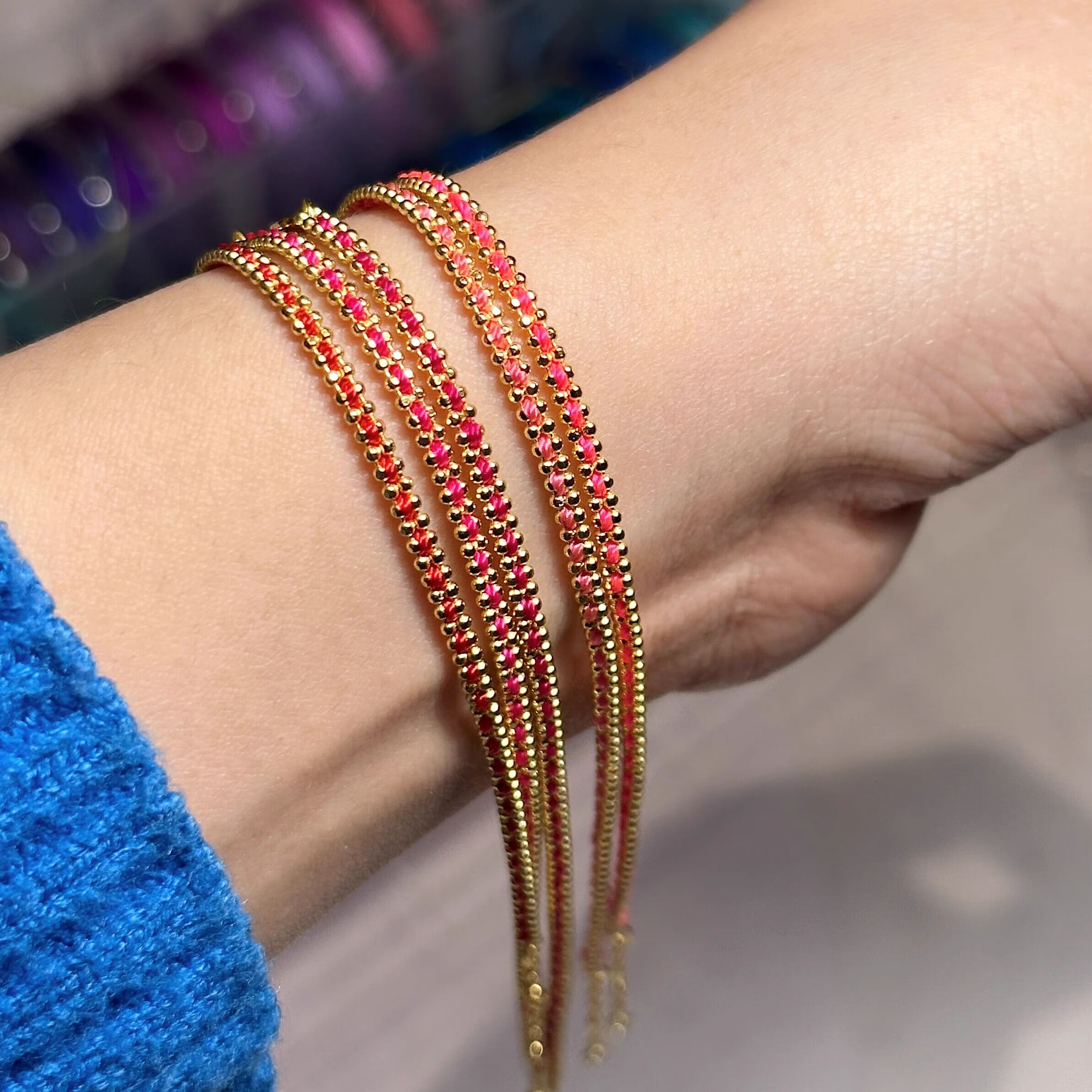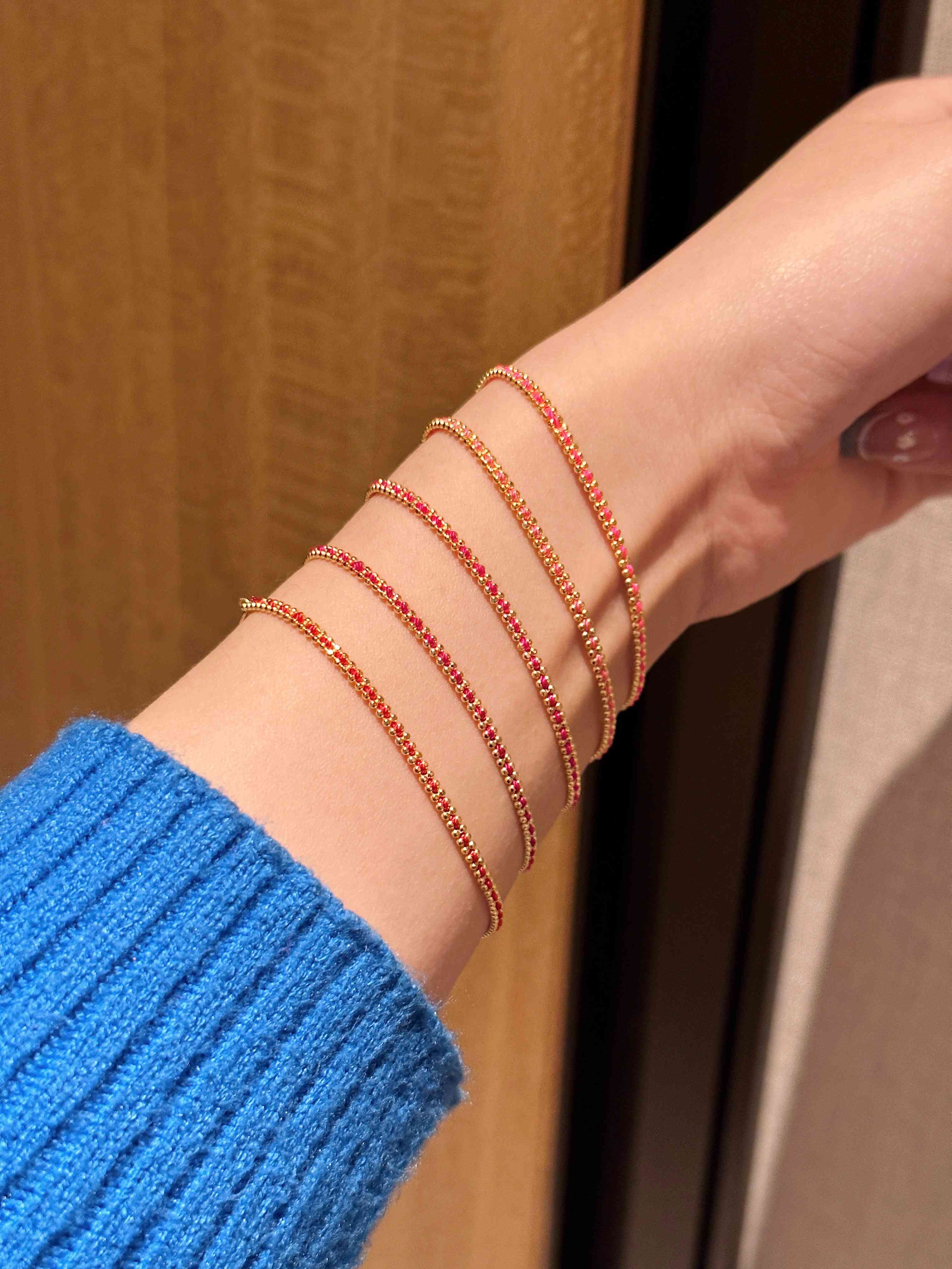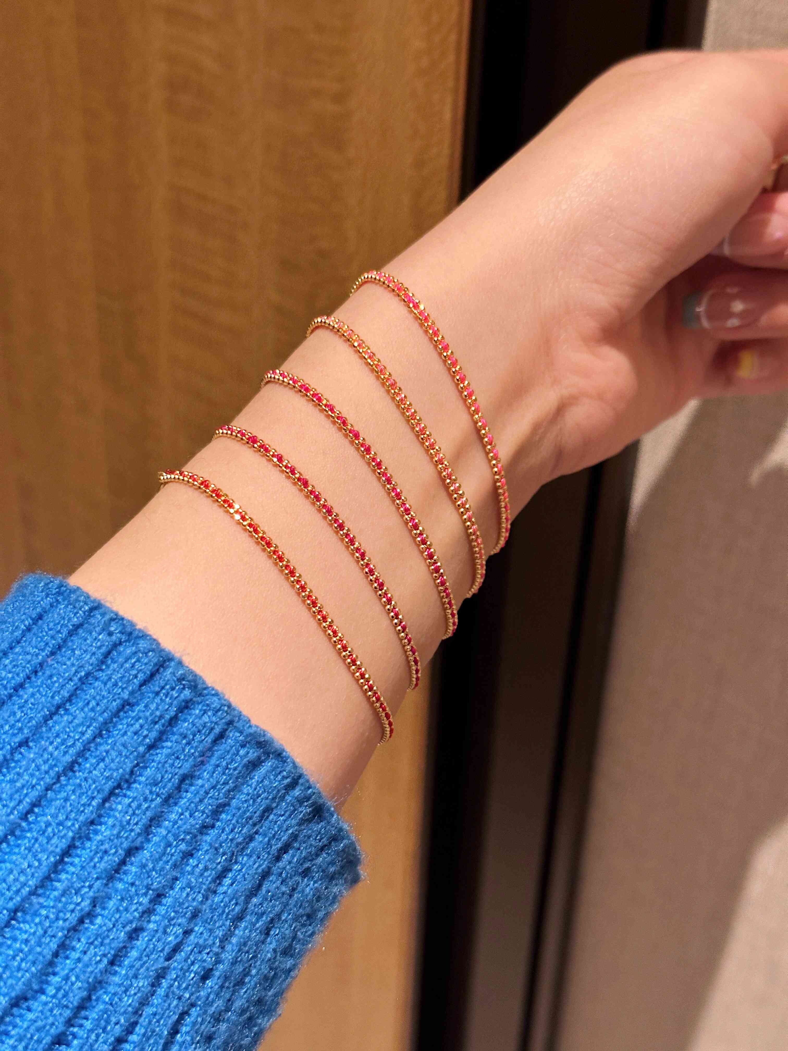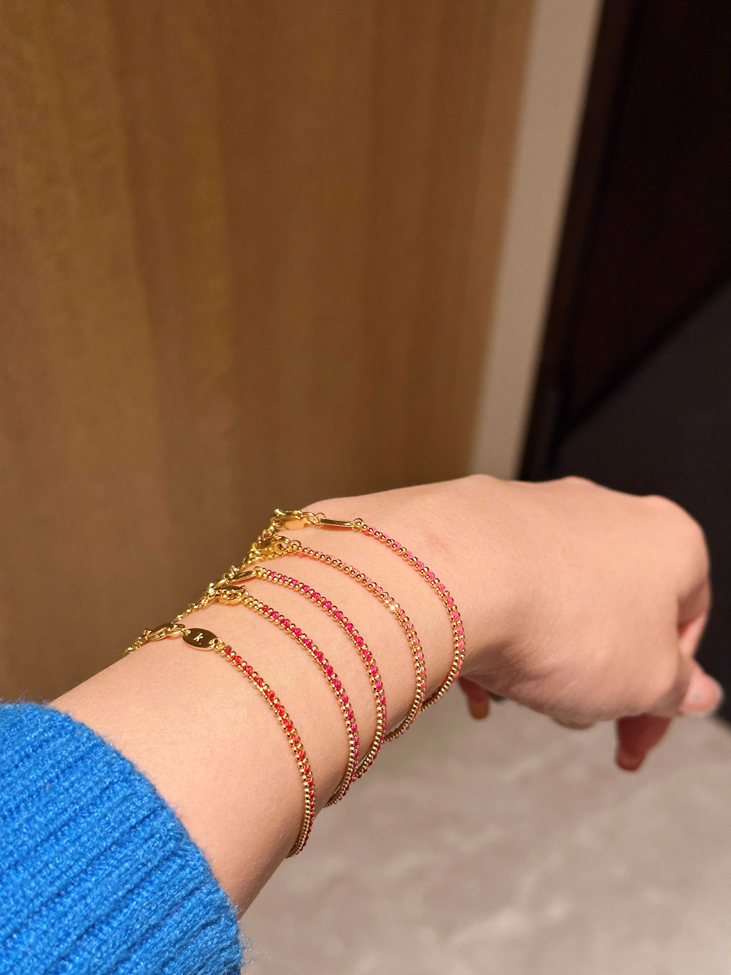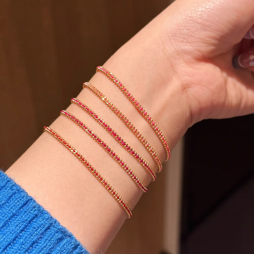 Junbu France Light Luxury Little Red Rope Braided 18K Gold Bracelet Lucky Bracelet Adjustable Women's Safe and Happy Bracelet 1_Fluorescent Pink