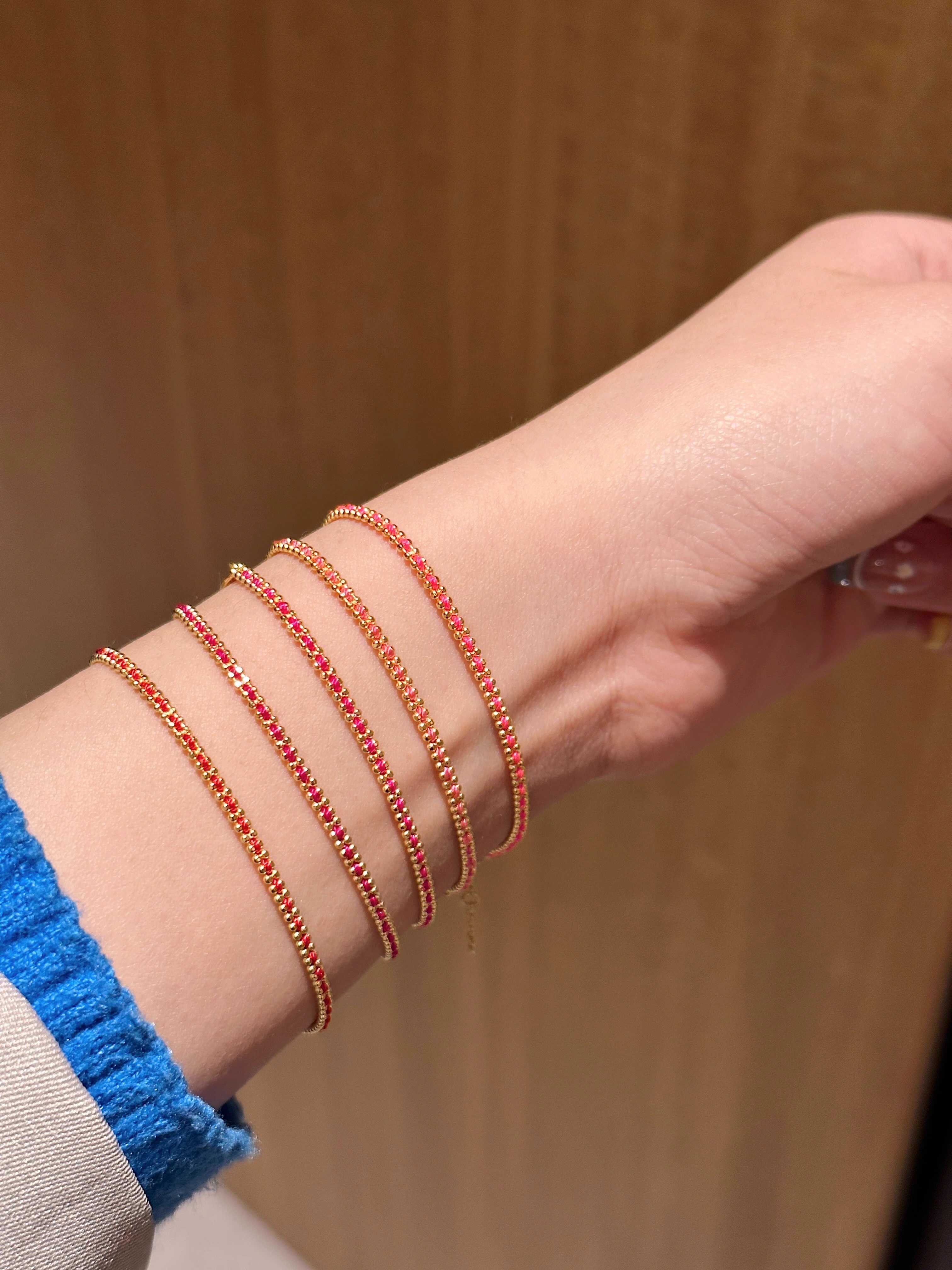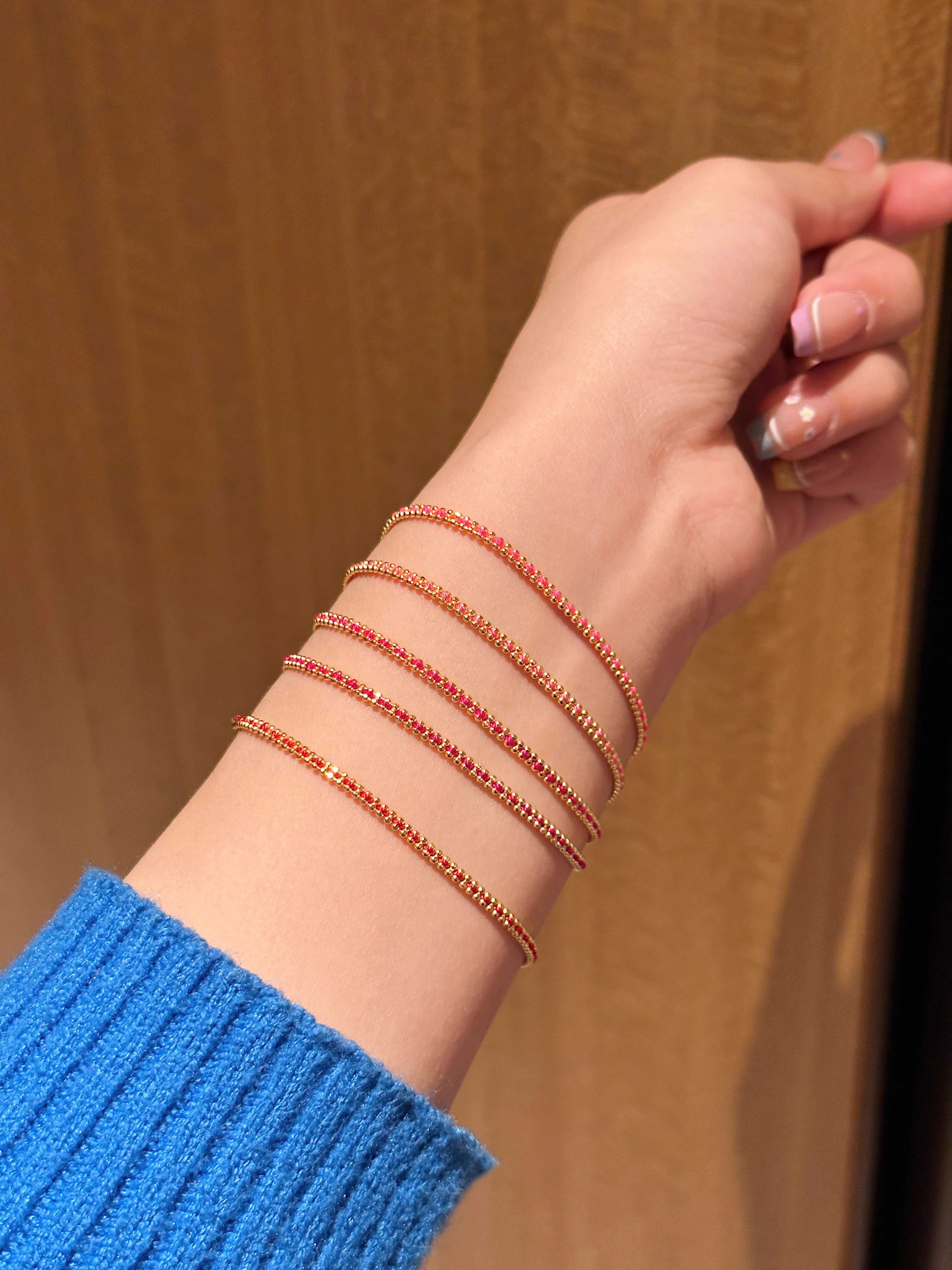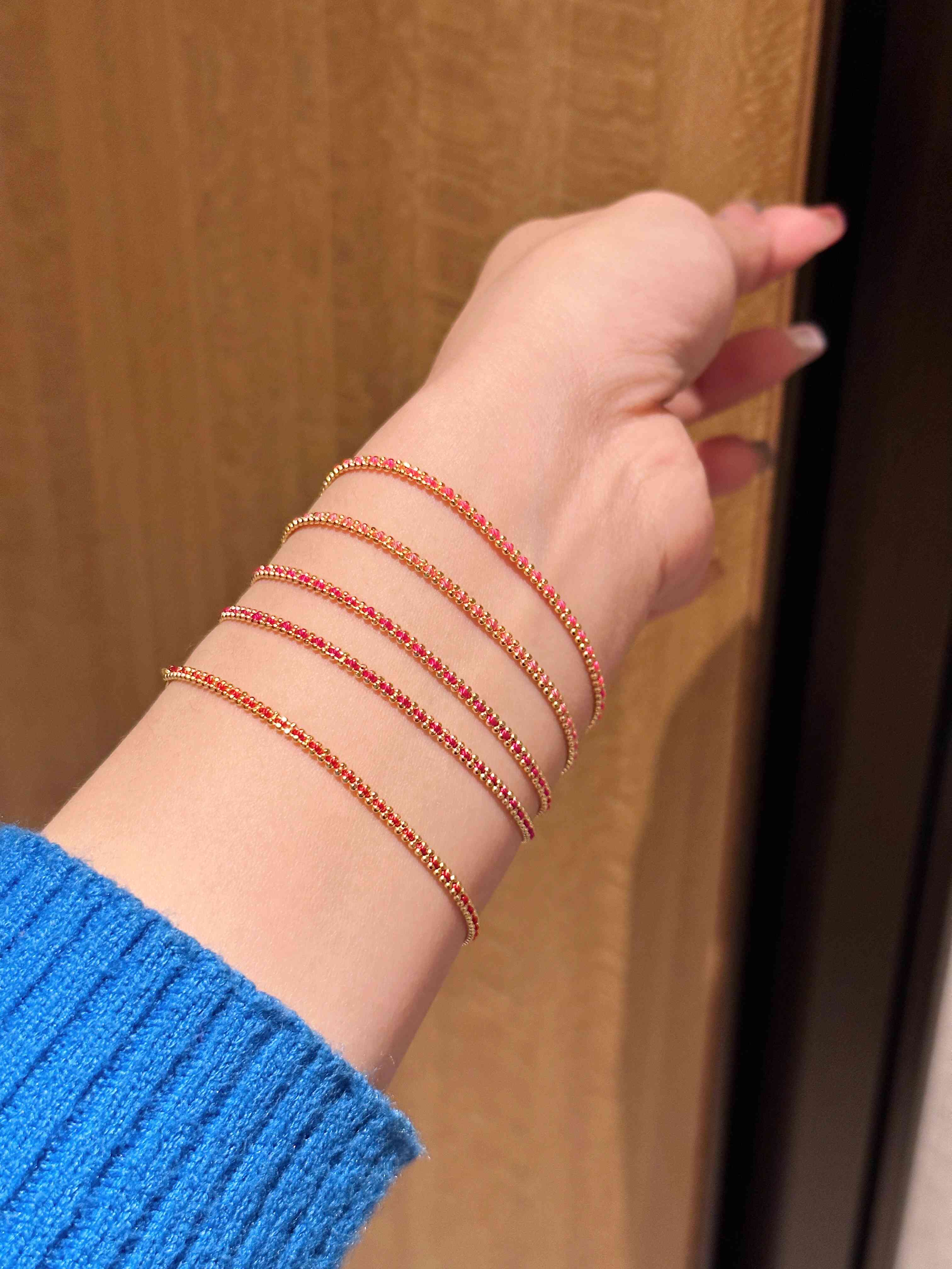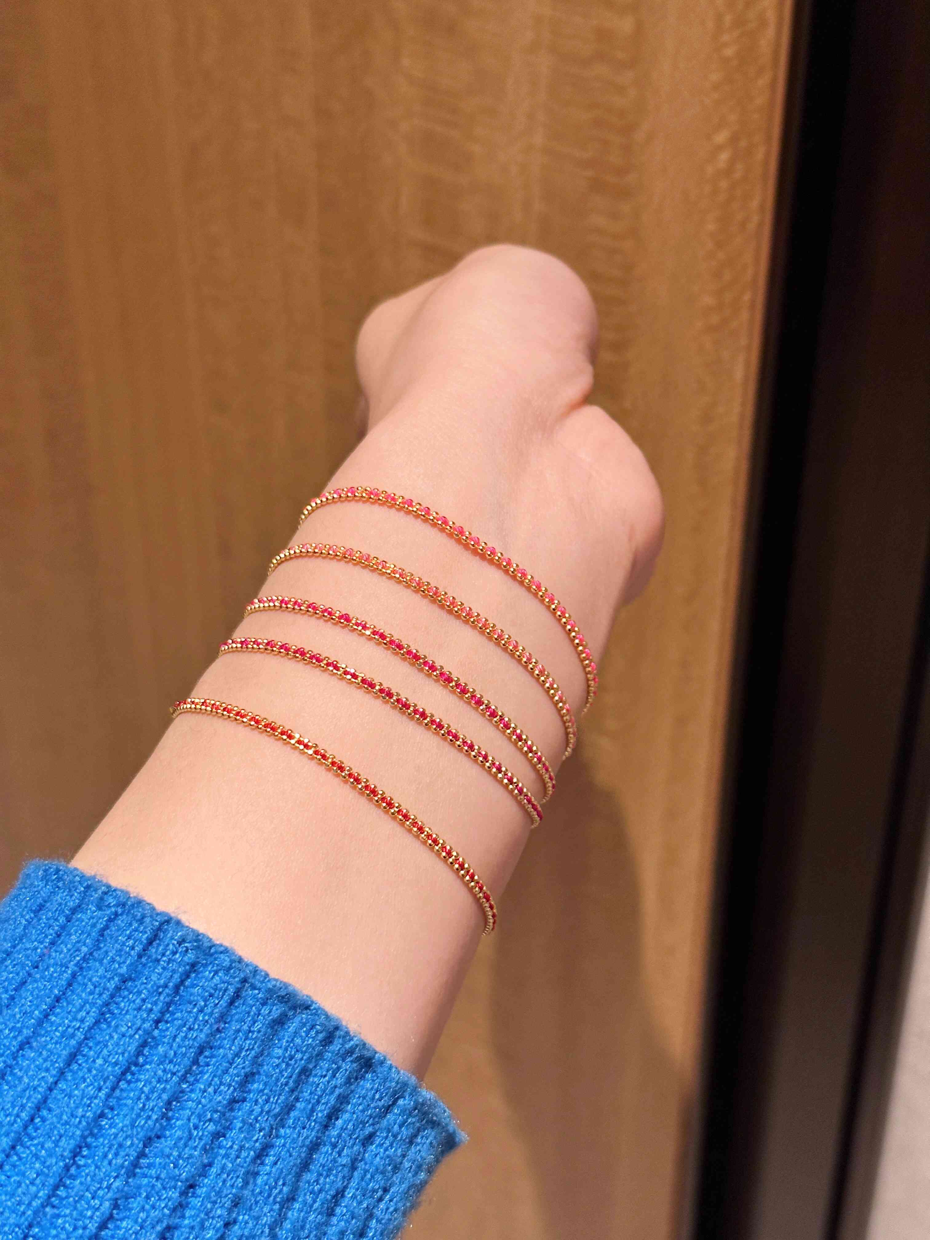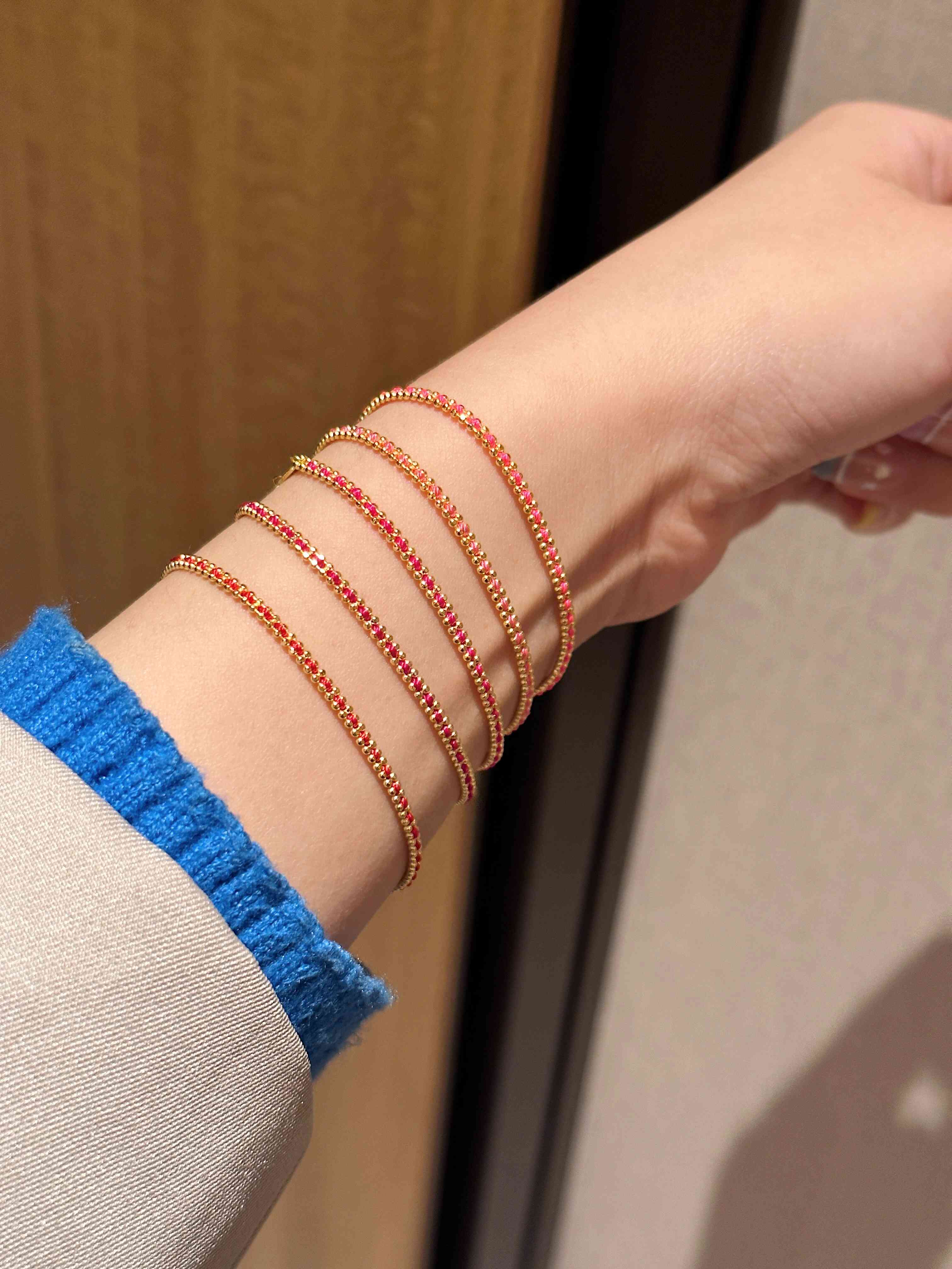 Junbu France Light Luxury Little Red Rope Braided 18K Gold Bracelet Lucky Bracelet Adjustable Women's Safe and Happy Bracelet 1_Fluorescent Pink