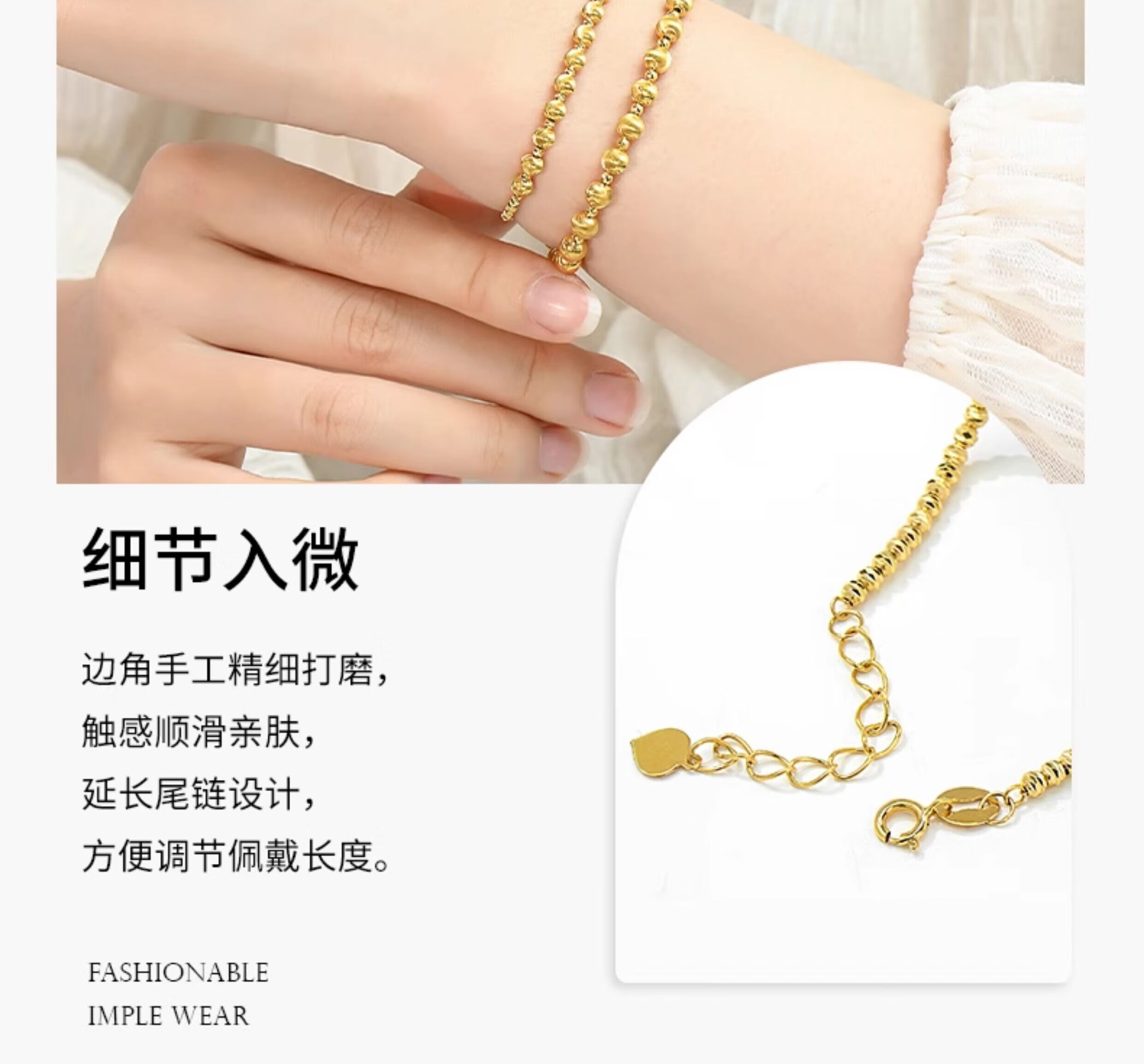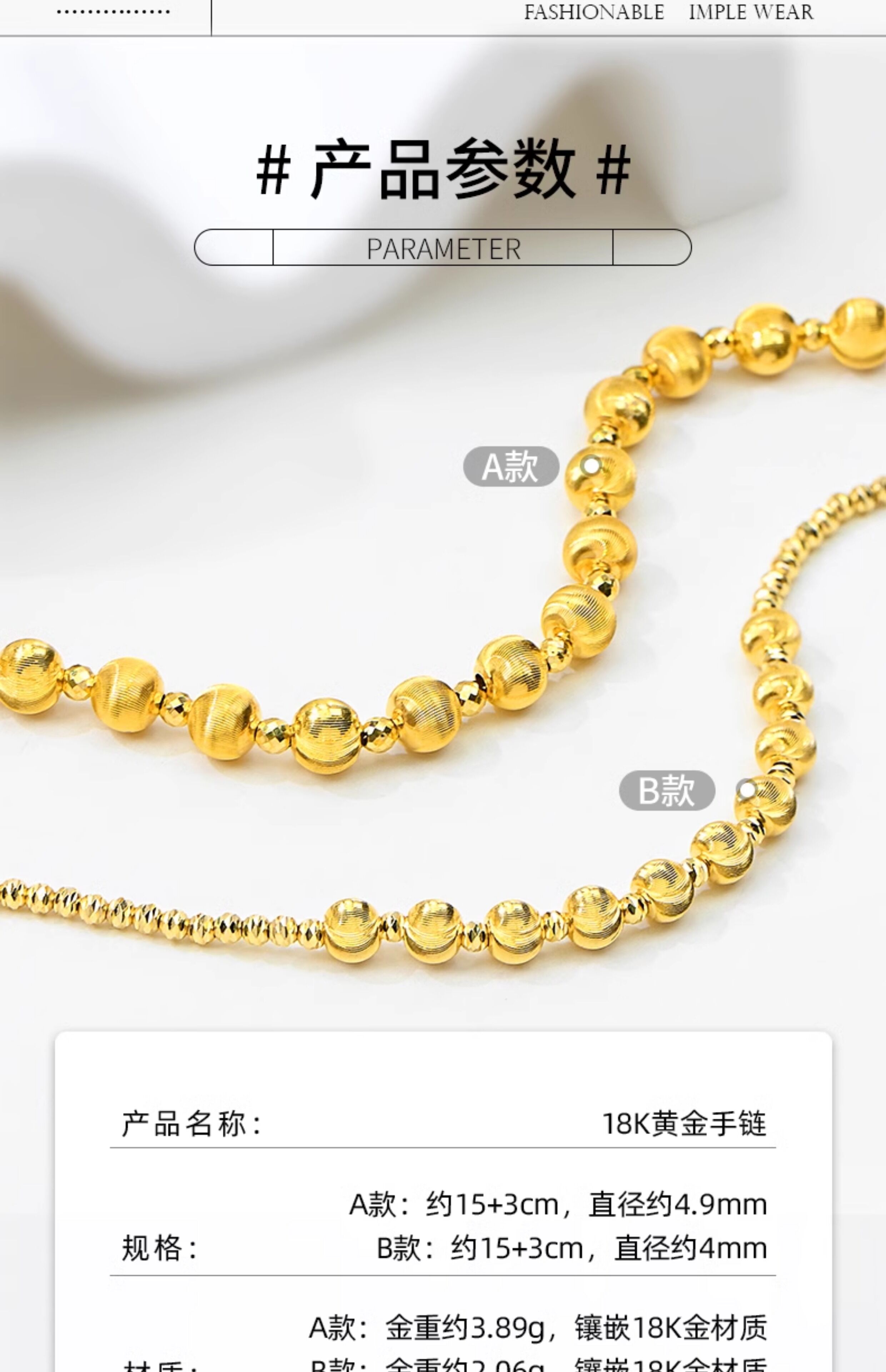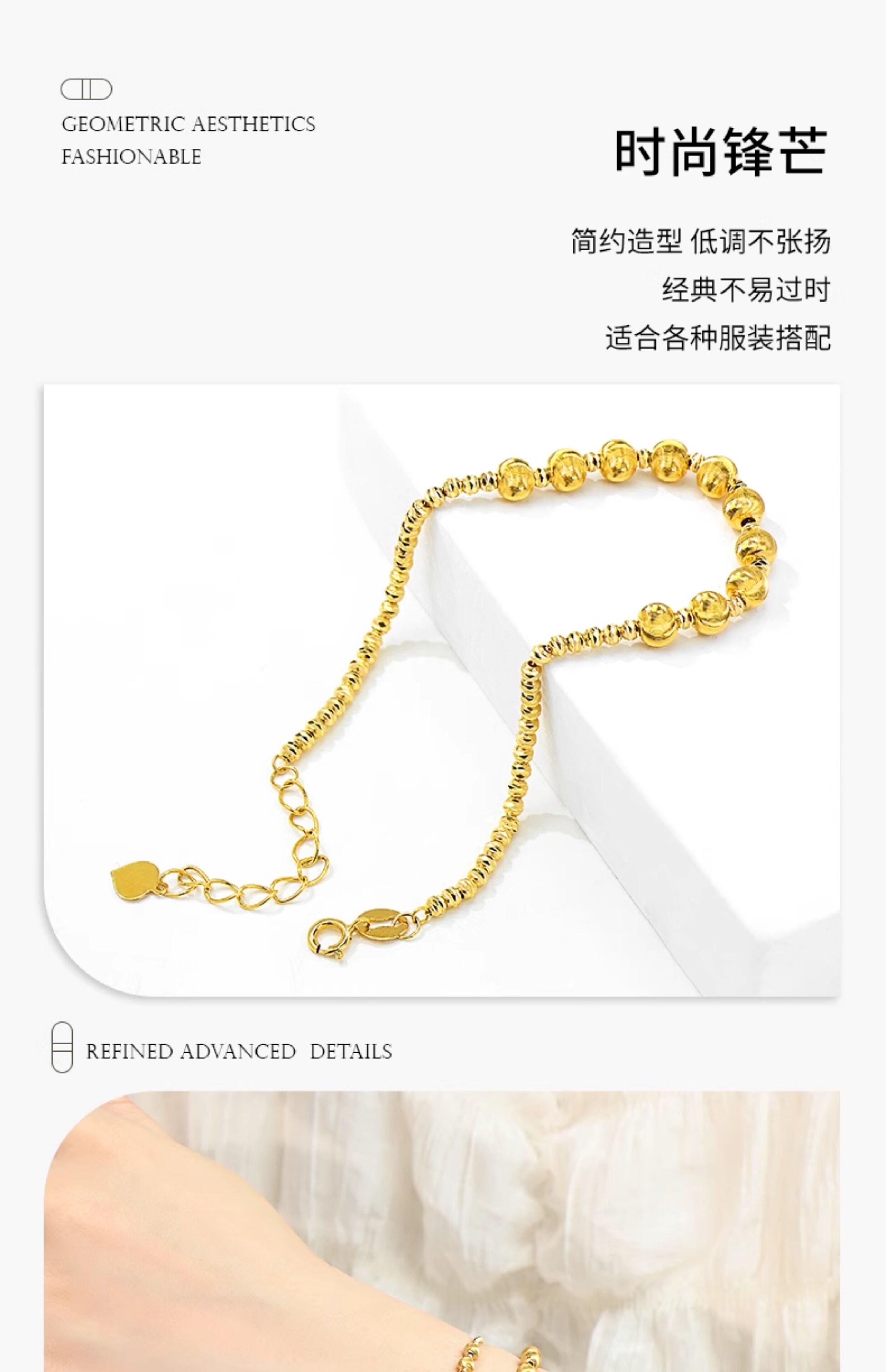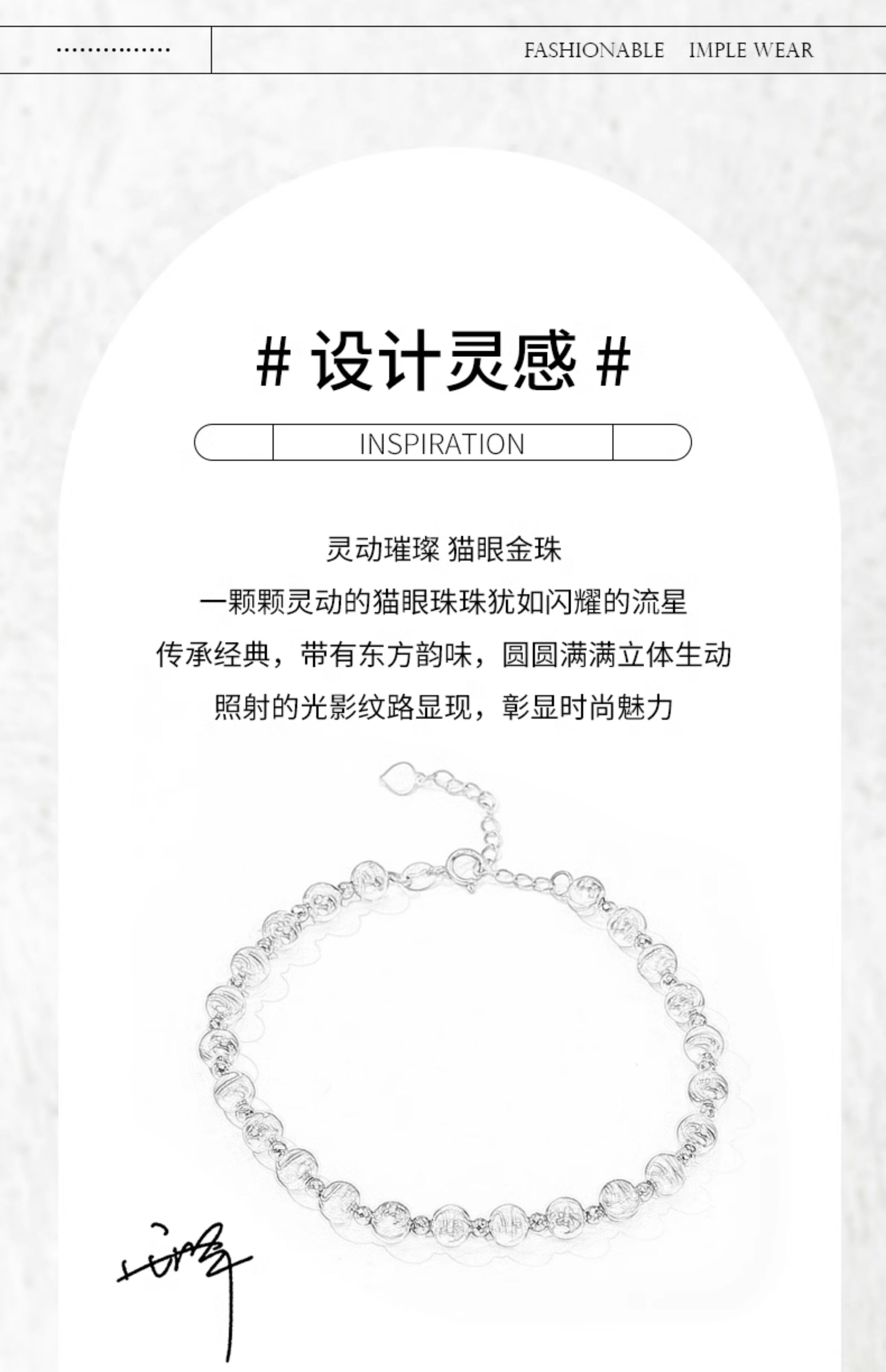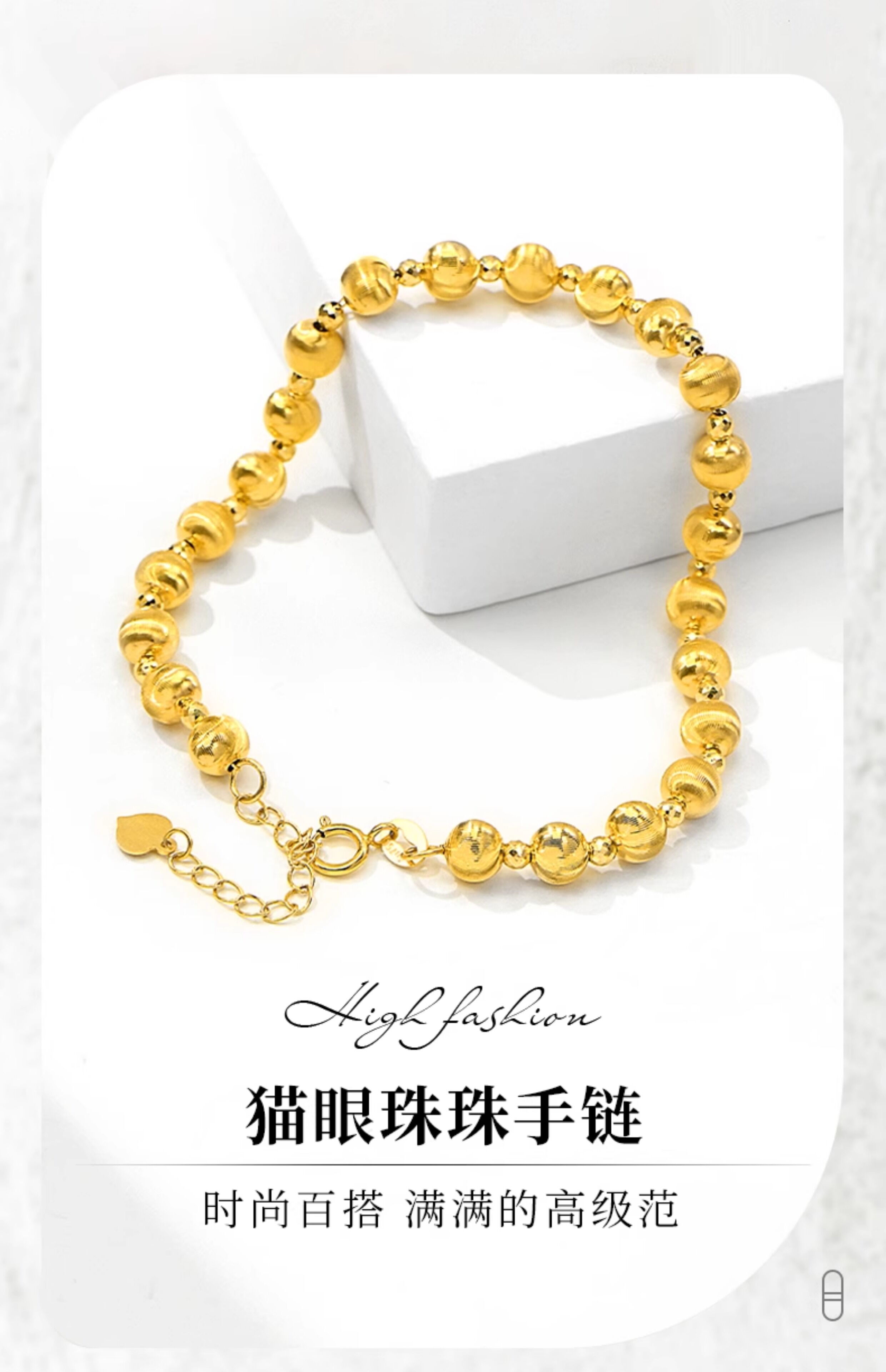 Jun Bu Xing Xing Cai Bao 18K gold laser cat’s eye plain gold bracelet personalized versatile hand ornaments A (15+3CM)