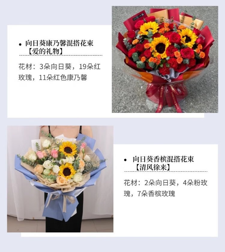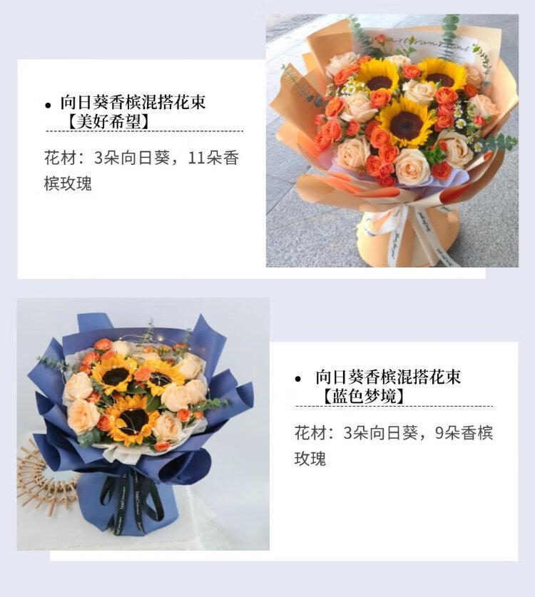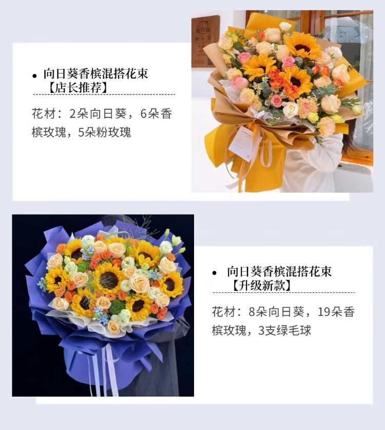 Eswina Flower Express Sunflower and Rose Mixed and Matched Bouquets Birthday Gifts Delivered Nationwide in the City Sunflower and Champagne Mixed and Matched Bouquets Recommended by the Store Manager