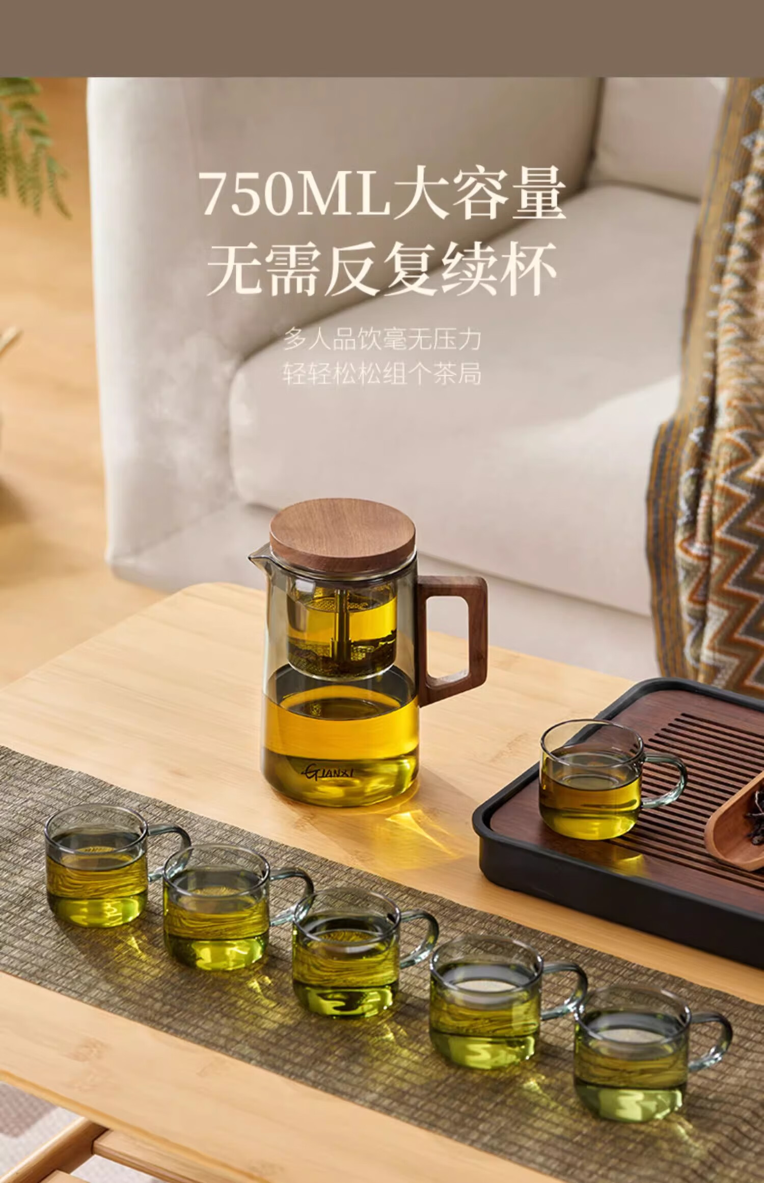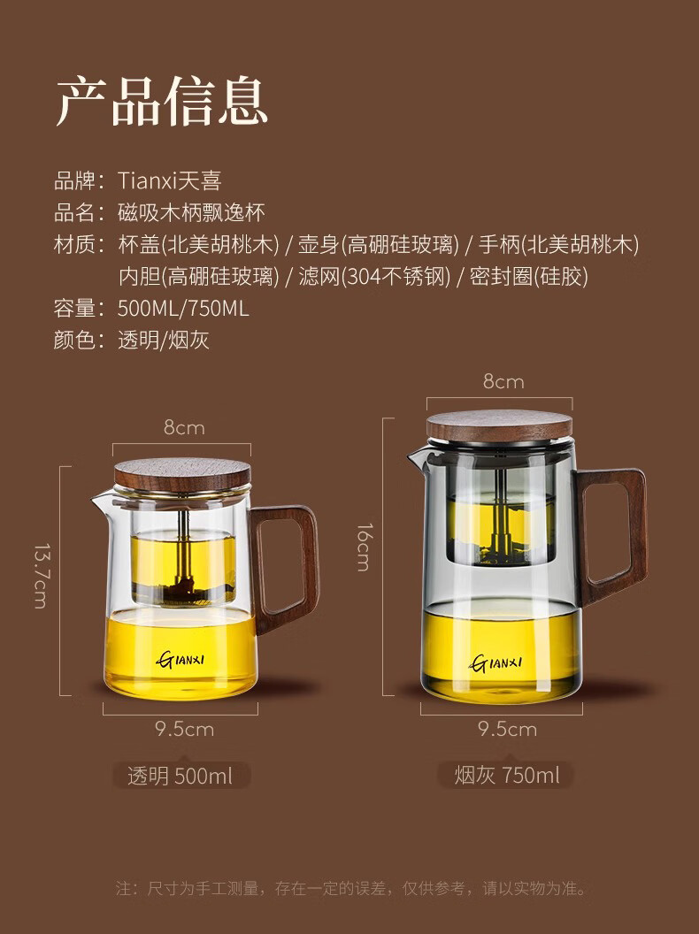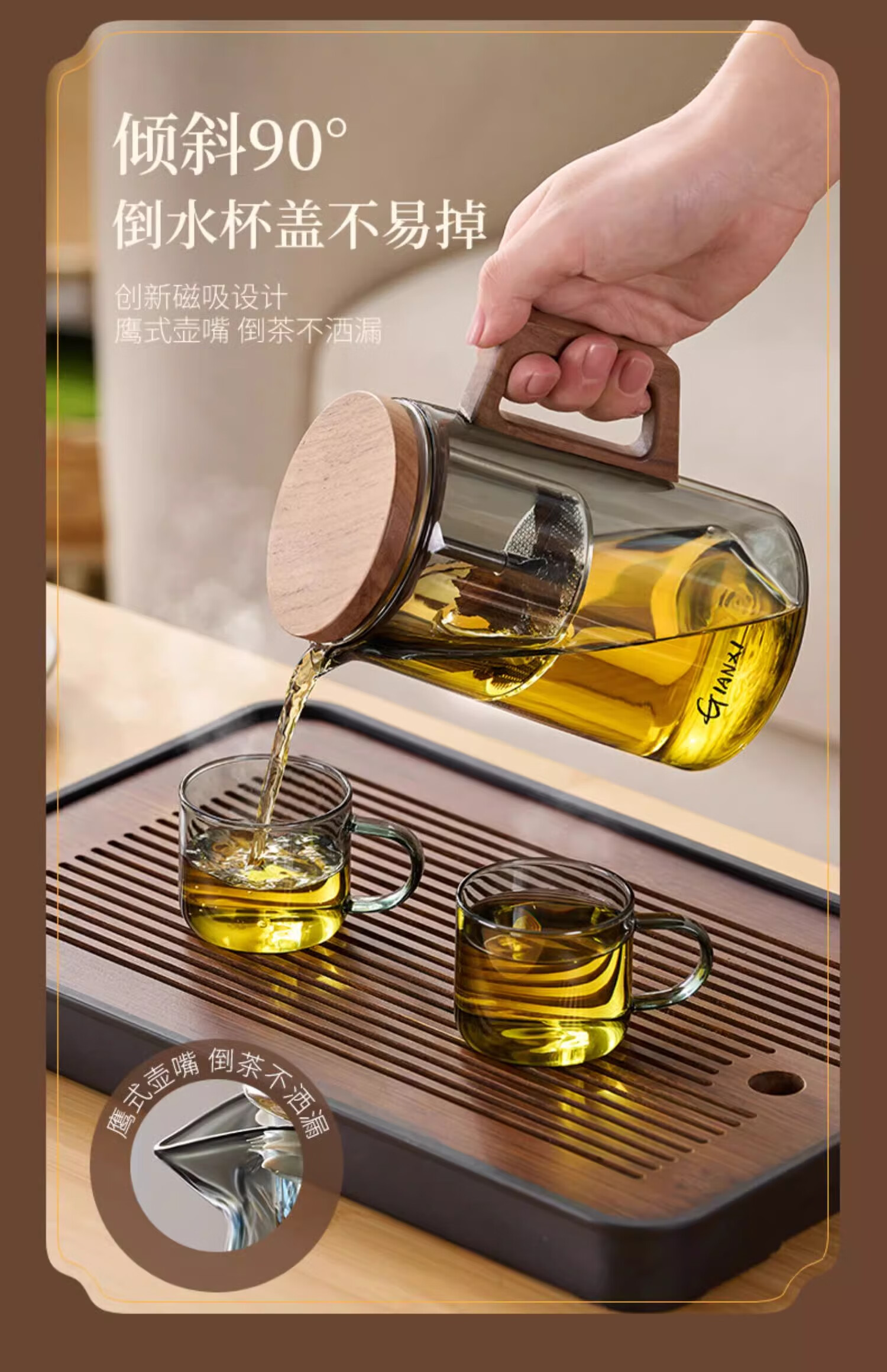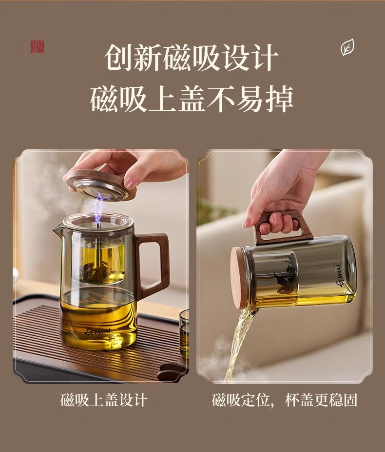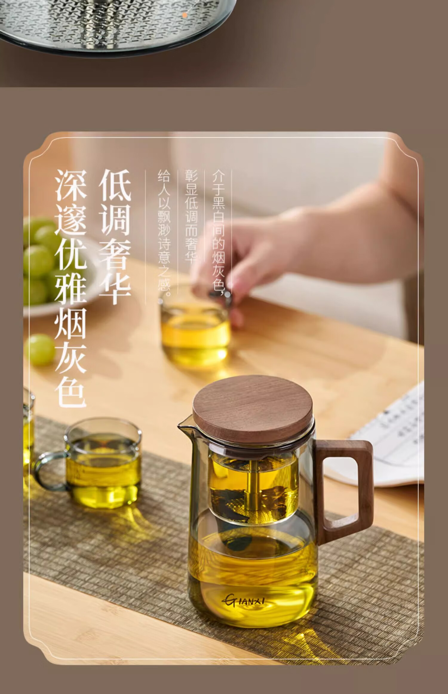 Tianxi Magnetic Elegant Cup Teapot Tea Separator Cup High Temperature Resistant Tea Set Full Glass Liner One-touch Filter Tea Maker Magnetic Suction Style Ash 500ml