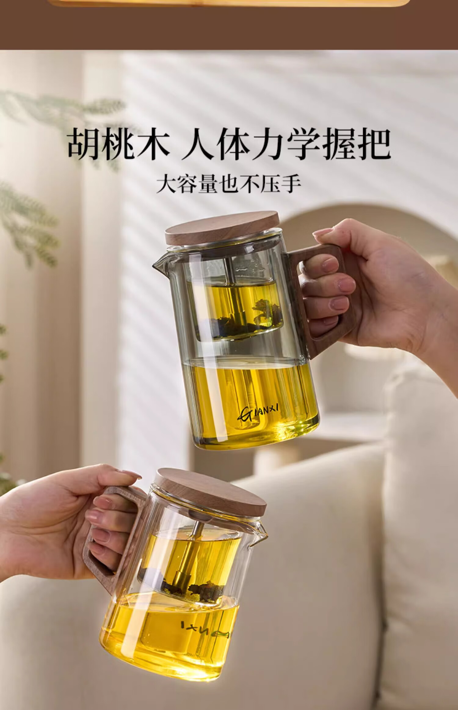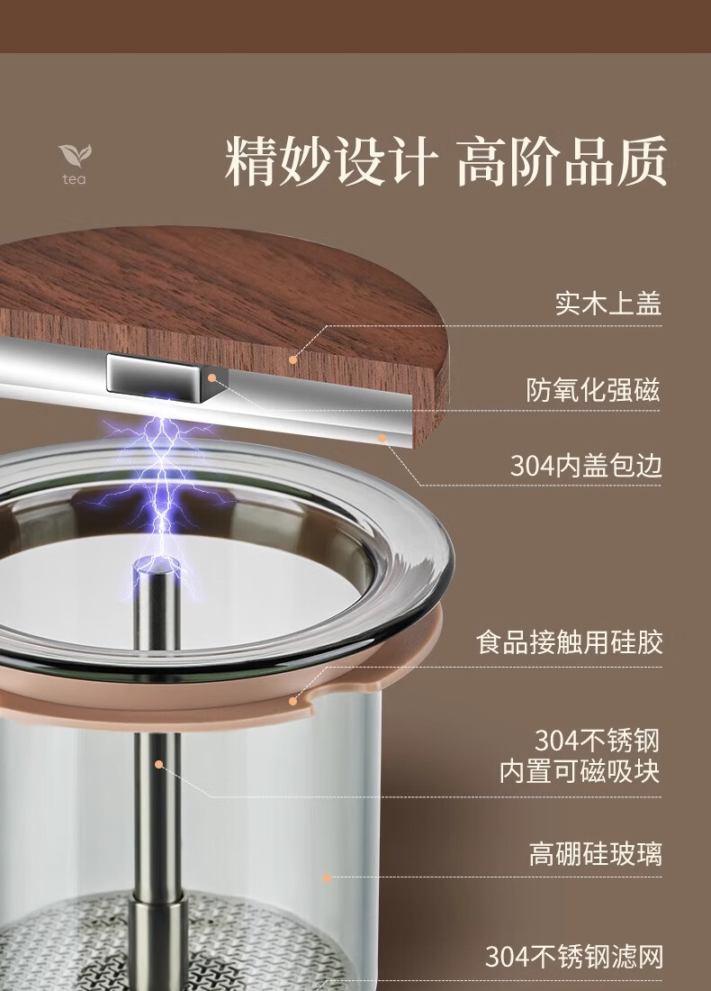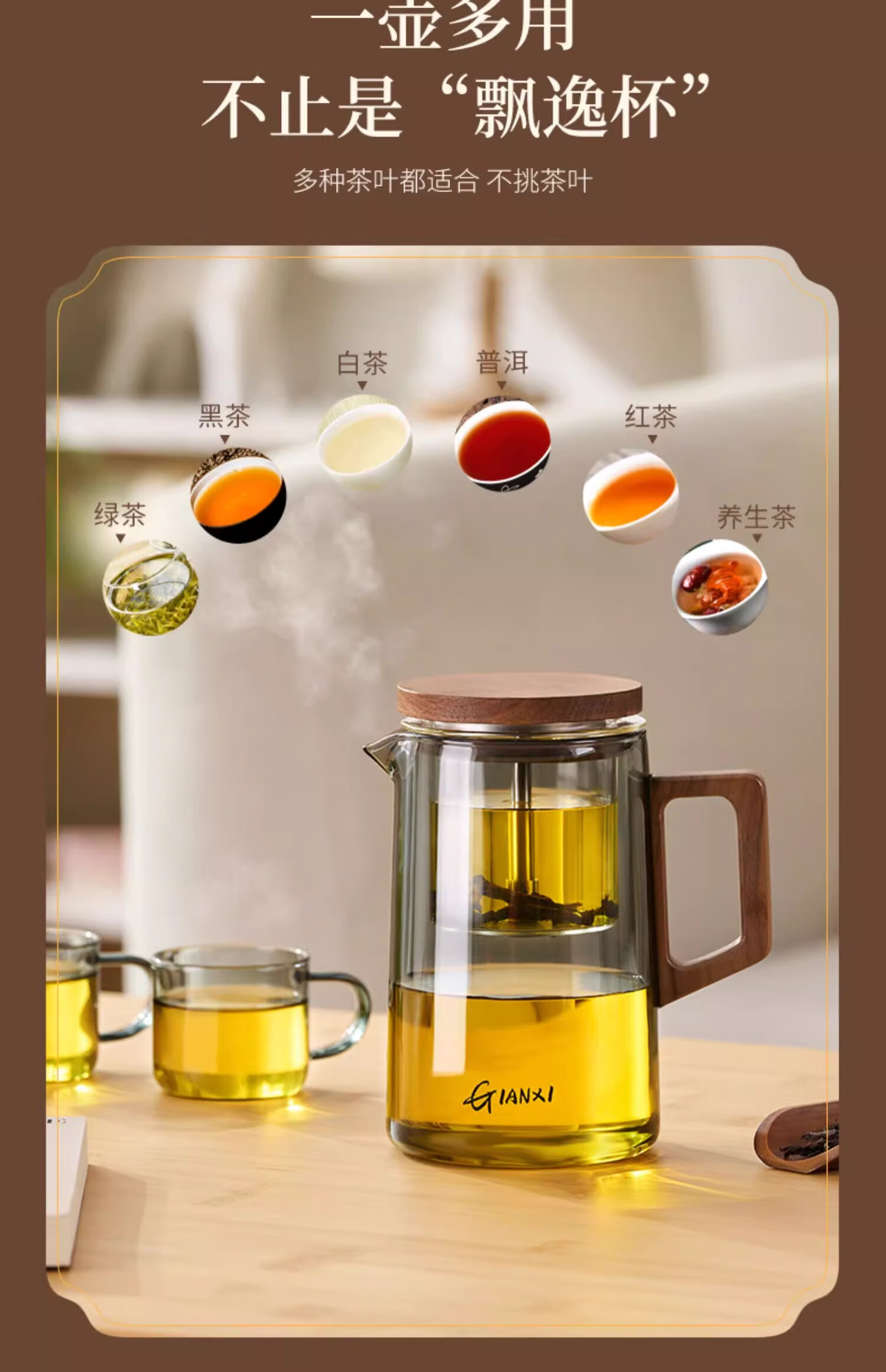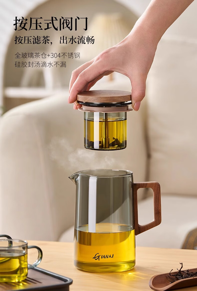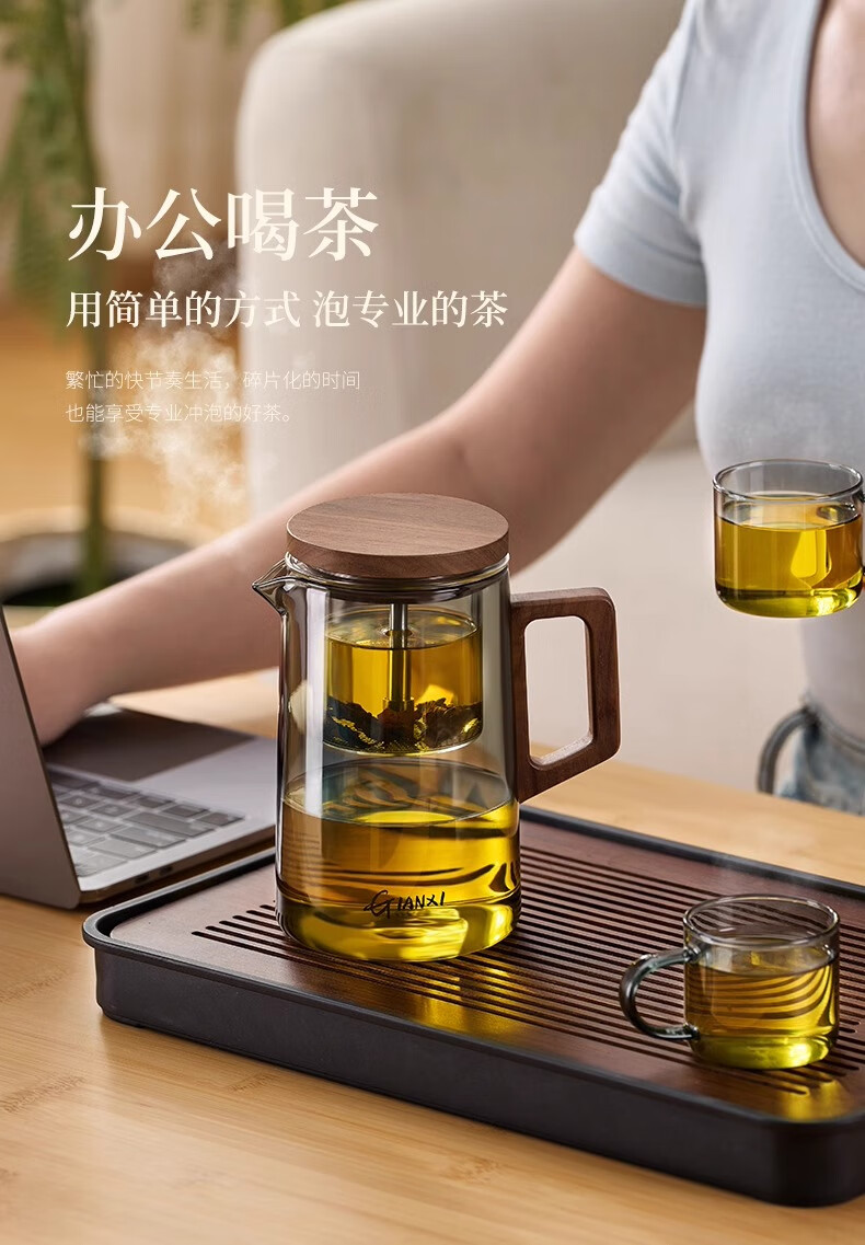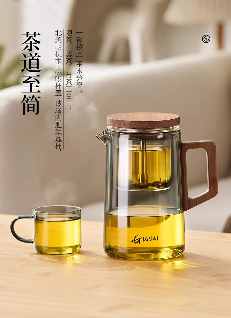 Tianxi Magnetic Elegant Cup Teapot Tea Separator Cup High Temperature Resistant Tea Set Full Glass Liner One-touch Filter Tea Maker Magnetic Suction Style Ash 500ml