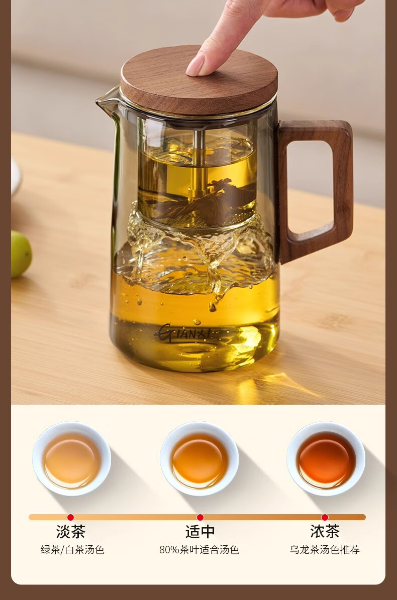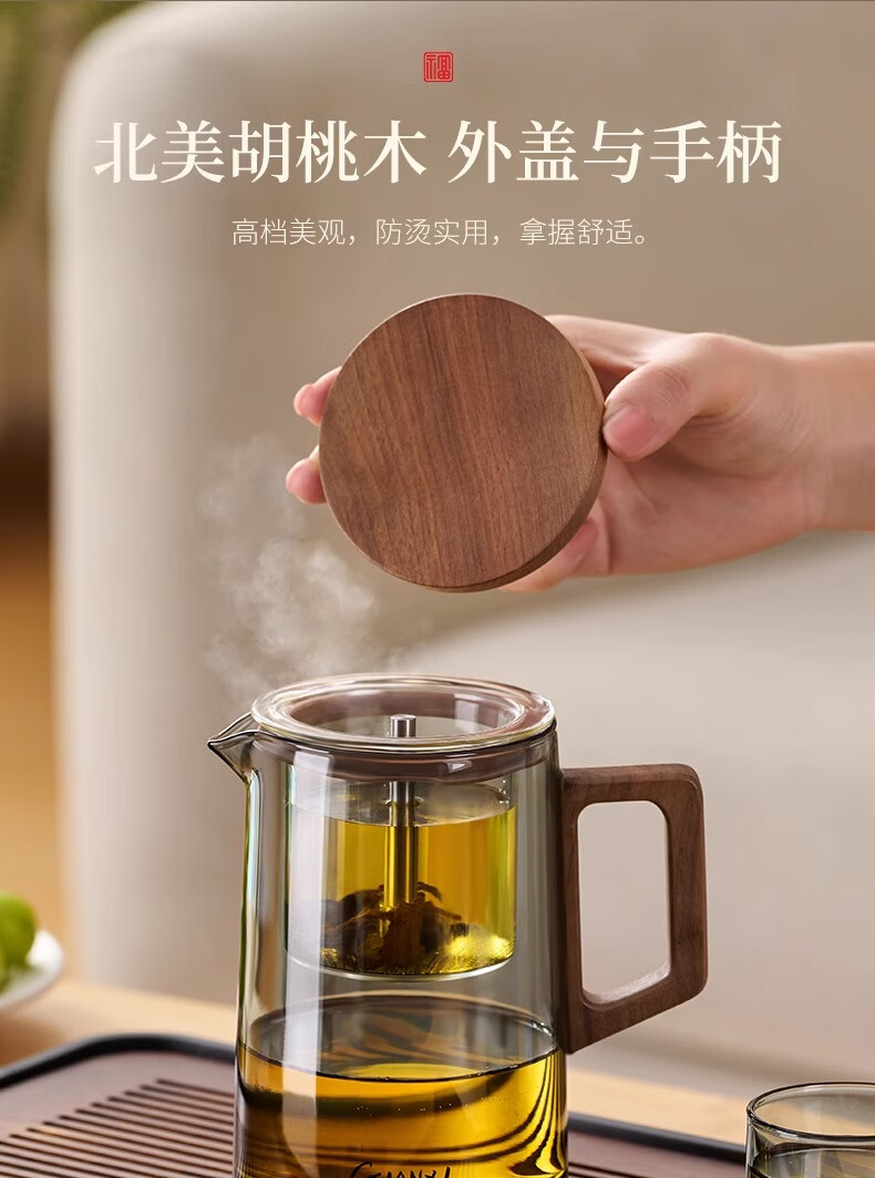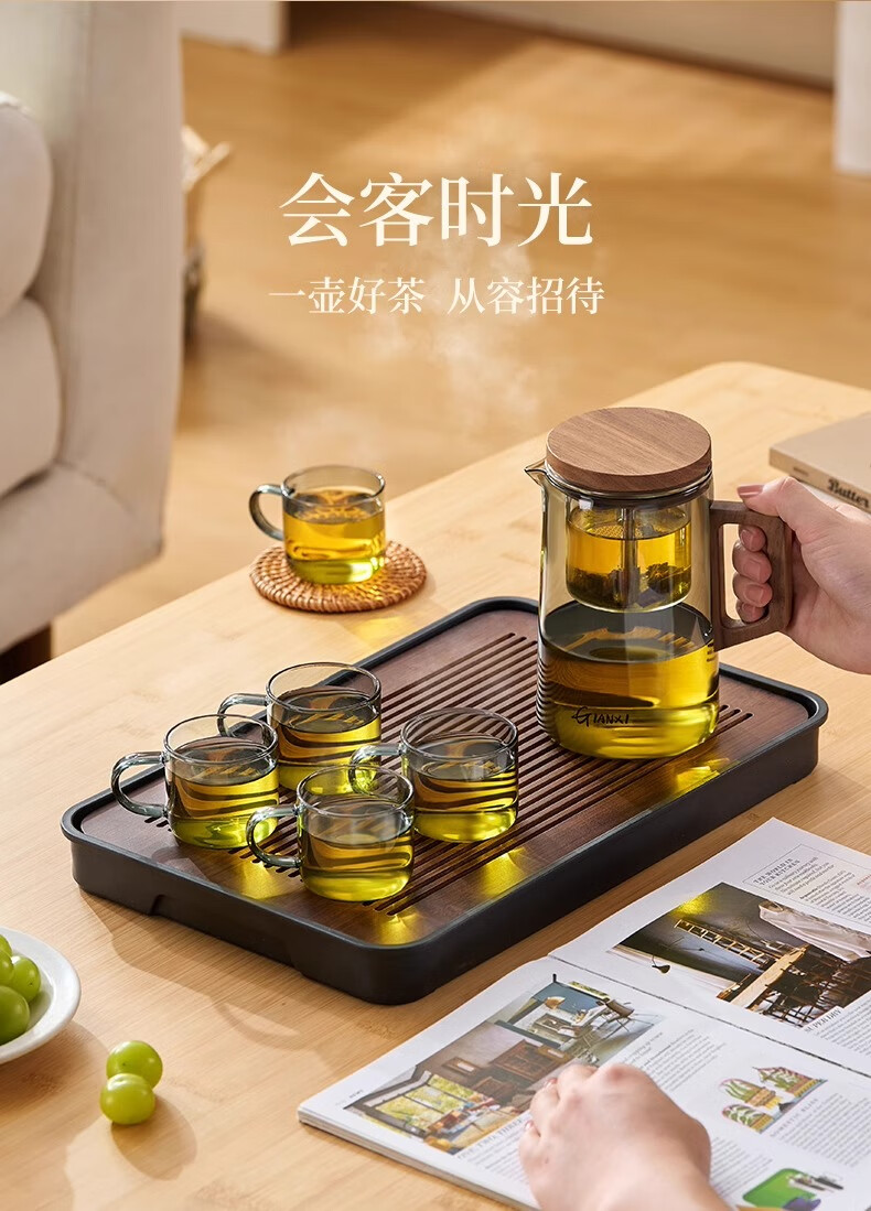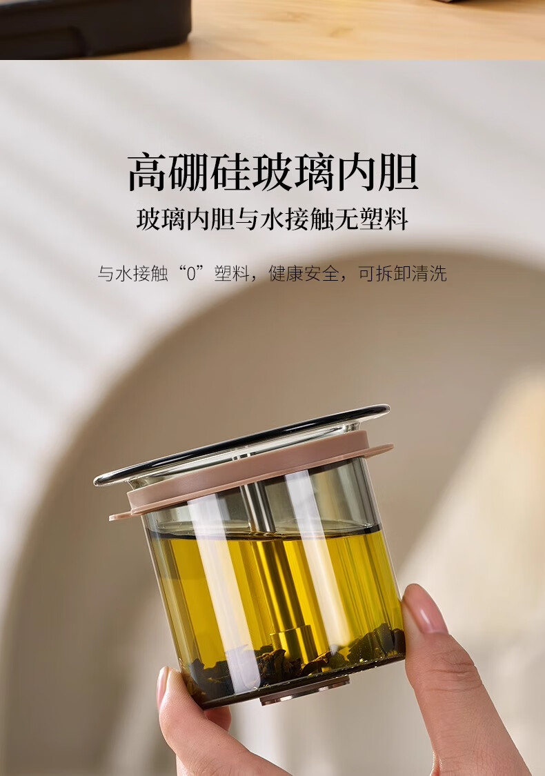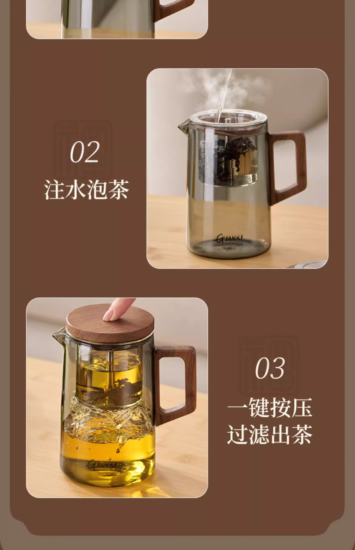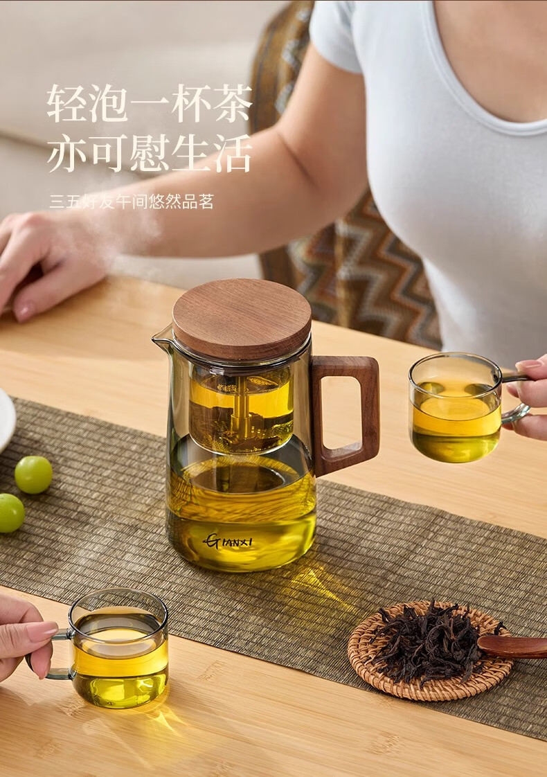 Tianxi Magnetic Elegant Cup Teapot Tea Separator Cup High Temperature Resistant Tea Set Full Glass Liner One-touch Filter Tea Maker Magnetic Suction Style Ash 500ml