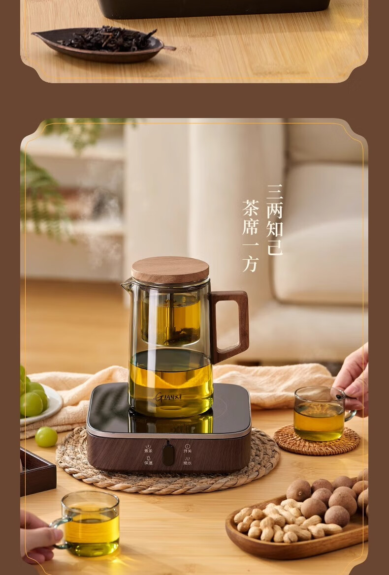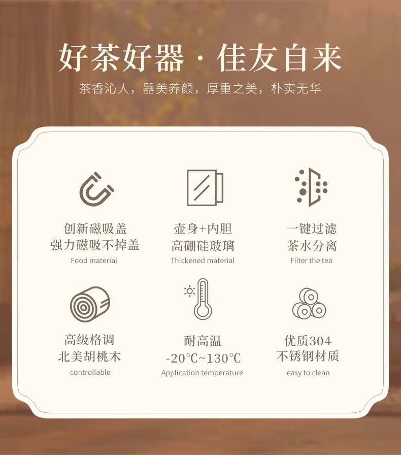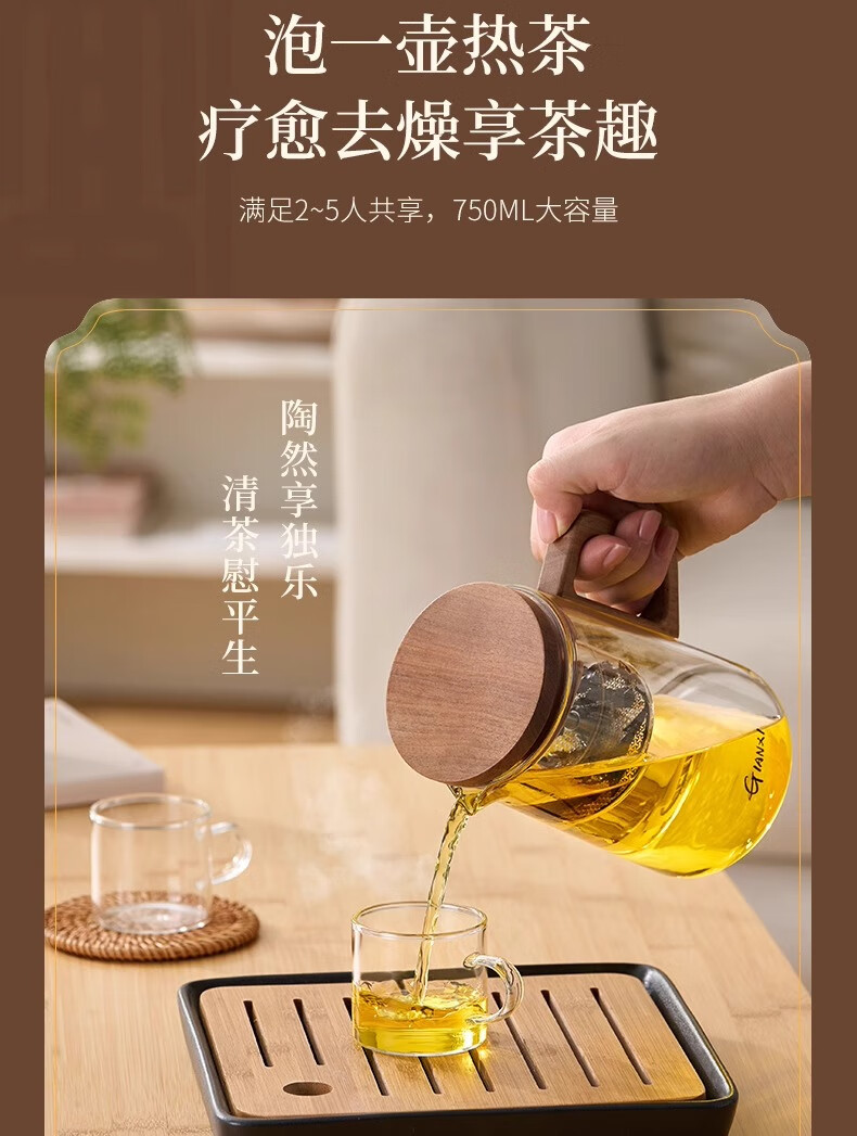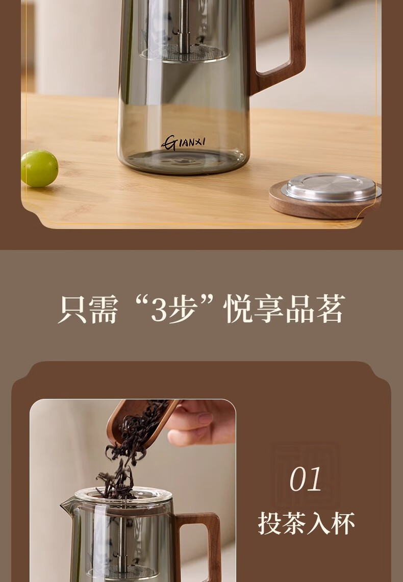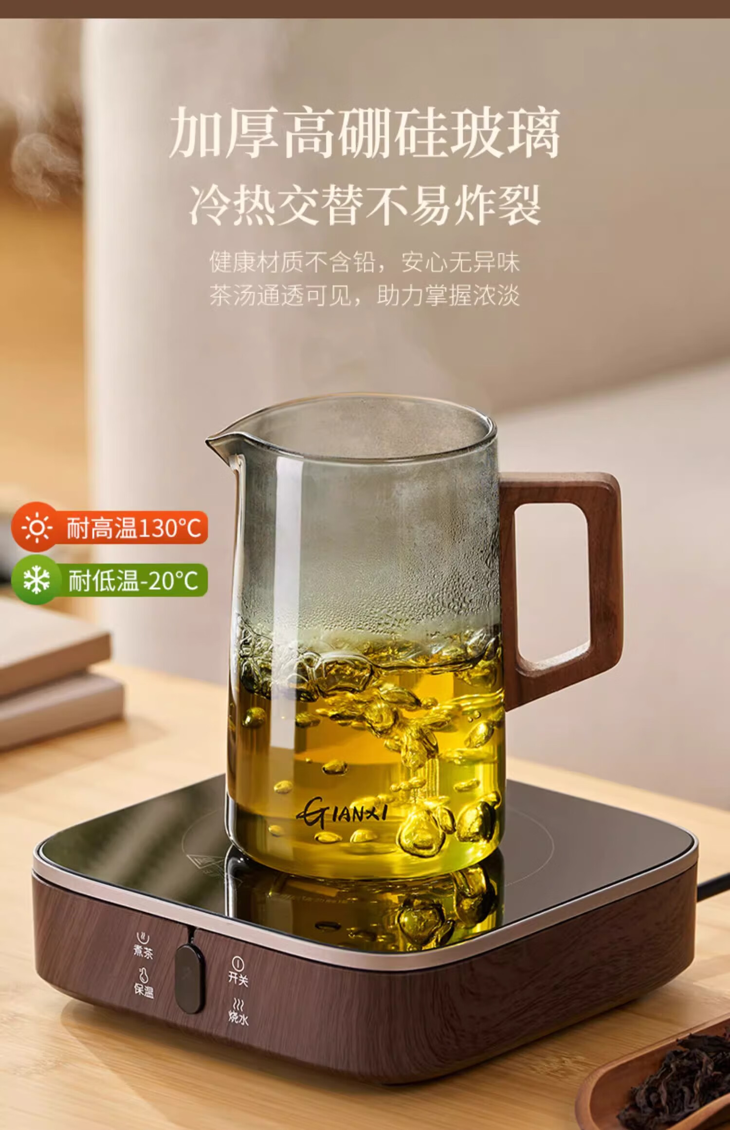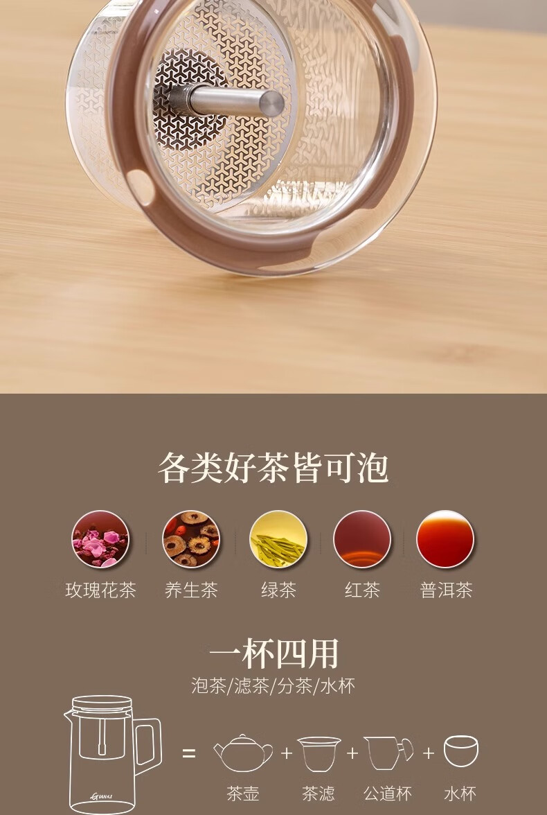 Tianxi Magnetic Elegant Cup Teapot Tea Separator Cup High Temperature Resistant Tea Set Full Glass Liner One-touch Filter Tea Maker Magnetic Suction Style Ash 500ml