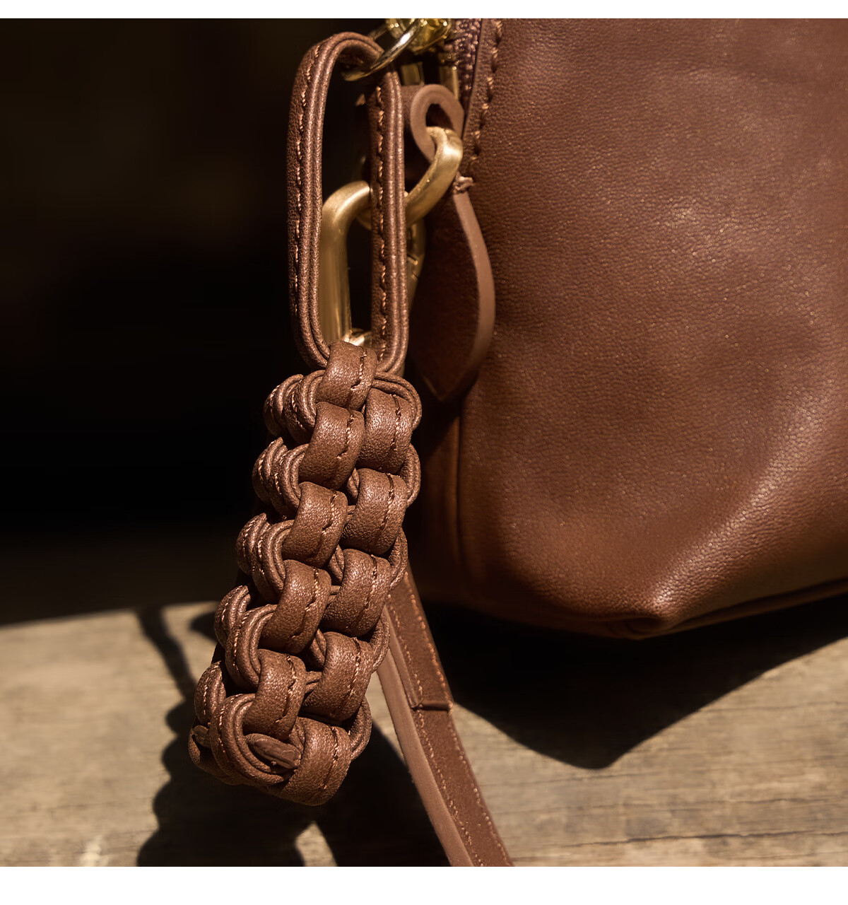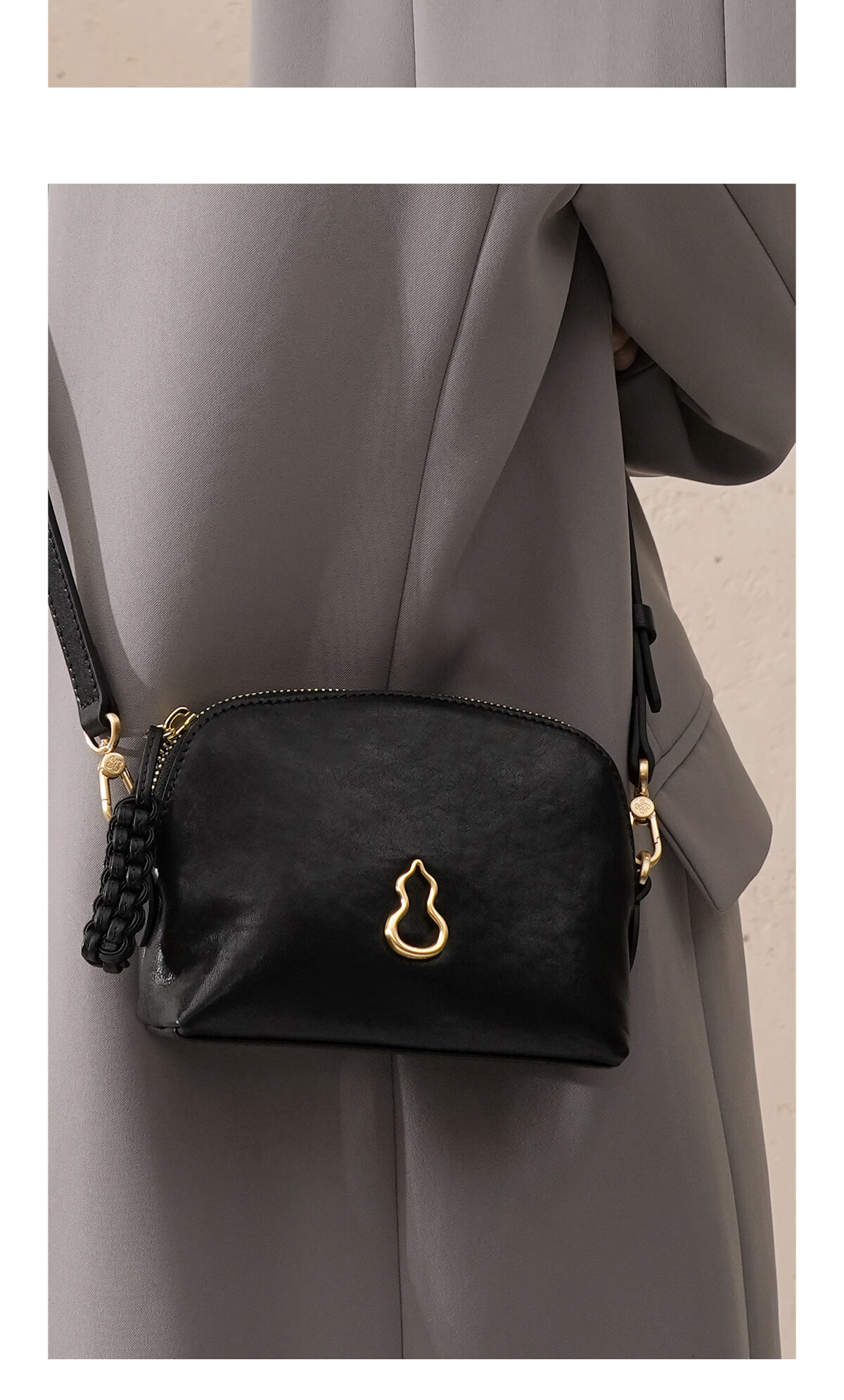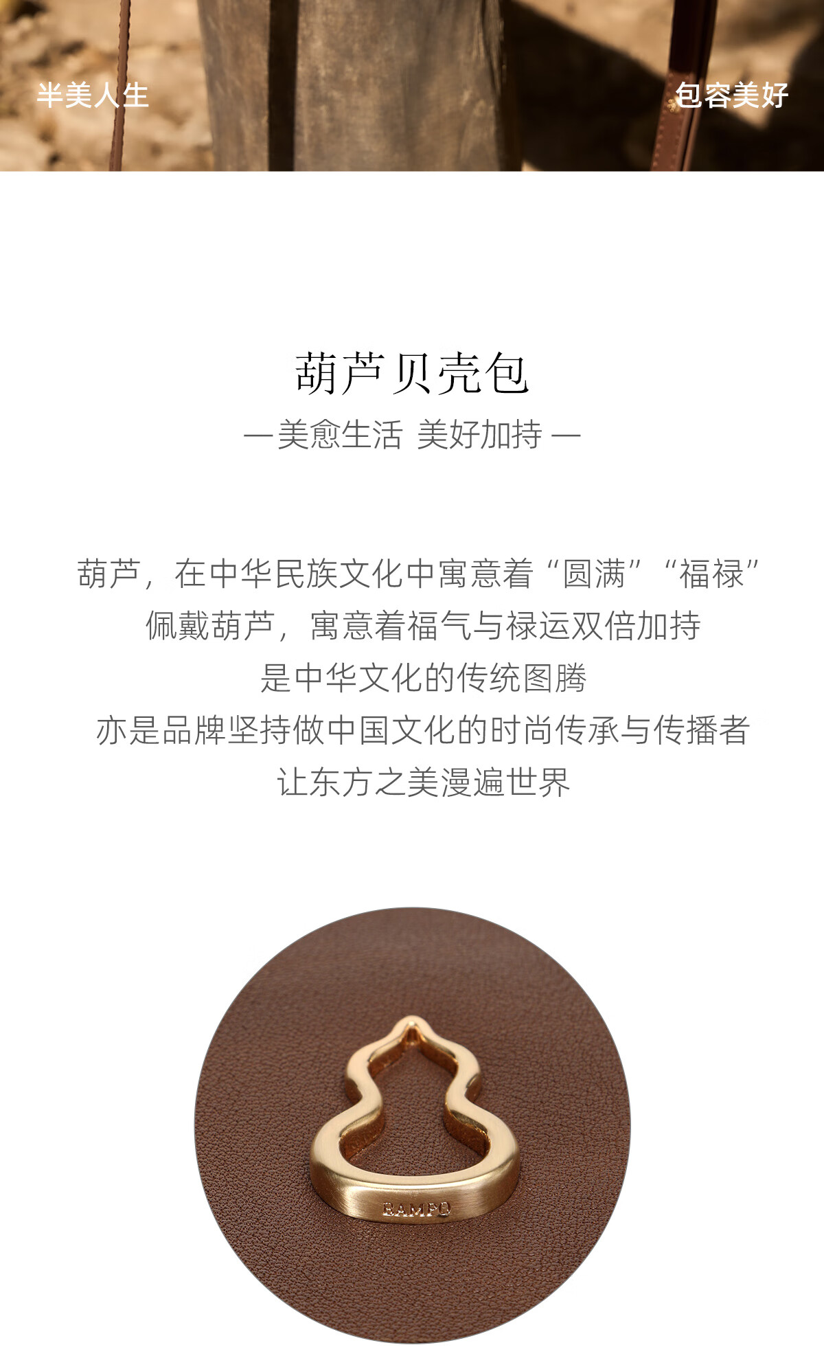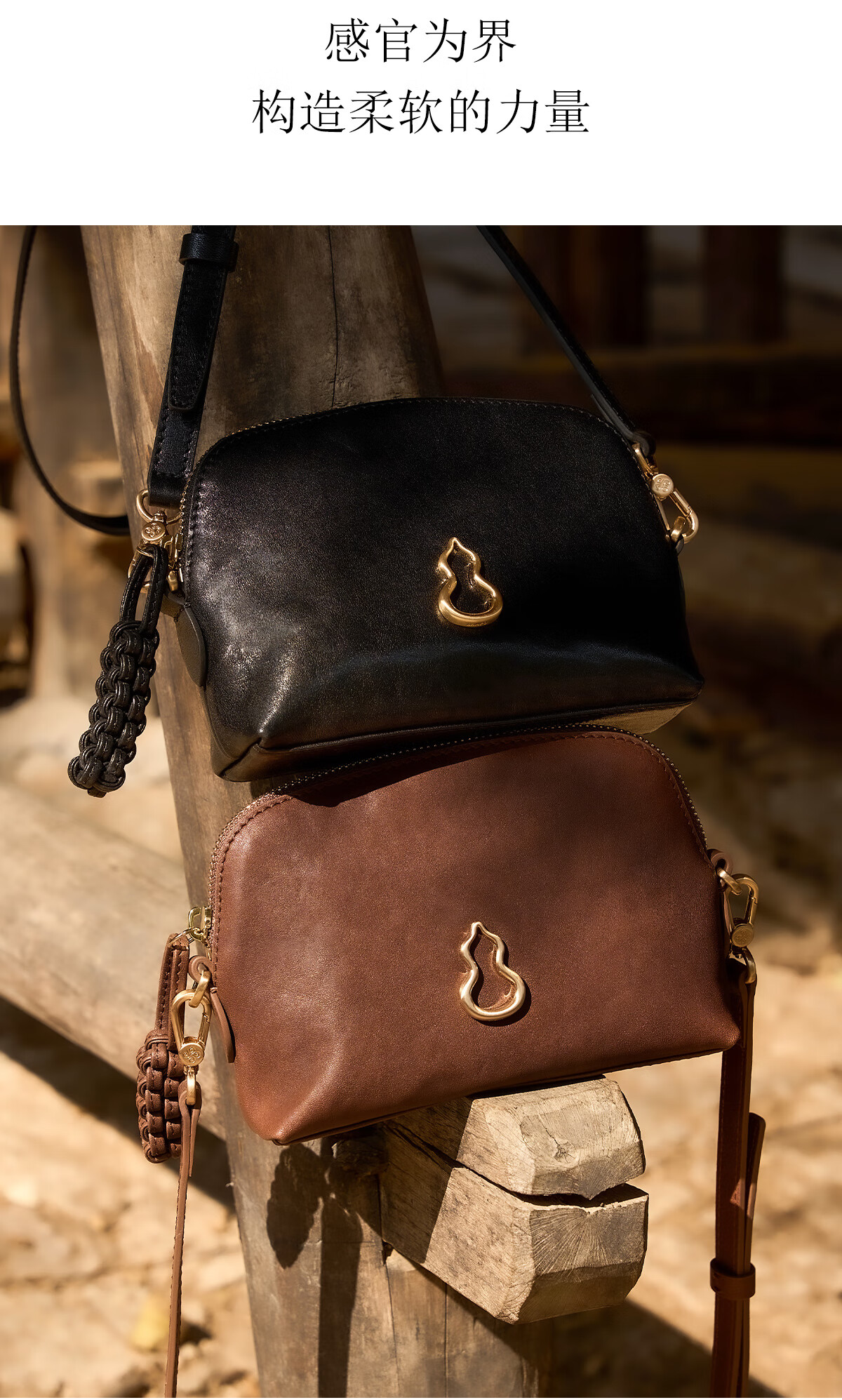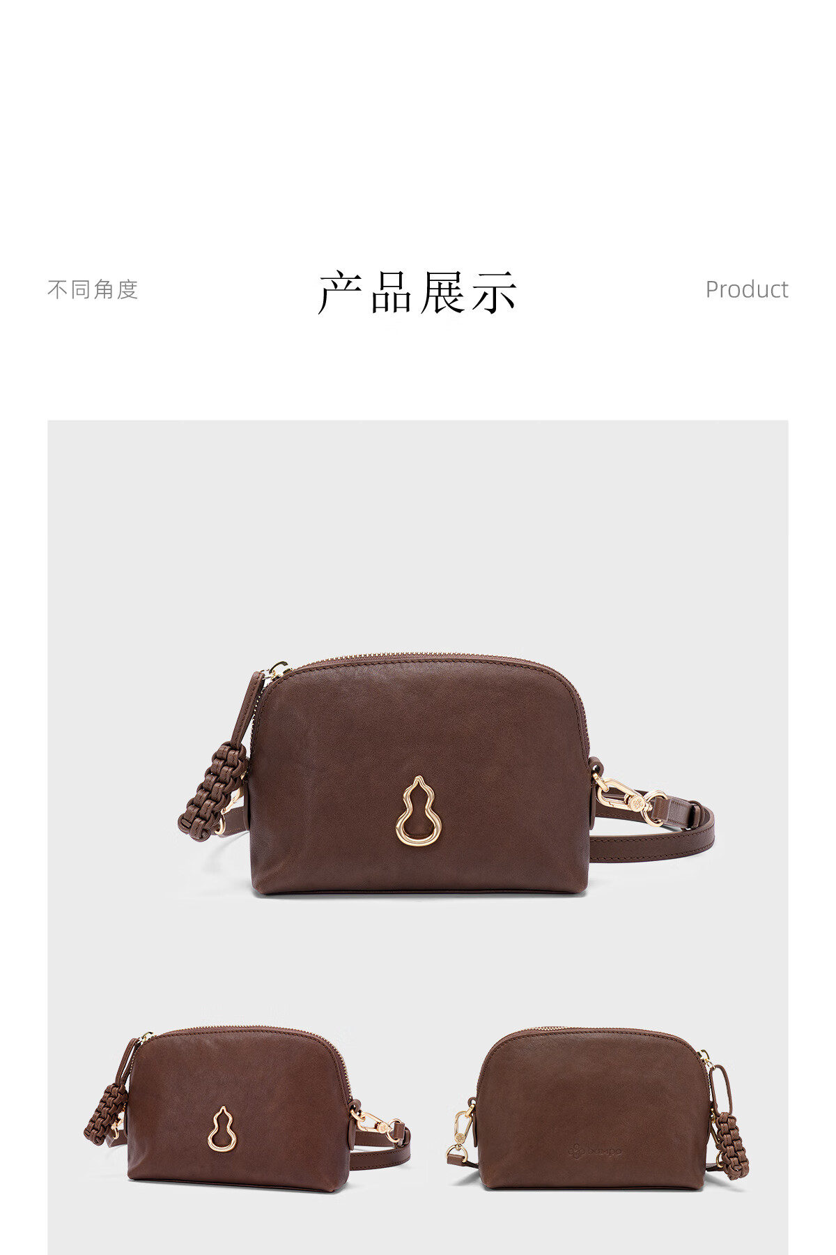 Banpo Decoration Family (bampo) new gourd shell mobile phone bag cowhide vegetable tanned fashion shoulder clutch bag coin women's bag birthday gift chestnut brown