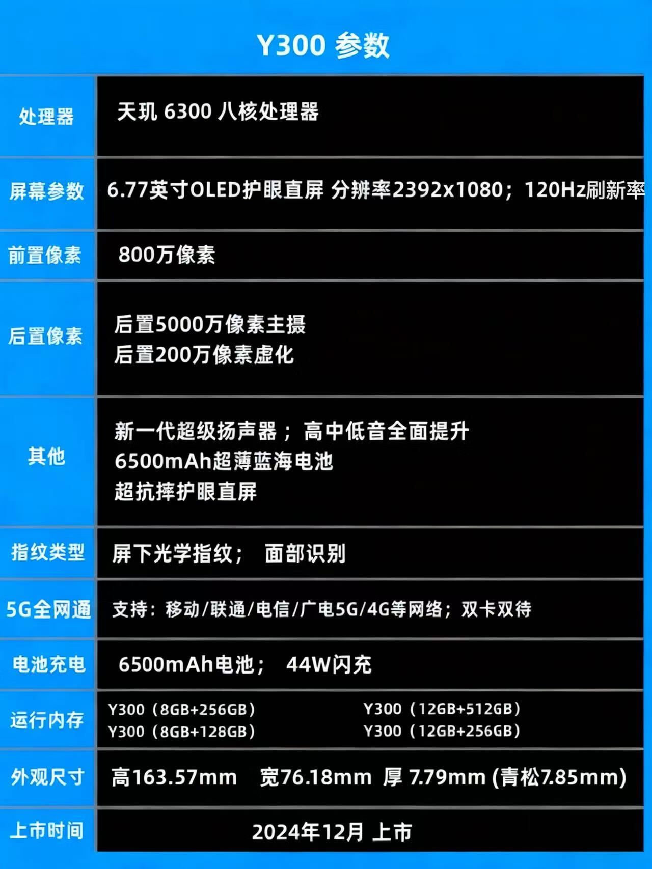Vivo Y300 new 5G mobile phone Dimensity 6300 super large battery camera game waterproof and anti-fall vivoy300 Qingsong 8GB+128GB official standard configuration