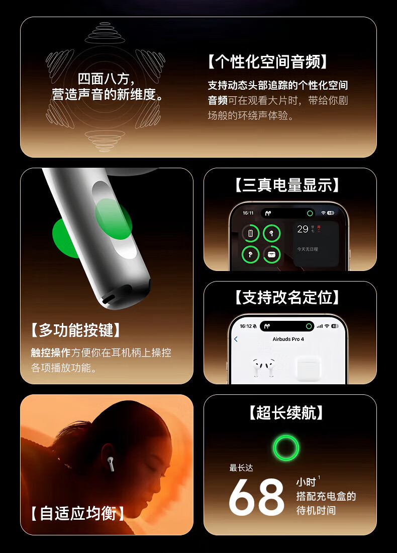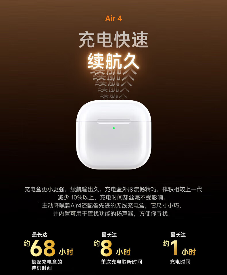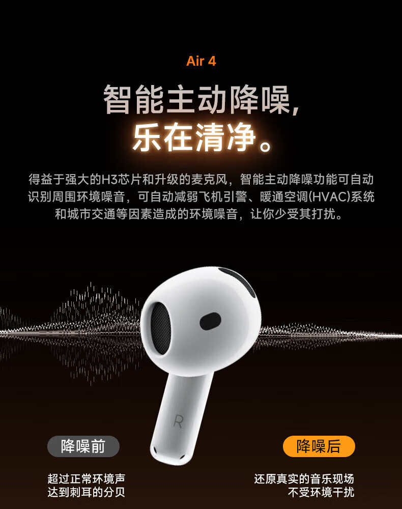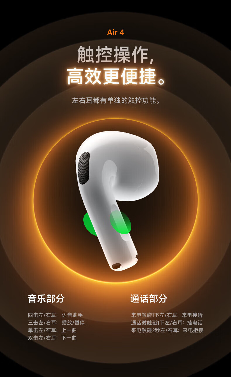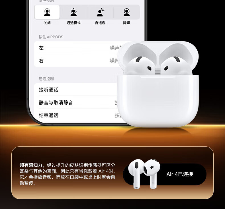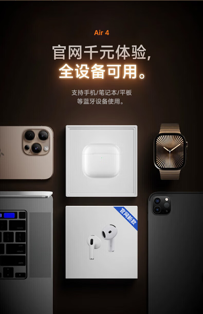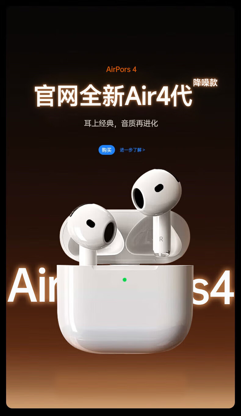 Huaqiangbei's top-of-the-line, carefully selected authentic products丨Air4 generation noise-cancelling model Bluetooth headset adapted to Apple Wireless 2025 new semi-in-ear gold list iPhone17/16/15 top-of-the-line pods4 Original full-featured top-of-the-line version Active noise reduction + spatial audio + three true power