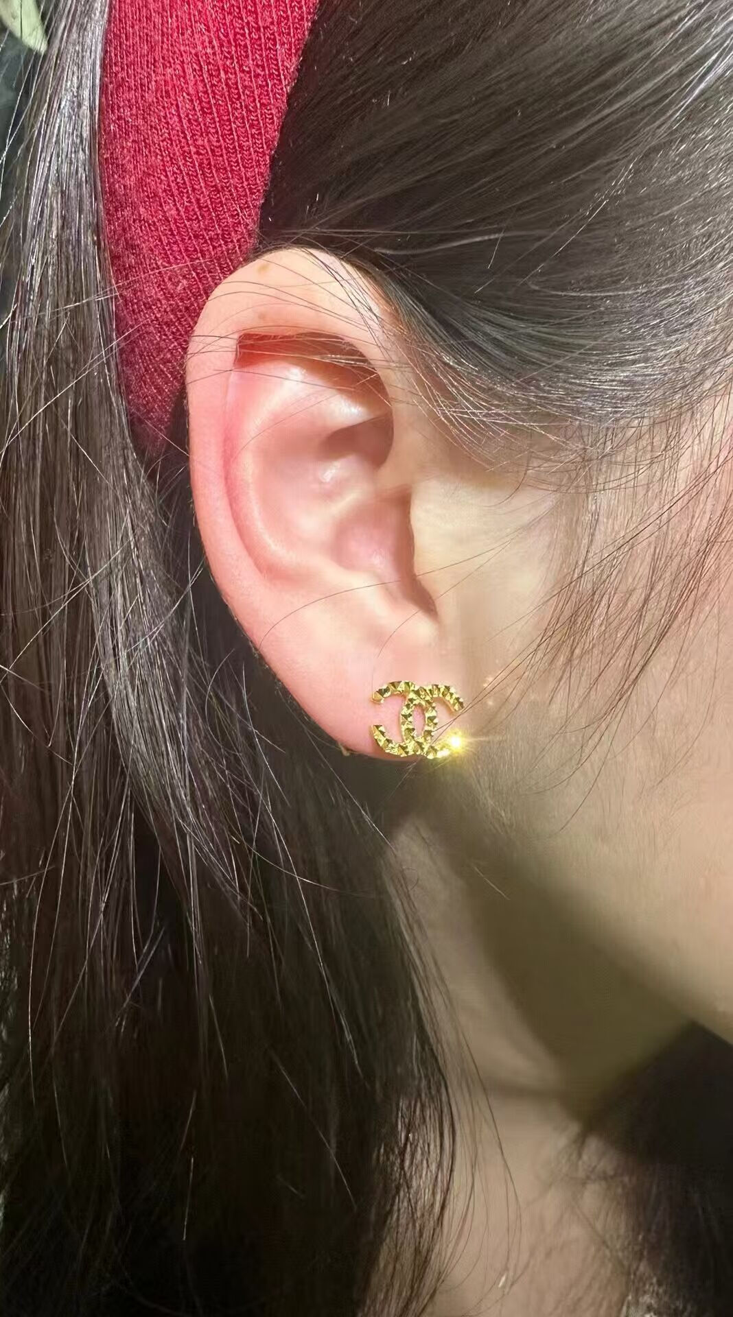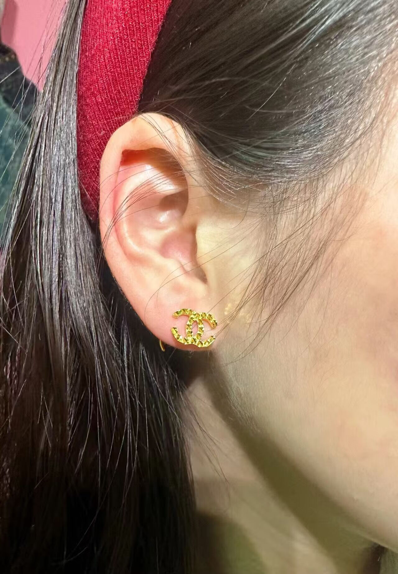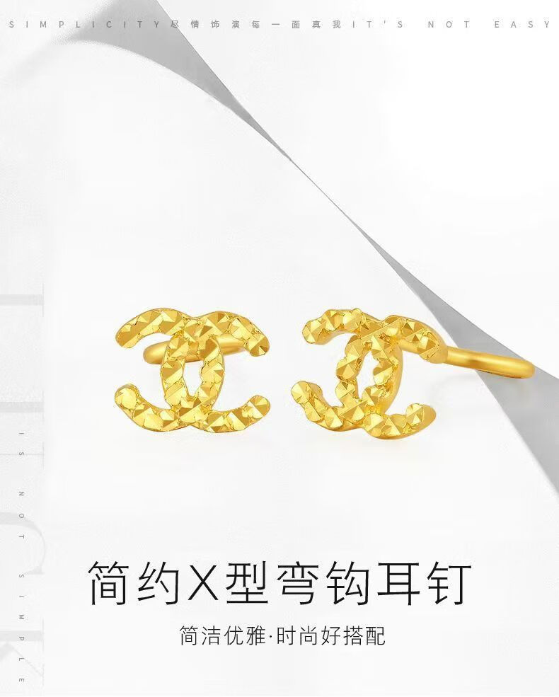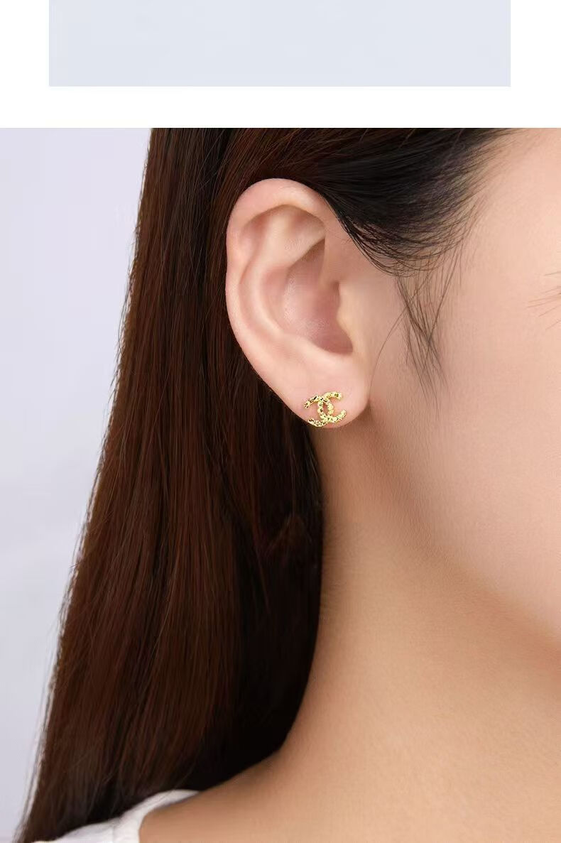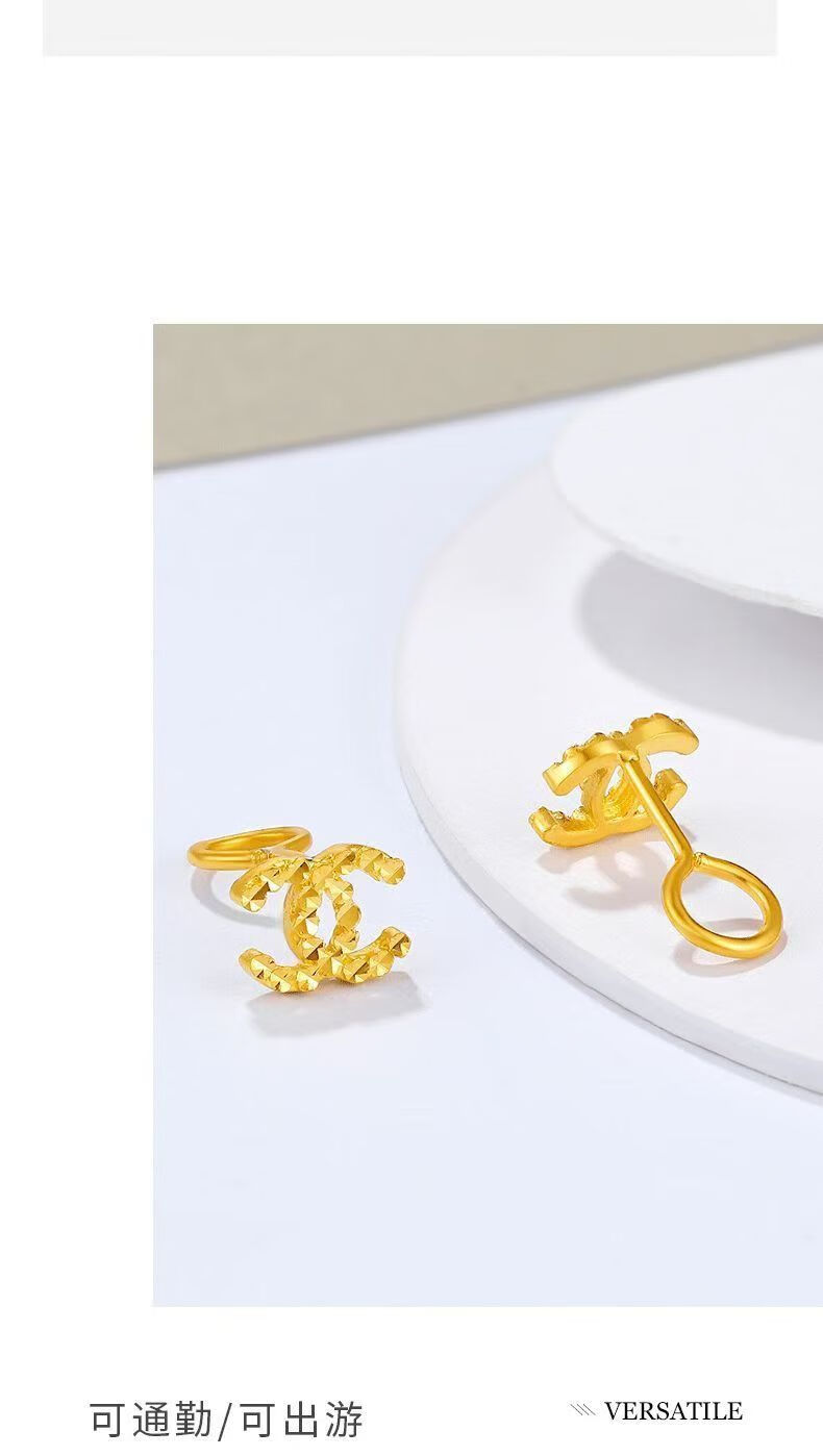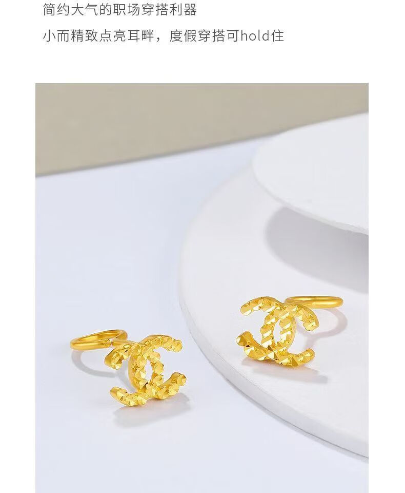 Chuxiao gold color earrings for women 2024 new pure gold double c earrings 18k color gold earrings imitation gold for girlfriend double c earrings small style hook style