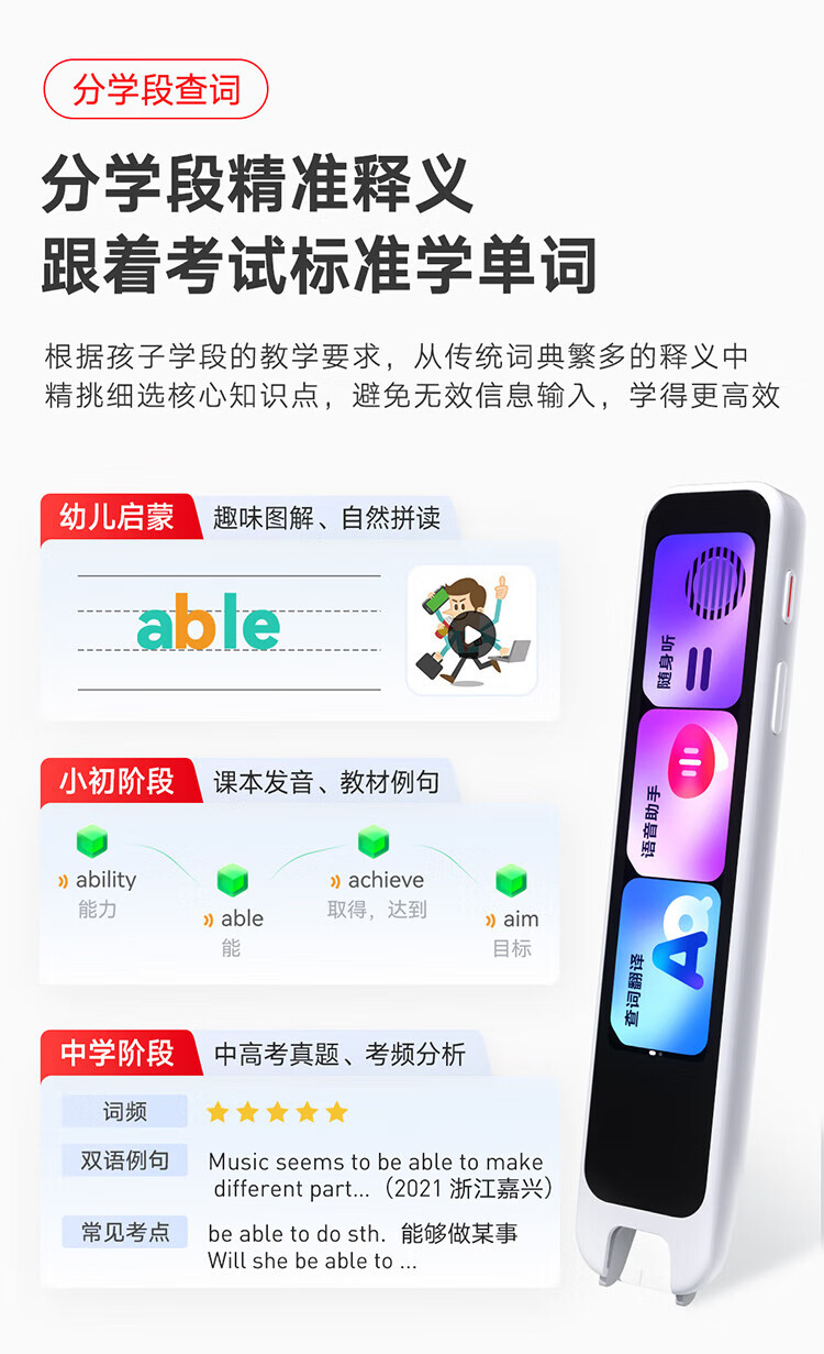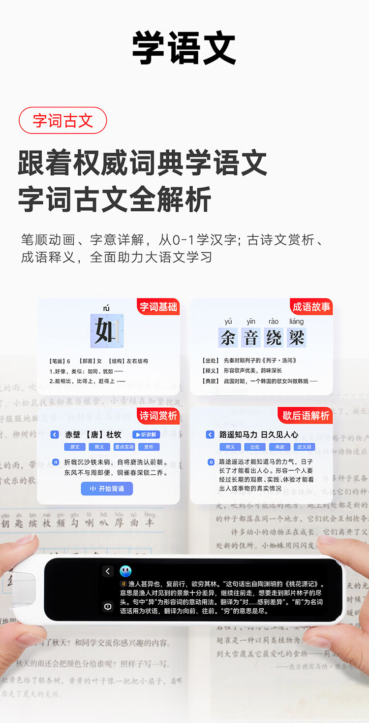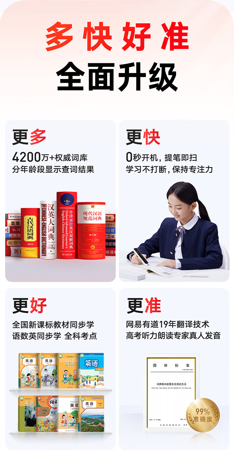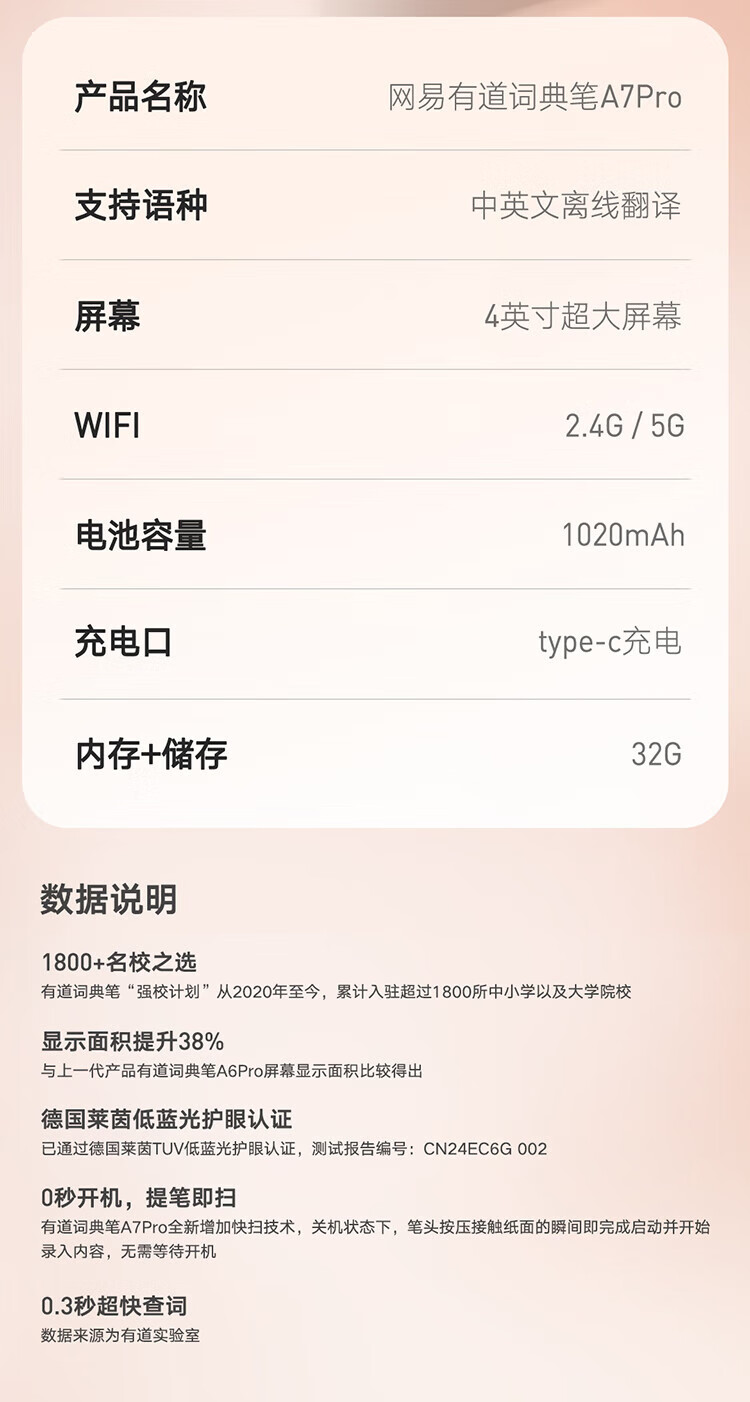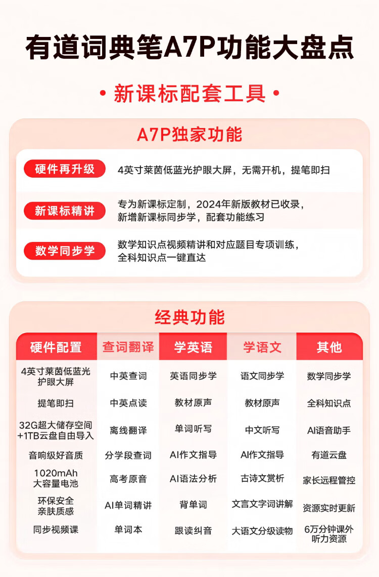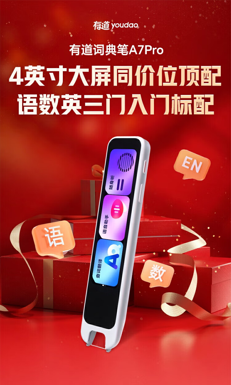 Youdao Dictionary Pen A7Pro New Curriculum Standard English Point Reading Pen Elementary School and High School Learning Artifact Electronic Dictionary Translation Scanning Word Pen A6Pro Upgraded Language, Numbers and English Three Doors A7Pro 32GB Hot Style