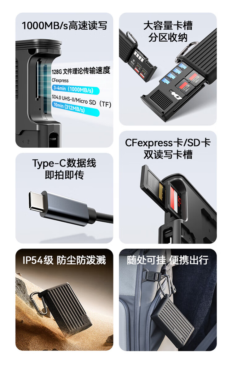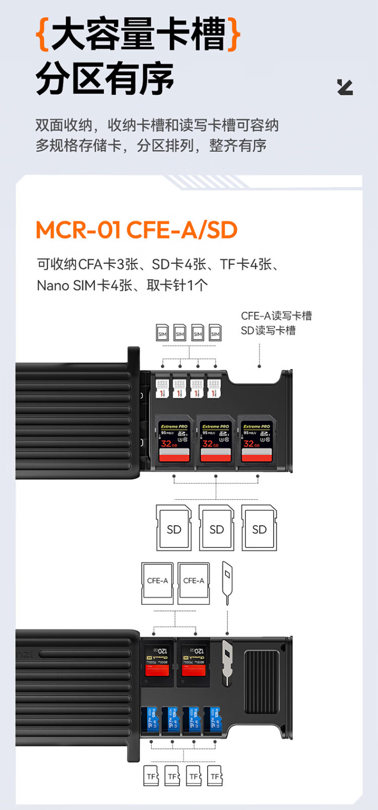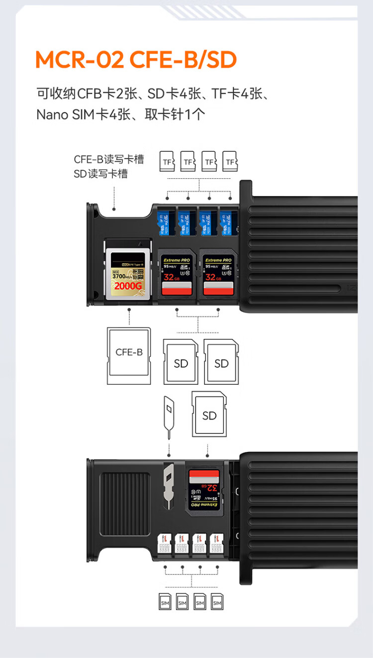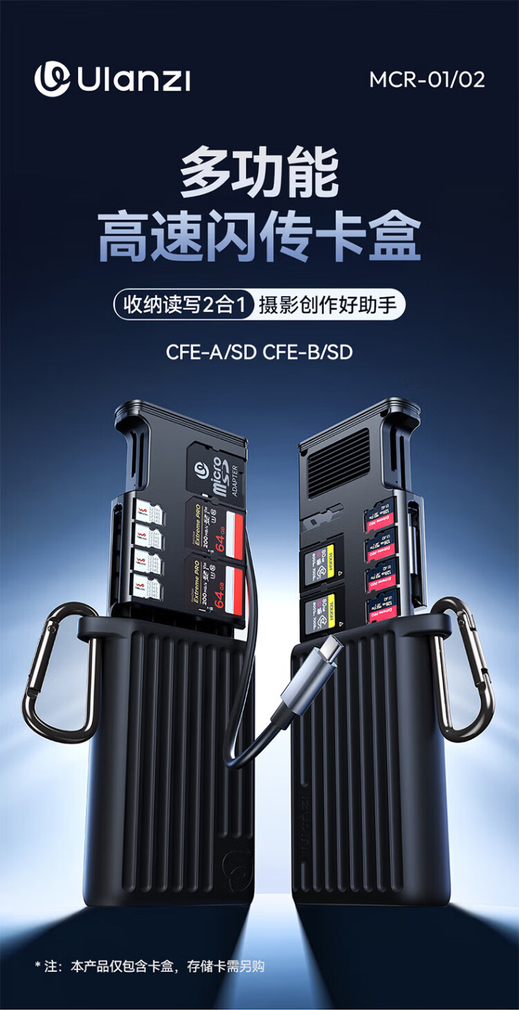 Ulanzi Ulanzi MCR-01/02 multi-function card reader USB3.2 high-speed memory card box camera mobile phone memory card CFA/SD/TF/SIM card storage protective cover MCR-02丨CFE-B flash card box