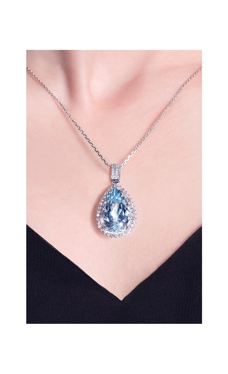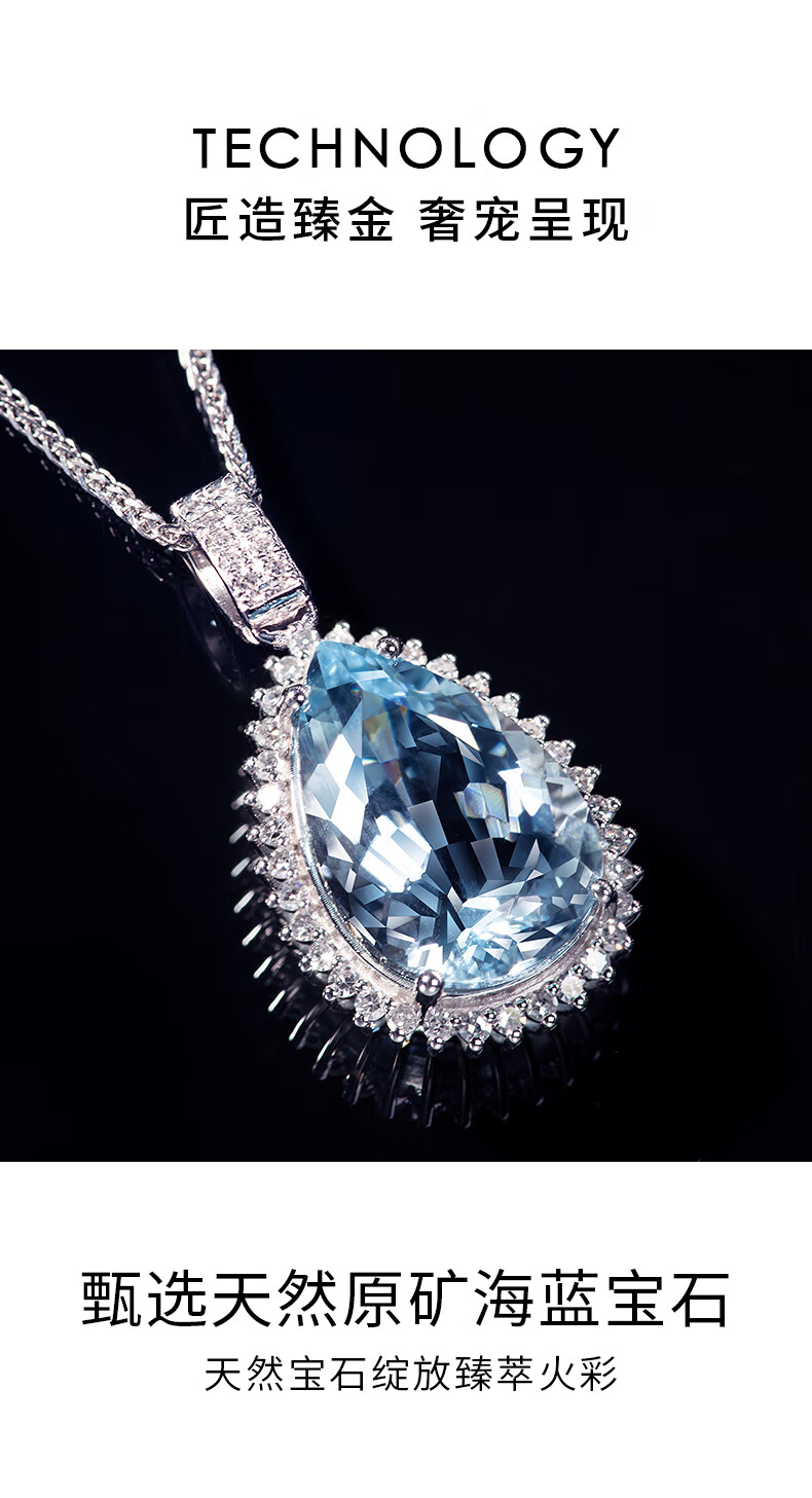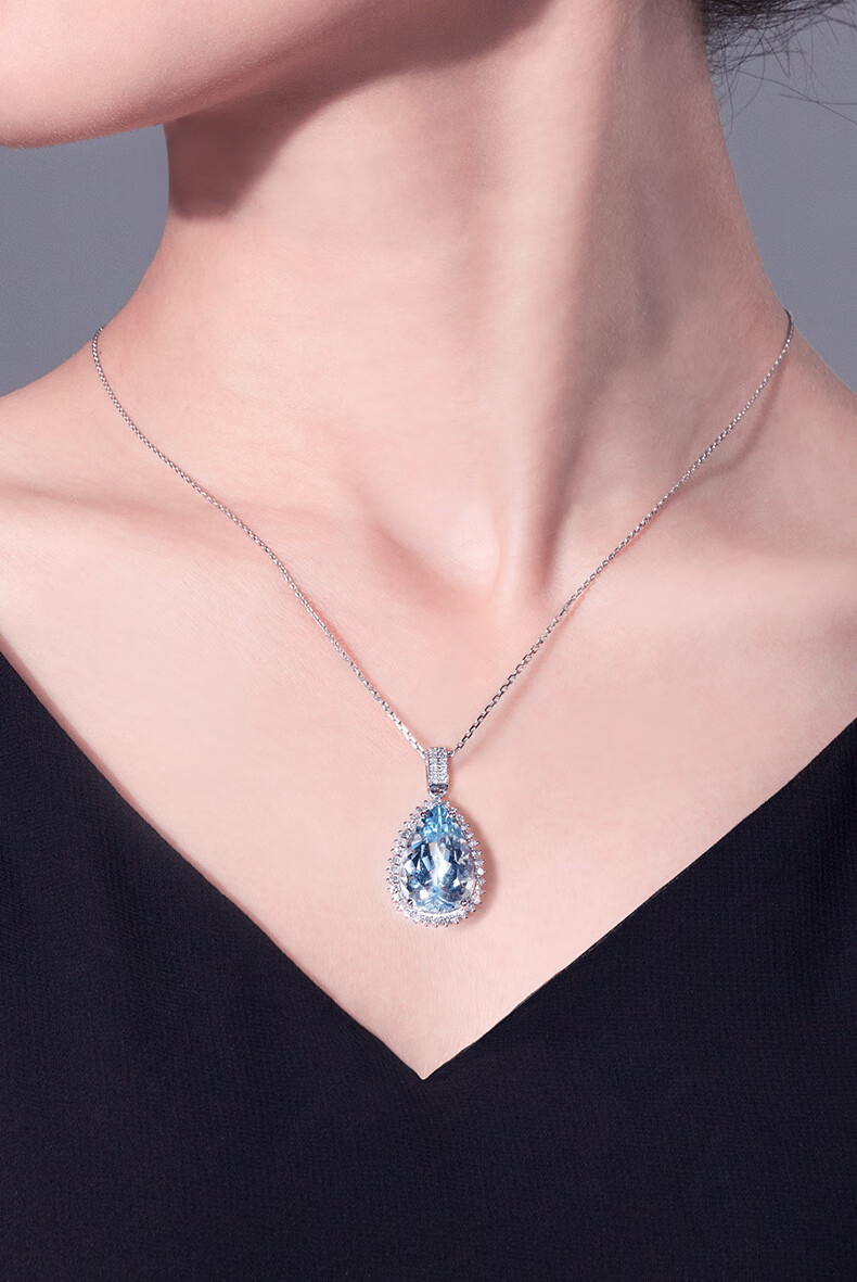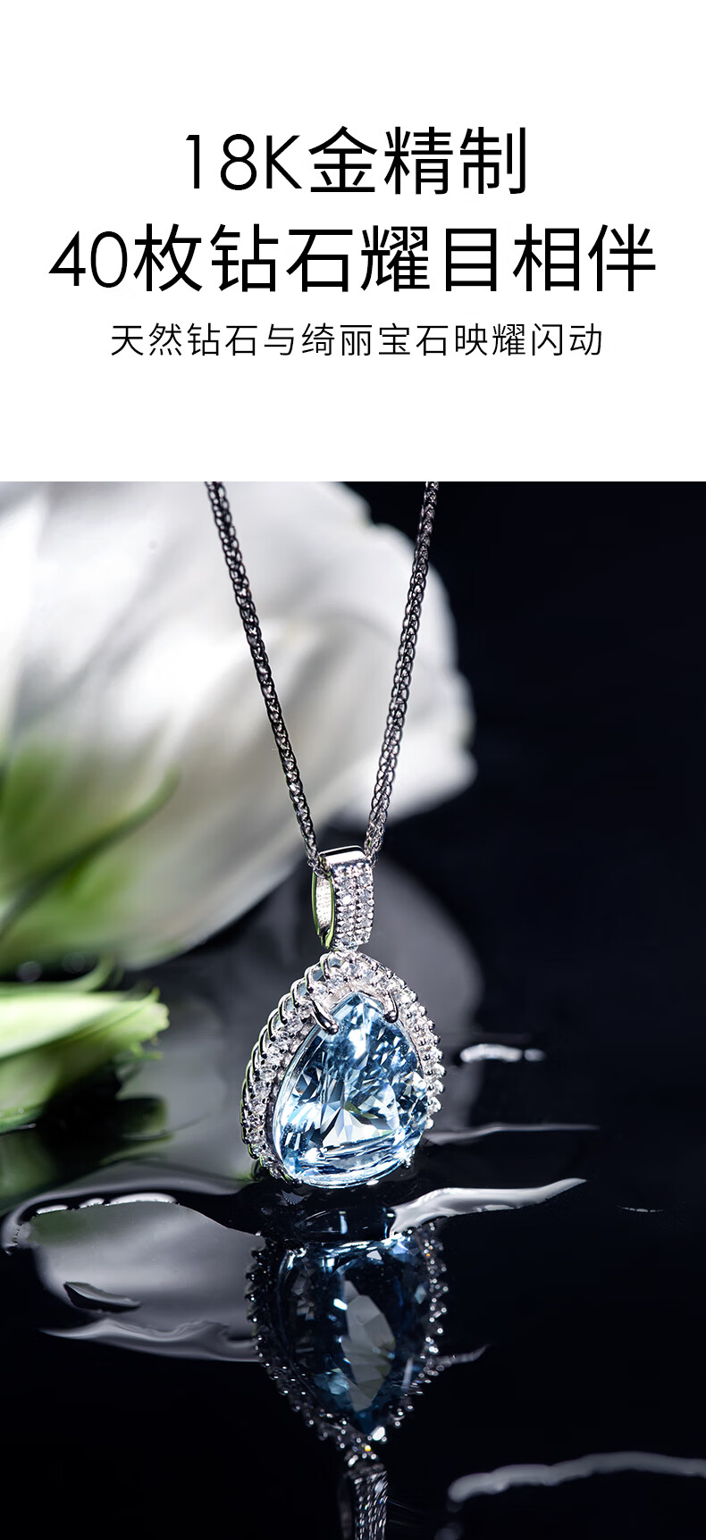 HEEKAIYI Heart of the Ocean Diamond Necklace Women's Aquamarine Luxury Jewelry Chinese Valentine's Day Birthday Gift for Wife 4 Carat-18K Gold Aquamarine Necklace