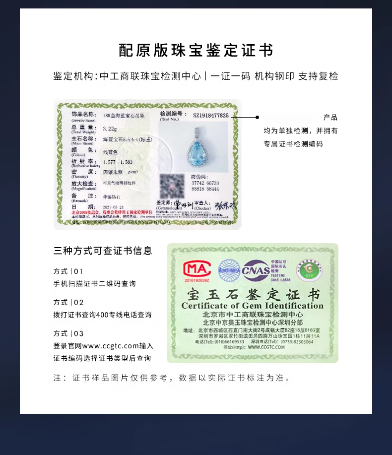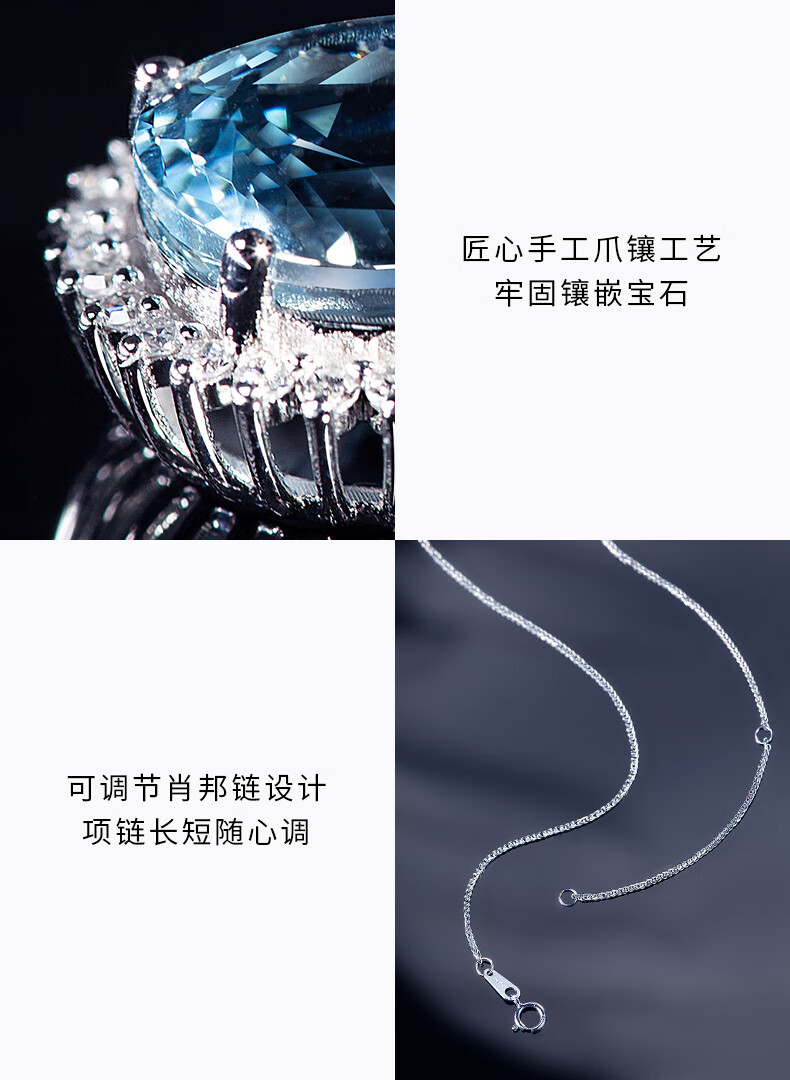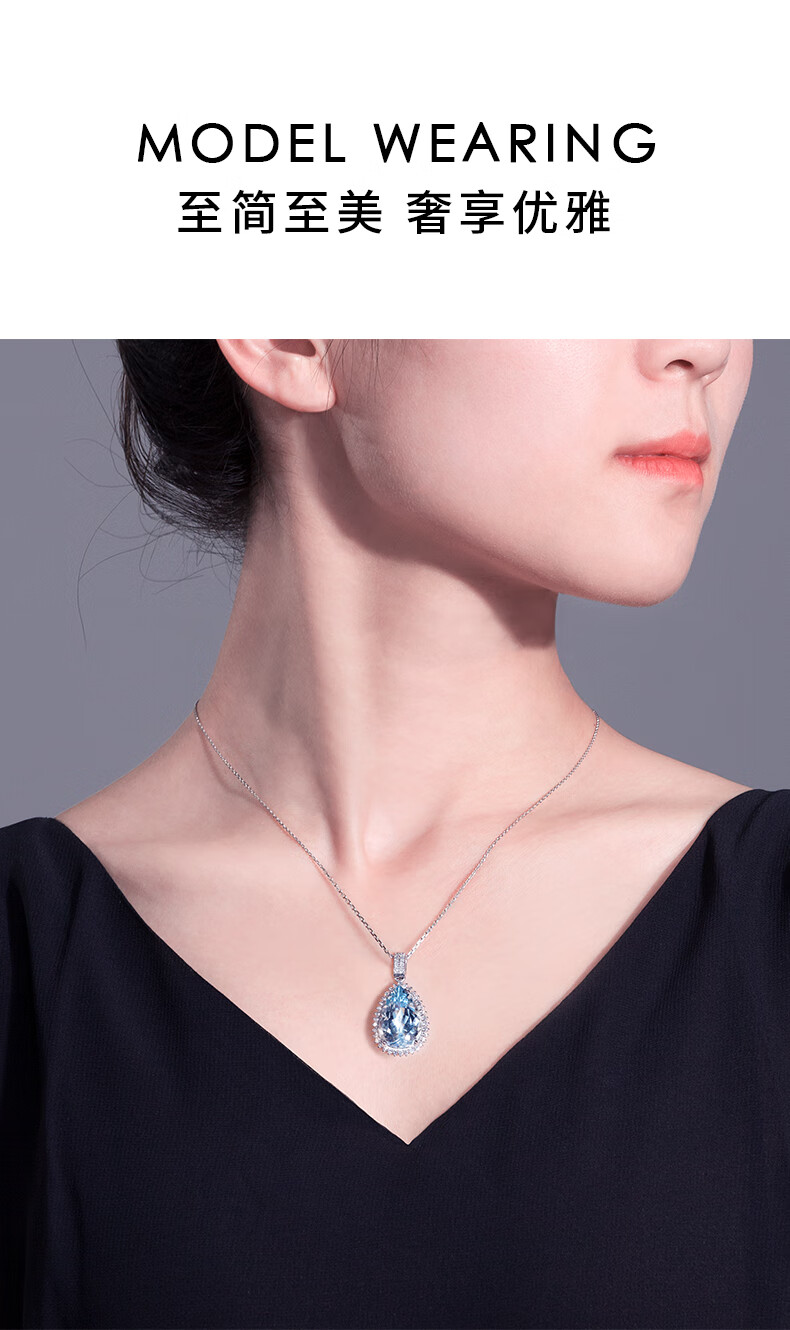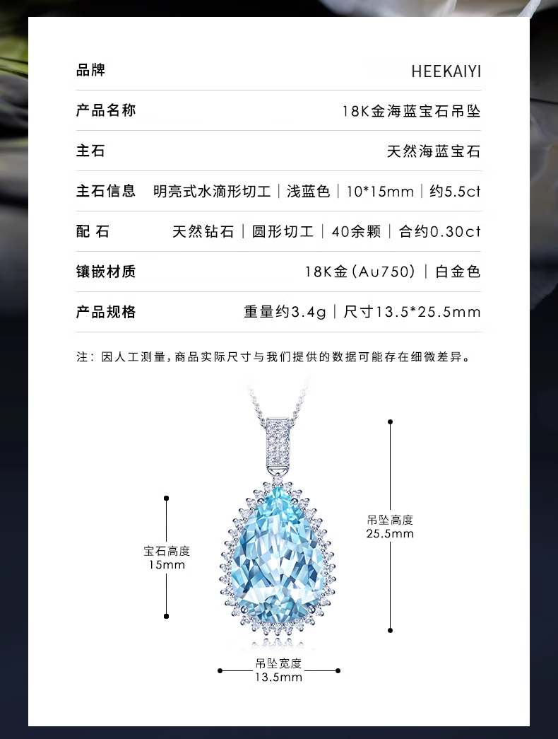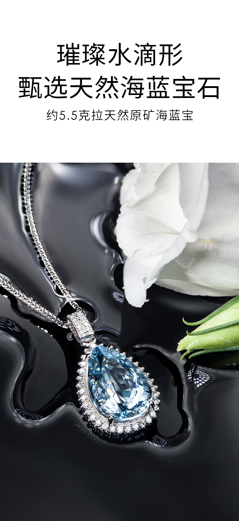 HEEKAIYI Heart of the Ocean Diamond Necklace Women's Aquamarine Luxury Jewelry Chinese Valentine's Day Birthday Gift for Wife 4 Carat-18K Gold Aquamarine Necklace