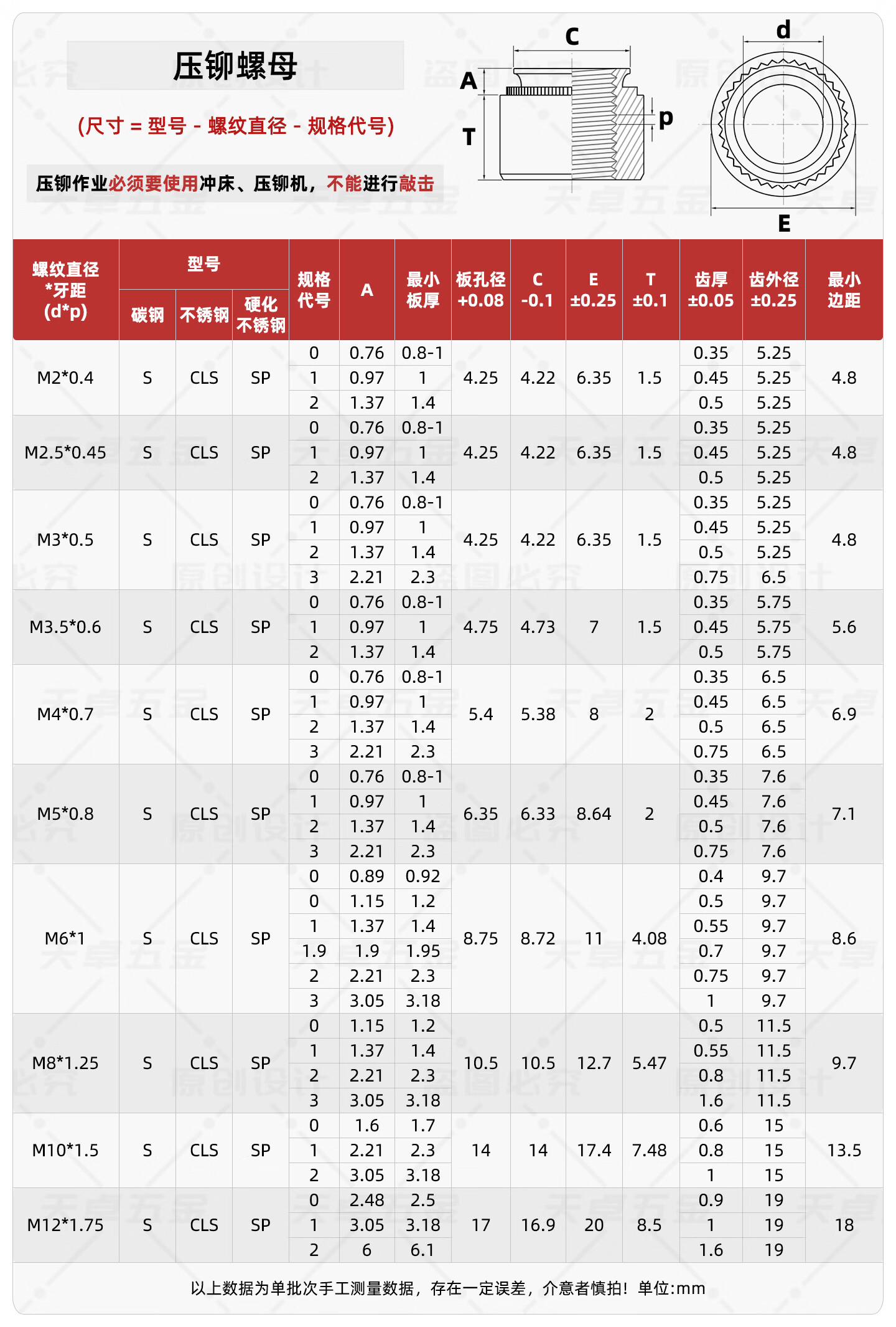 Tianzhuo Hardware CLS SP American and British 304/410 stainless steel pressure rivet nut pressure plate nut sheet metal pressure joint nut M8-1 5 pieces 316