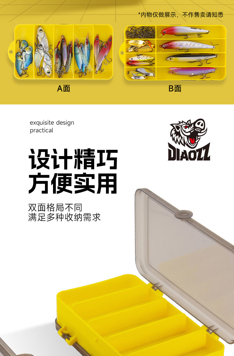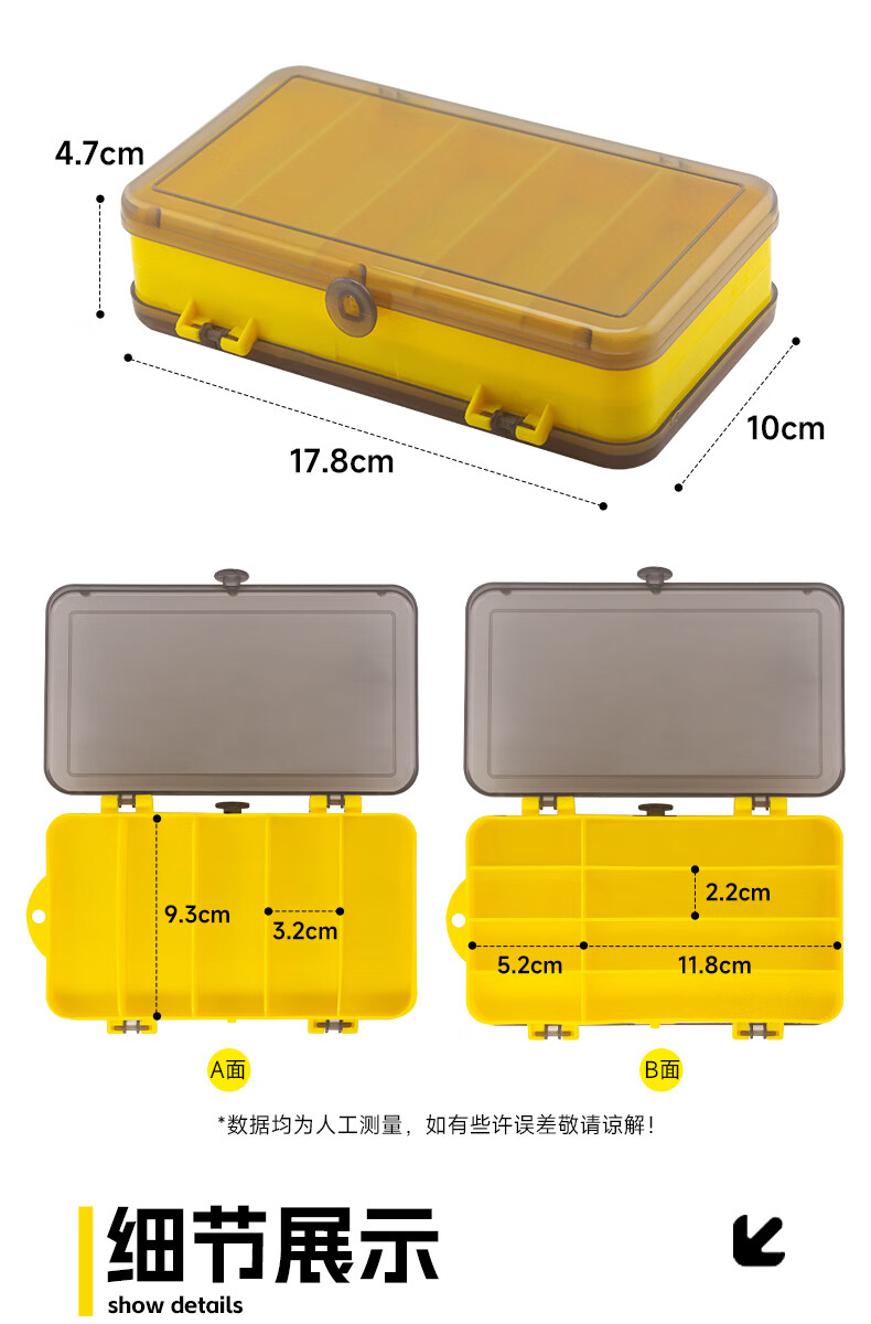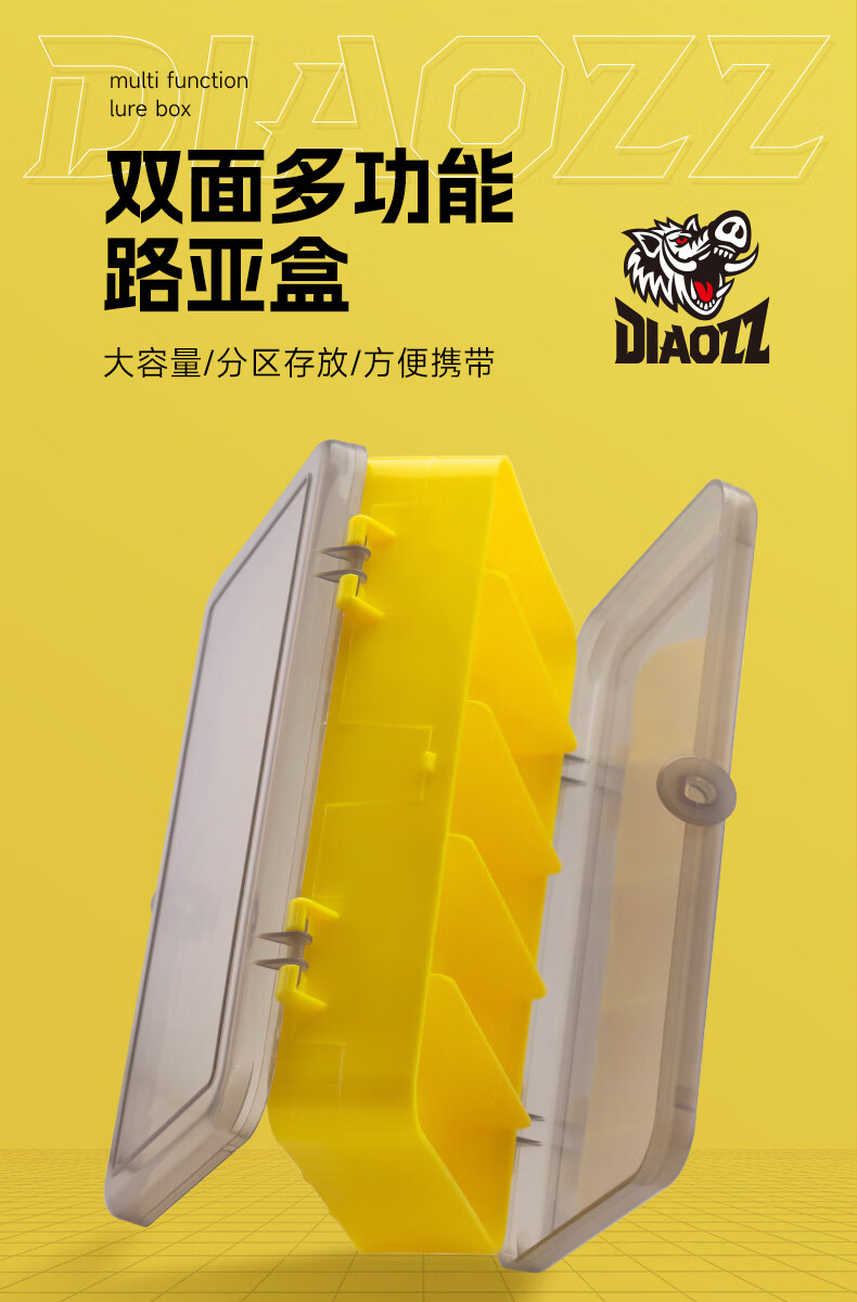 Fishing Pig Lure Bait Box Lua Double-sided Storage Box False Bait Fish Hook Fishing Accessories Mino Portable Storage Multi-Function Large Box Yellow