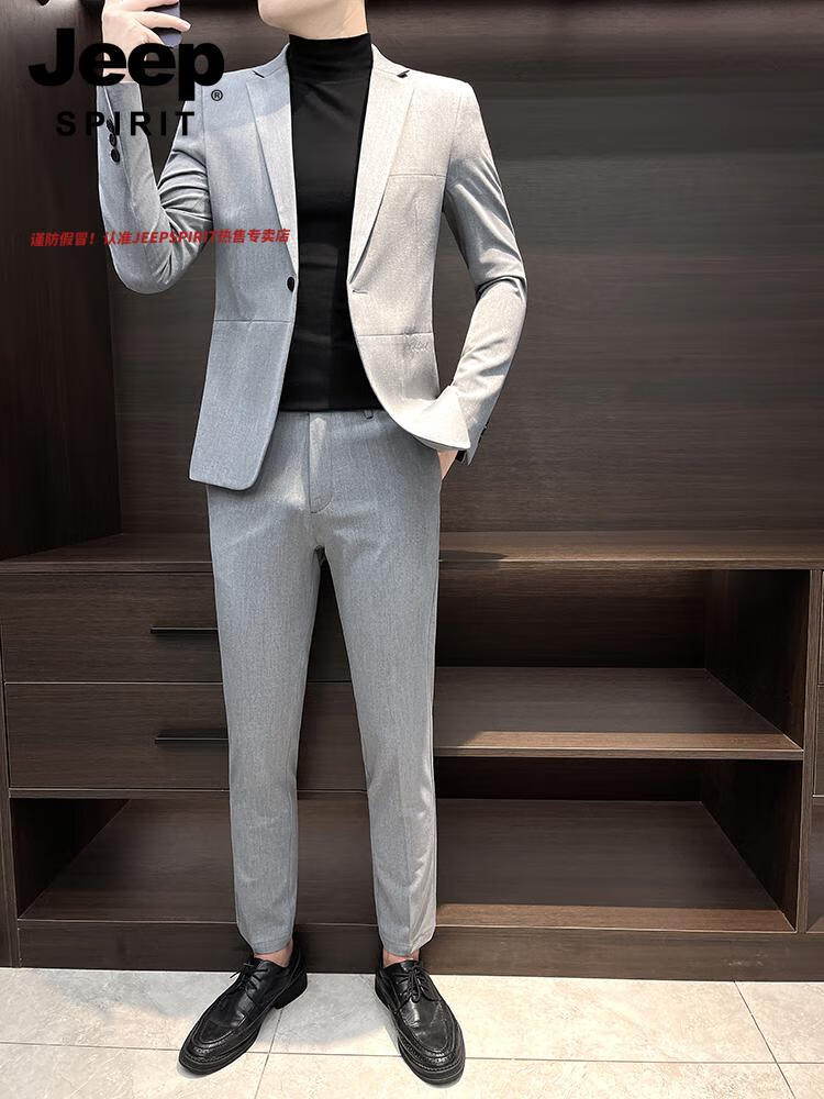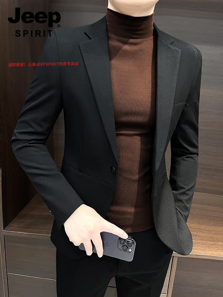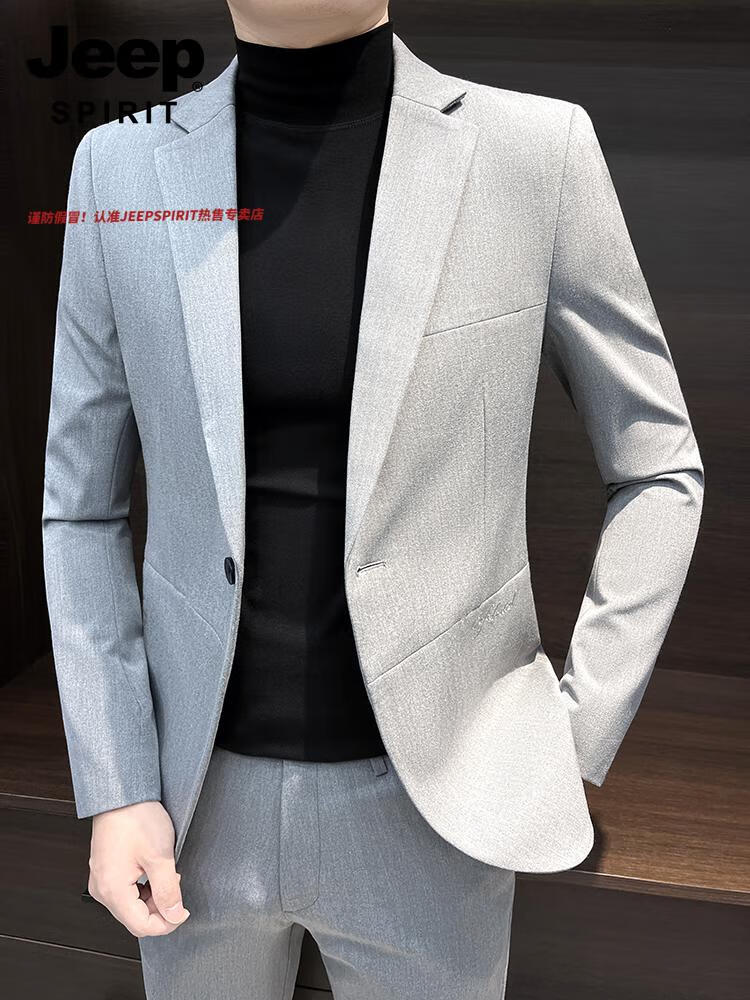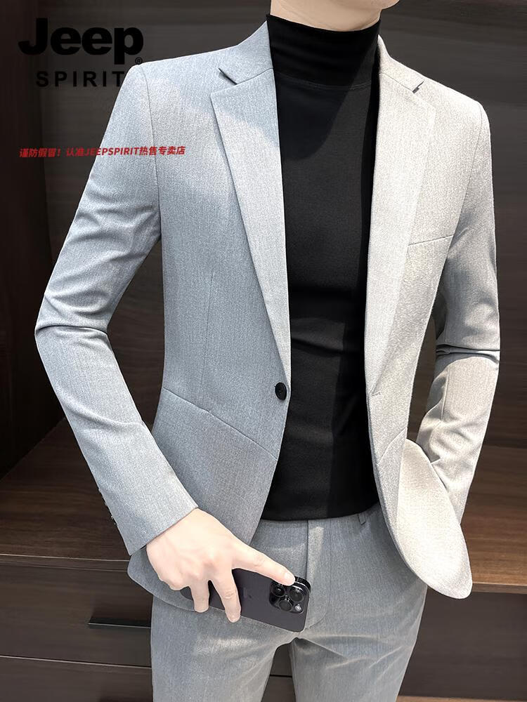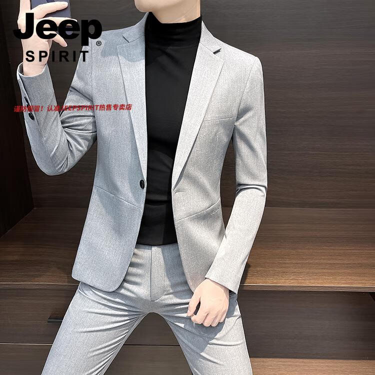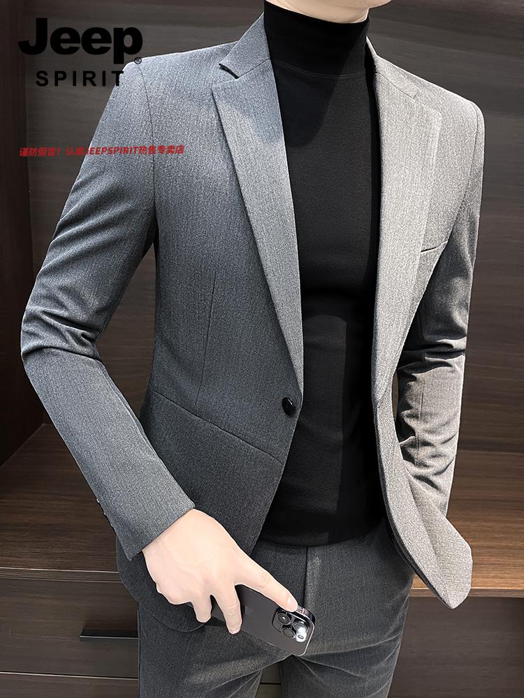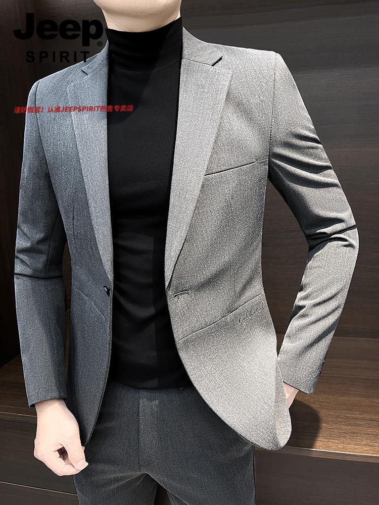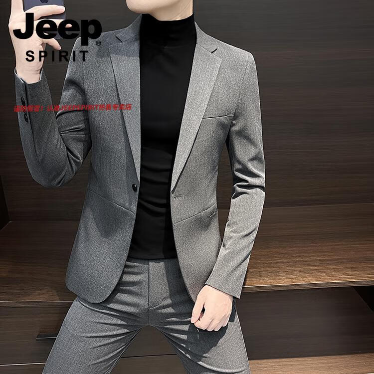 JEEP SPIRIT suit suit casual men's small suit jacket autumn and winter 2025 new business sense handsome slim Korean style casual dark gray single suit M recommended 100Jin Jin equal to within 0.5 kg