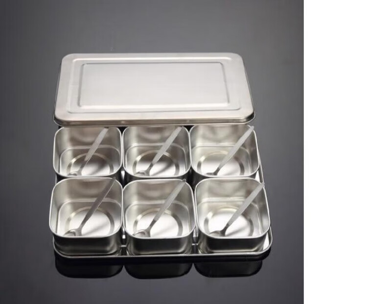 Seasoning box set of six pieces or more food grade stainless steel Japanese style flavor box set seasoning jar condiment sample retention box thickened six compartments free 6 flavor spoons with lid