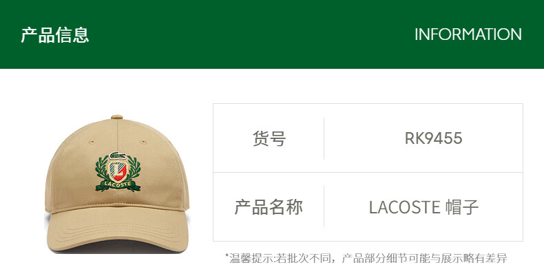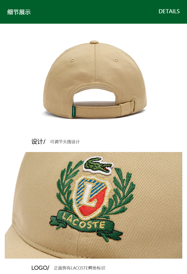 LACOSTE法国鳄鱼男女同款春夏法国制造简约日常刺绣百搭棒球帽|RK9455 02S/奶咖色