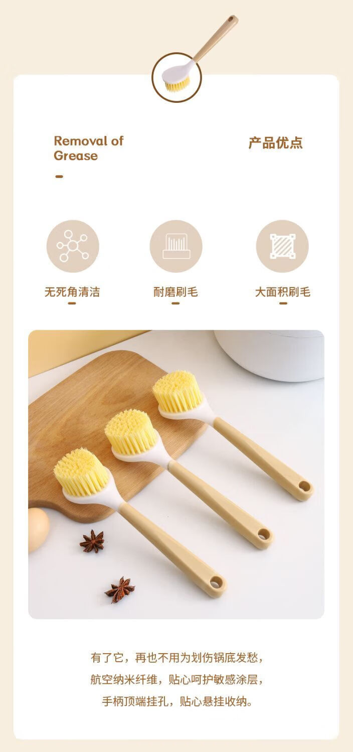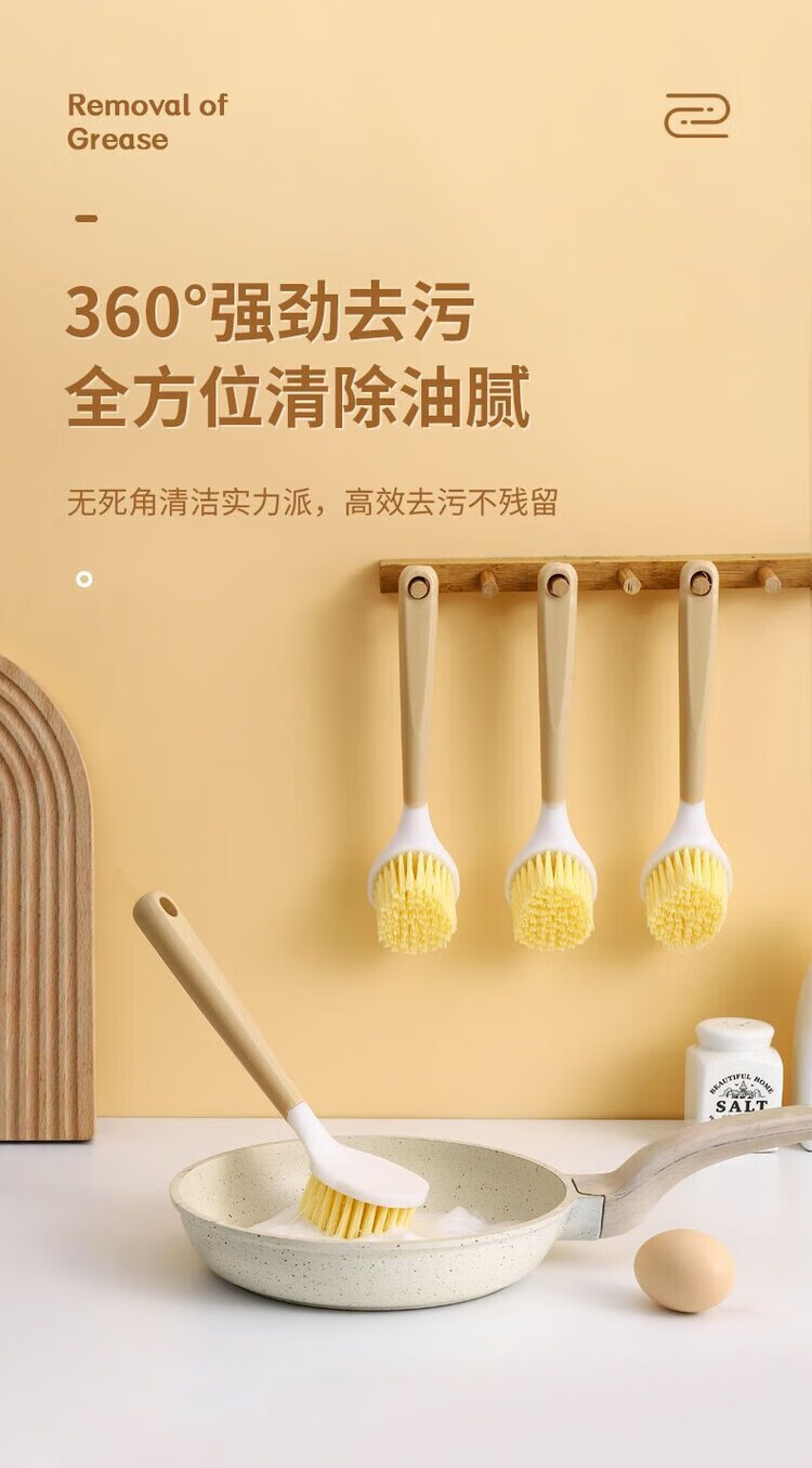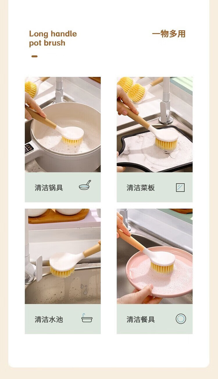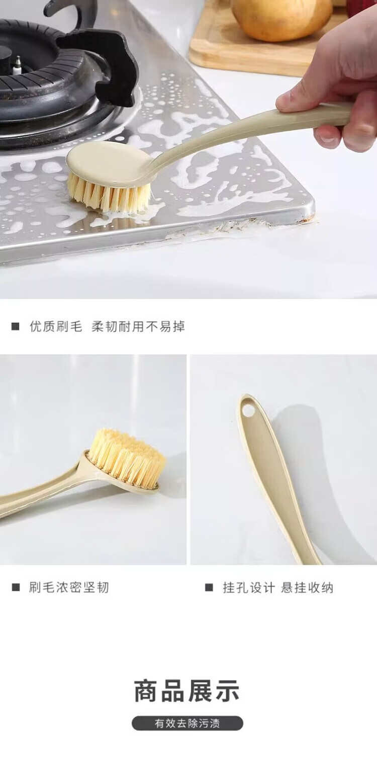 Long handle pot washing brush household small brush pot cleaning tool kitchen non-stick pot decontamination brush pot brush stove cleaning brush wooden plastic handle pot brush 1 pack