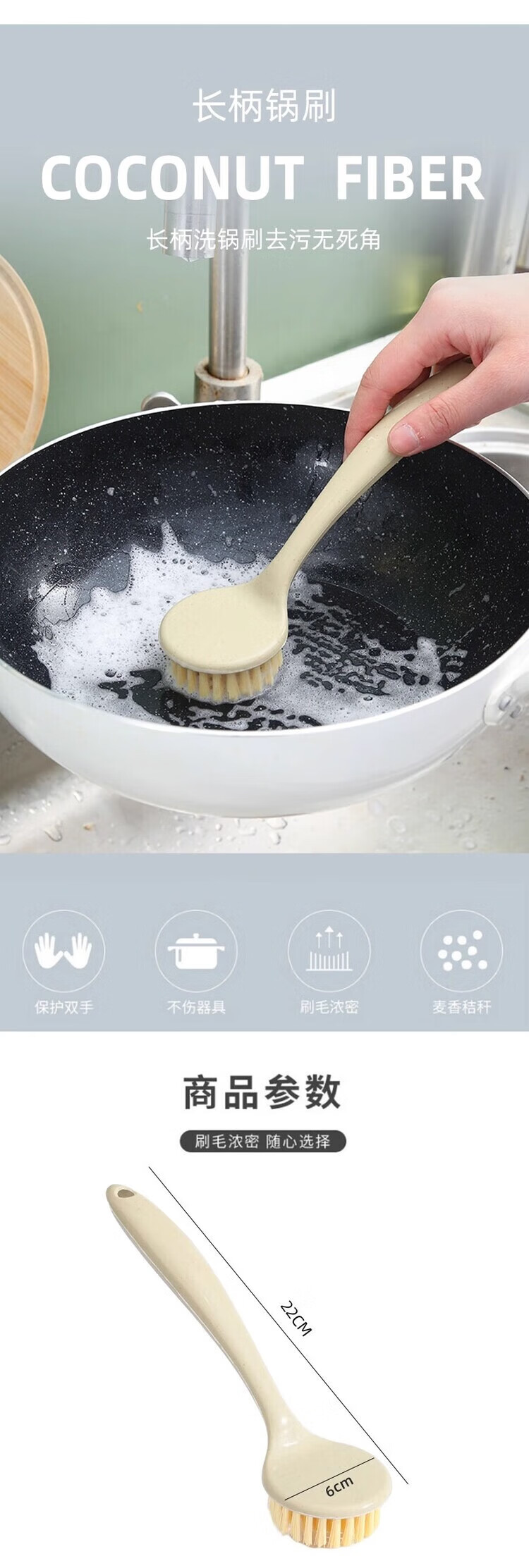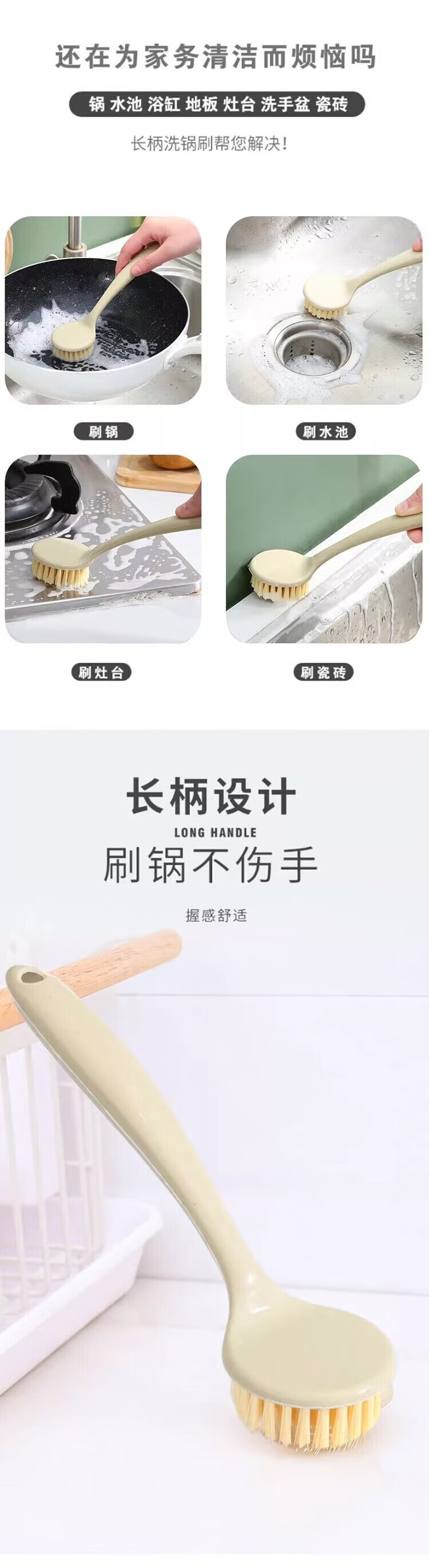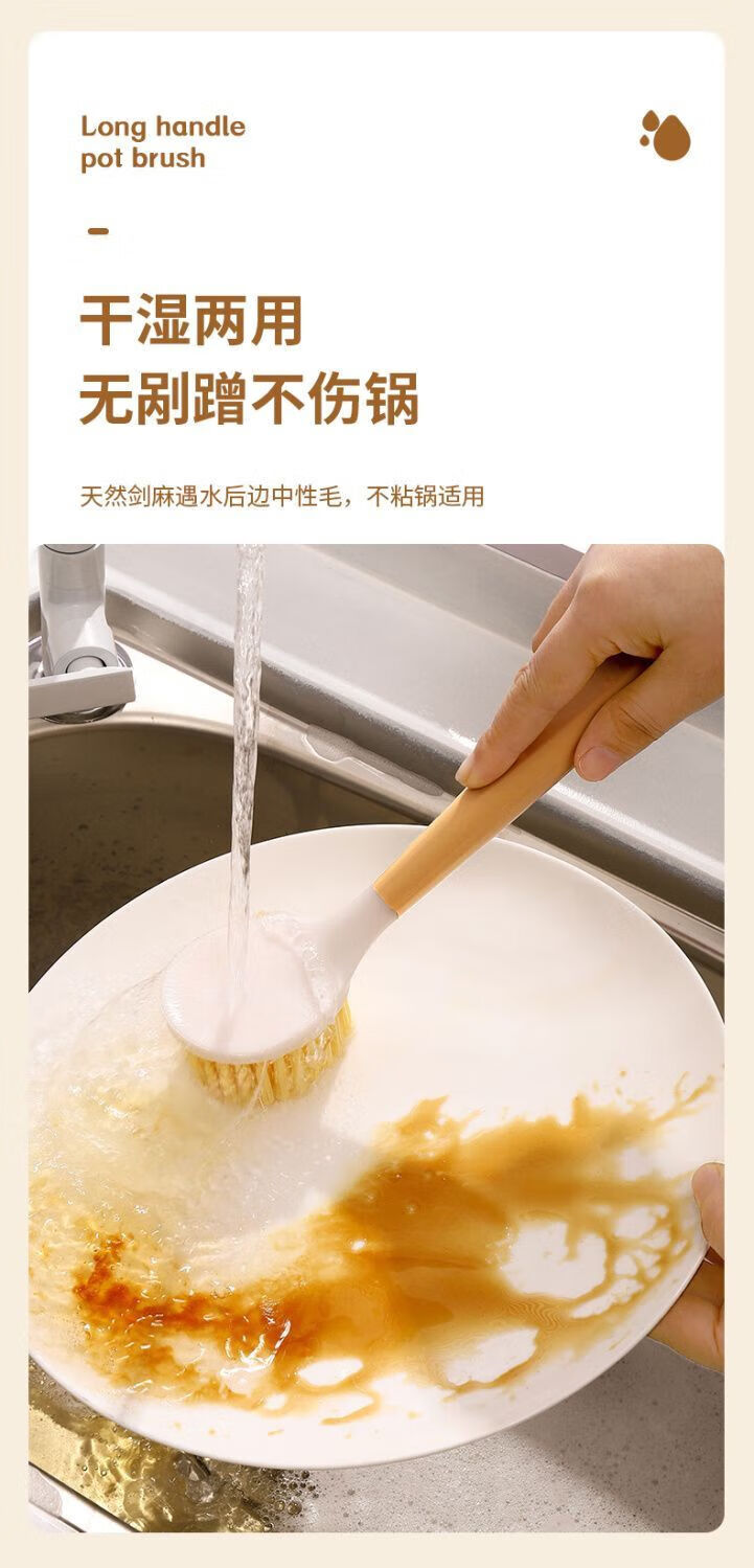 Long handle pot washing brush household small brush pot cleaning tool kitchen non-stick pot decontamination brush pot brush stove cleaning brush wooden plastic handle pot brush 1 pack