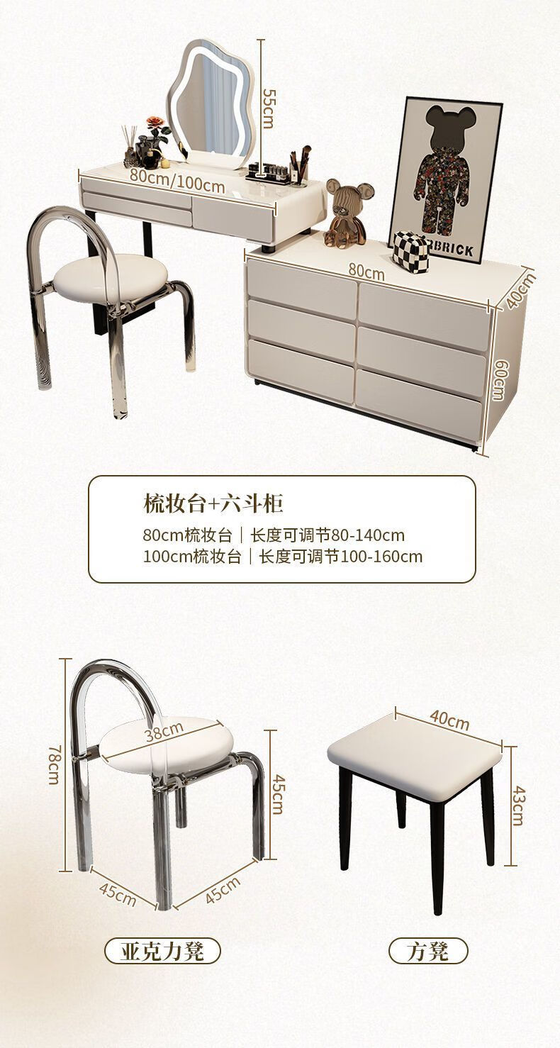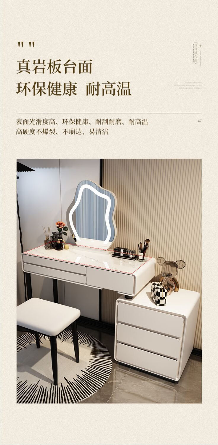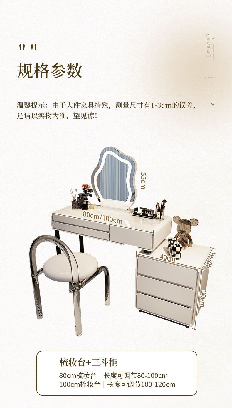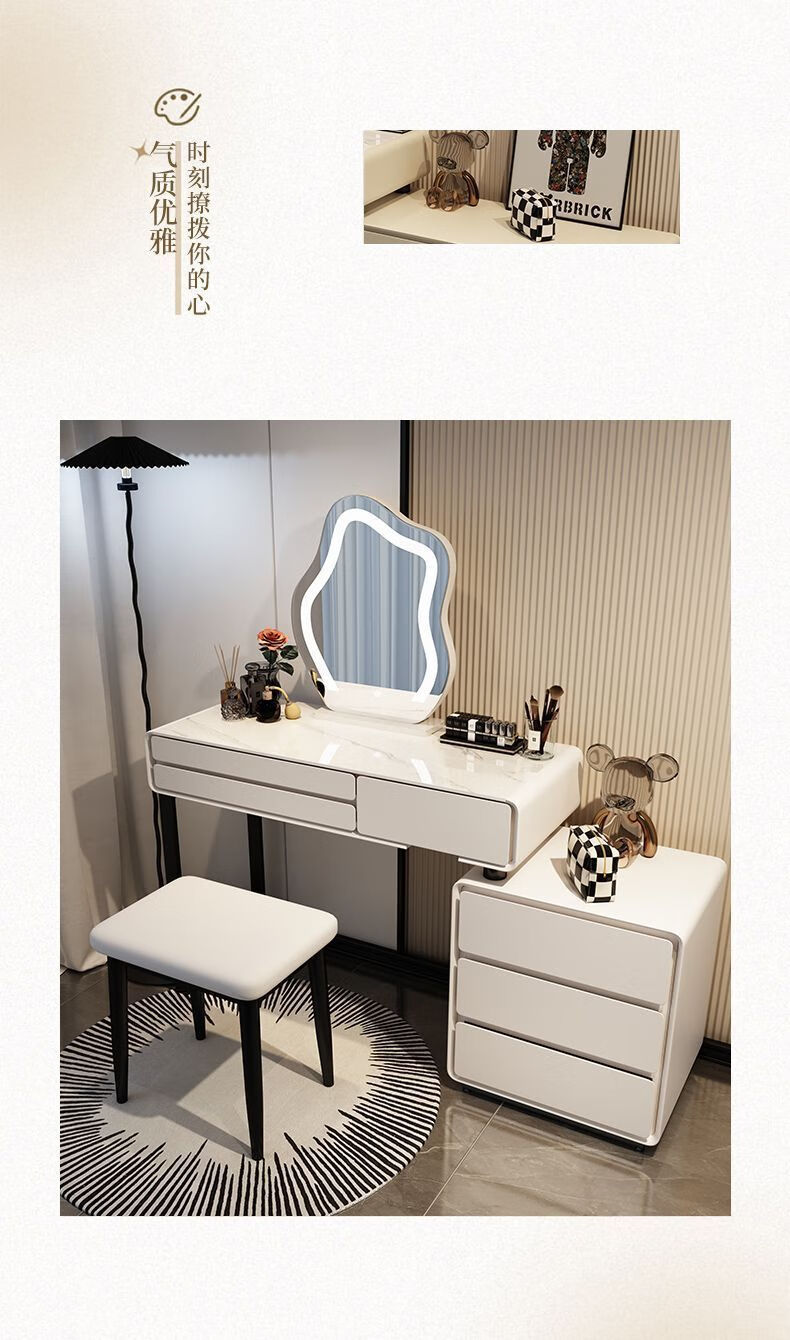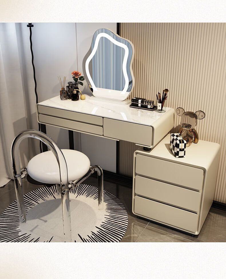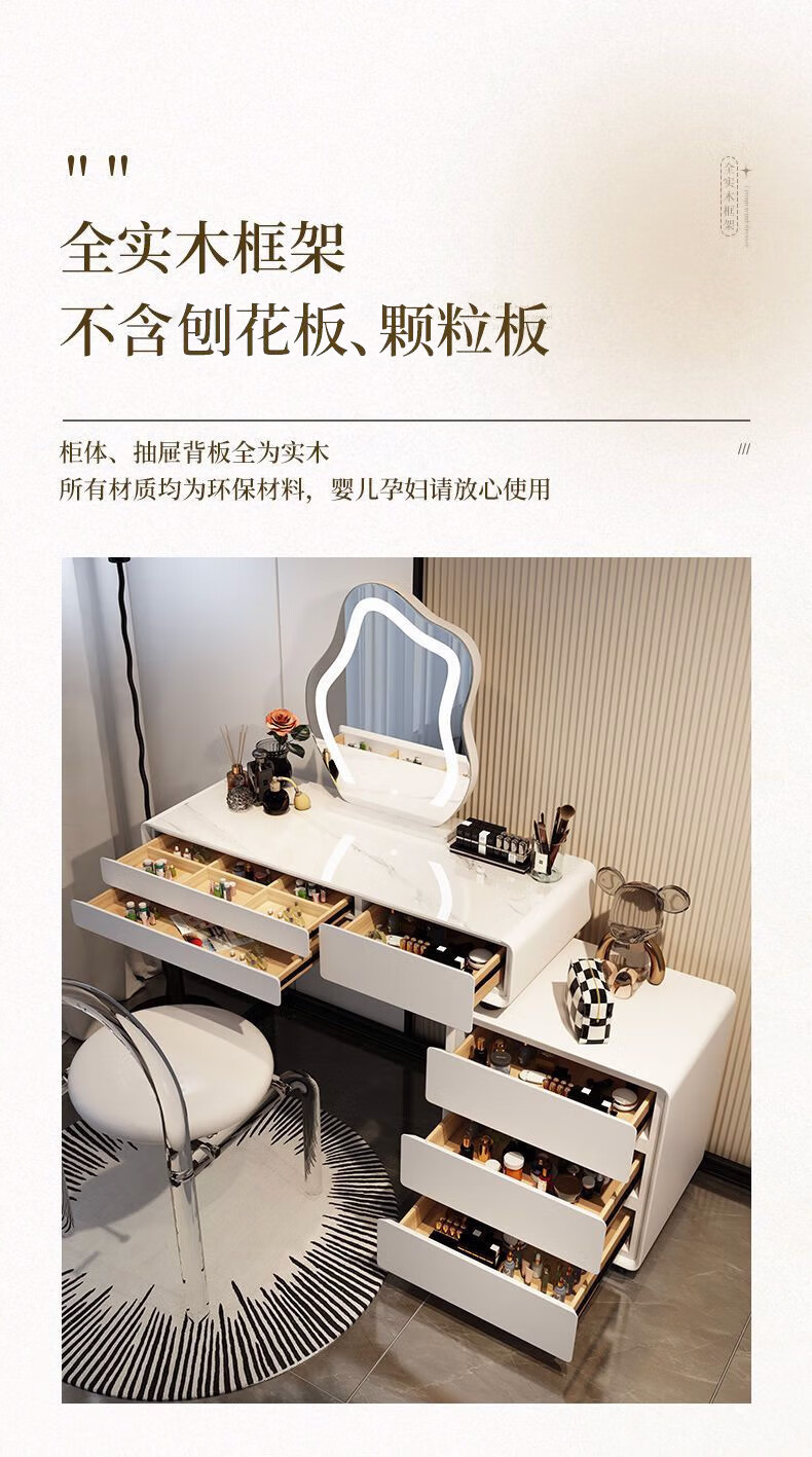 Dressing table bedroom integrated cabinet small apartment dressing table drawer cabinet solid wood slate dressing table storage makeup cabinet white 80cm table + cabinet + cloud mirror + petal chair solid wood three drawer cabinet slate countertop
