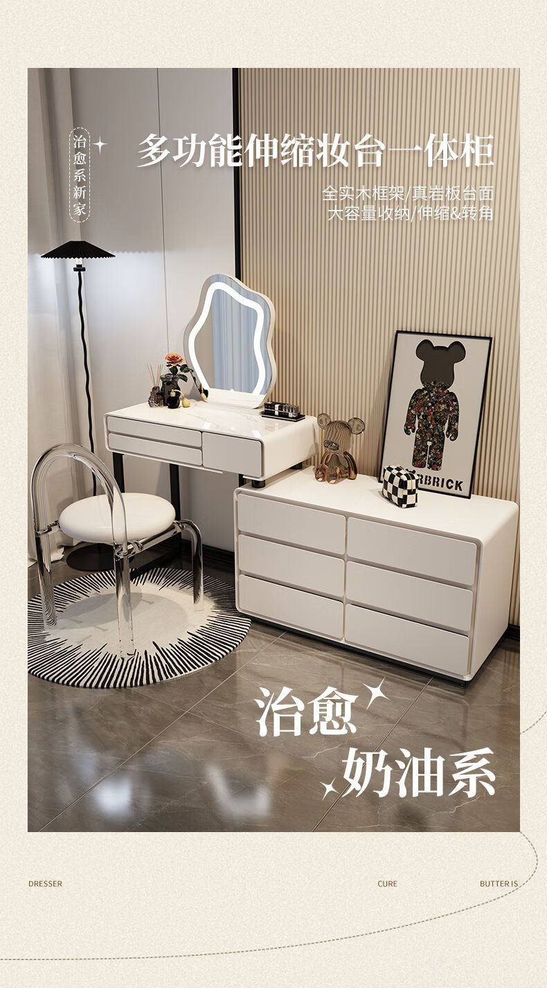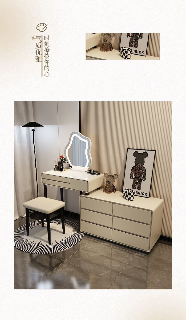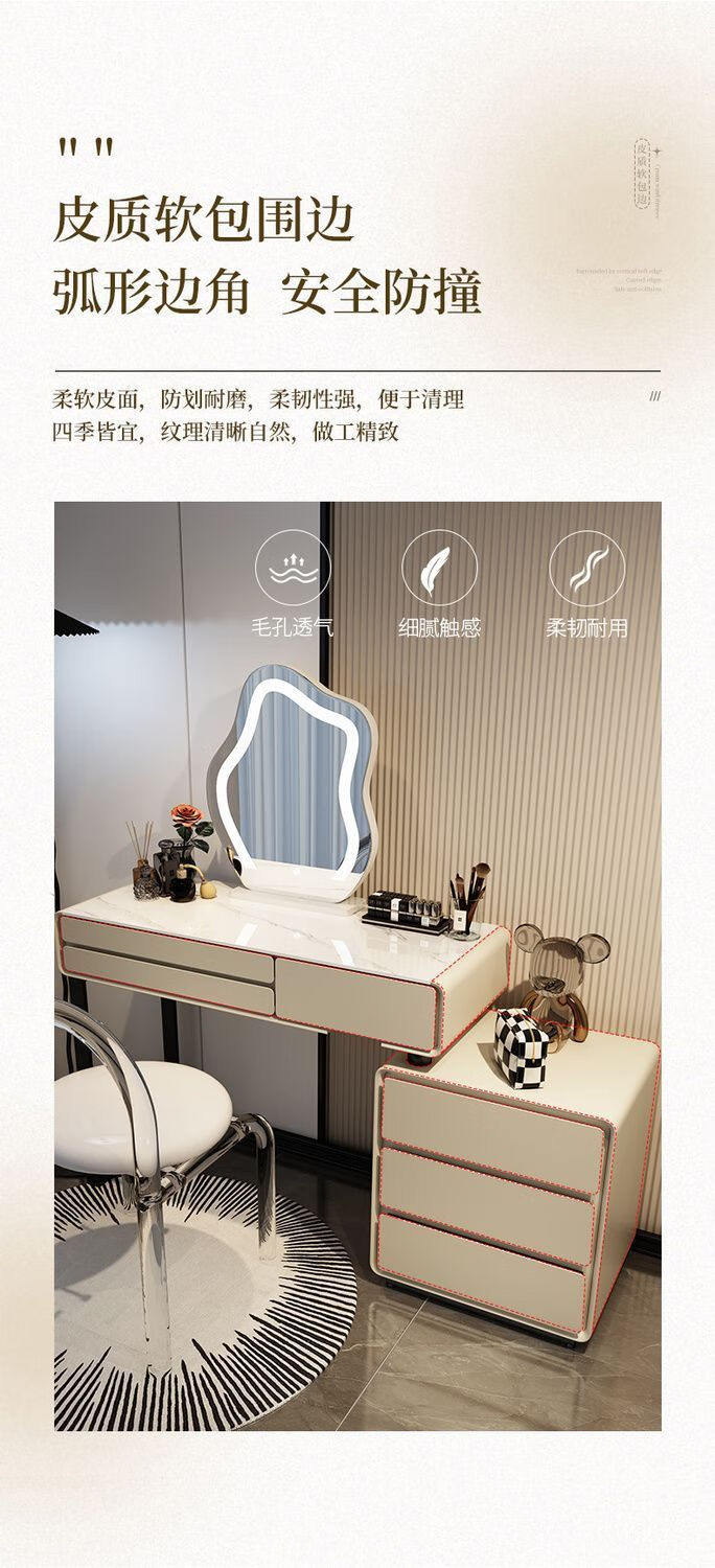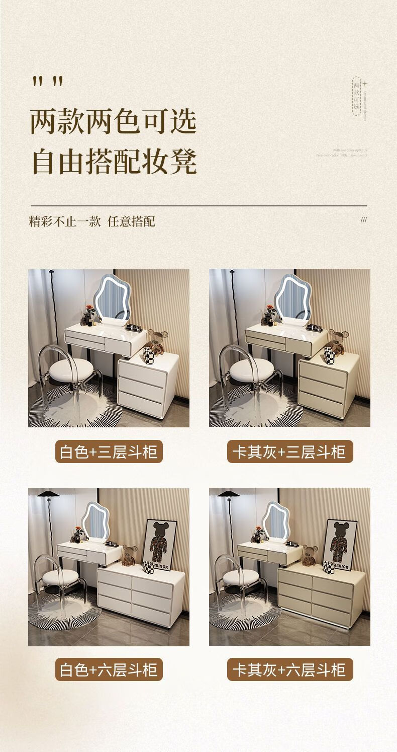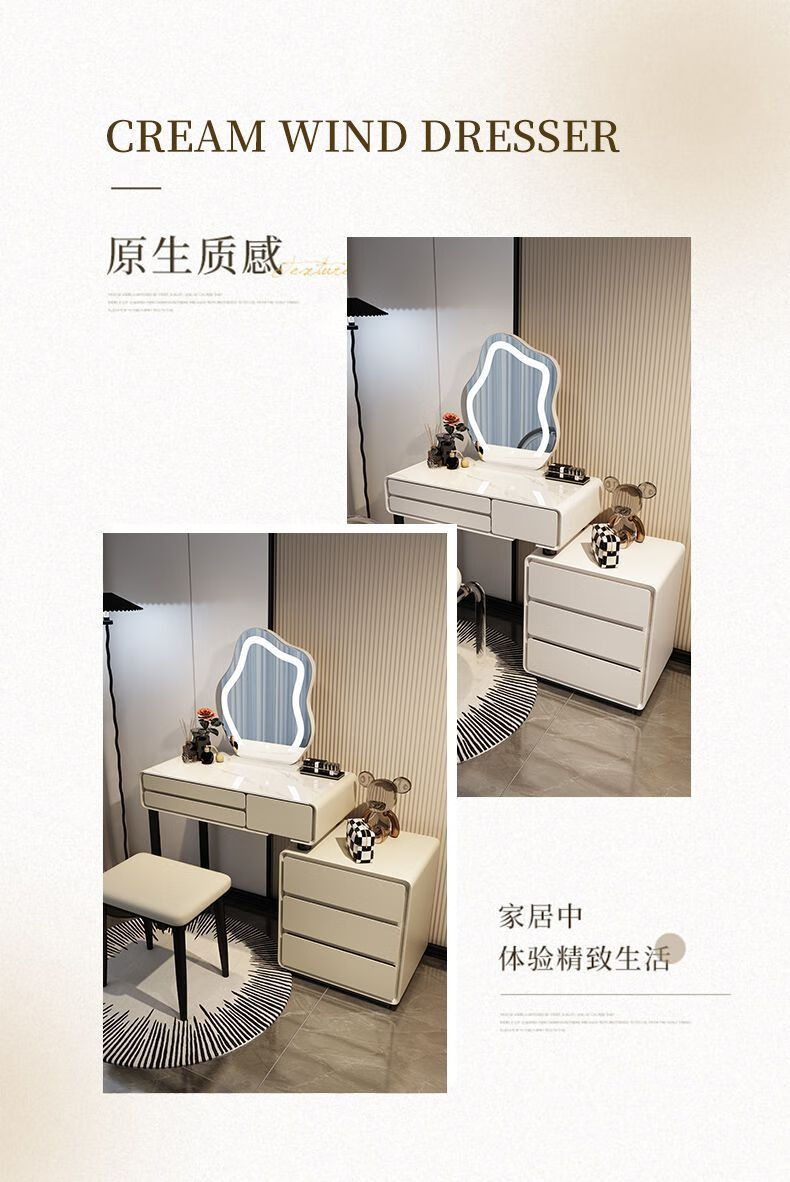 Dressing table bedroom integrated cabinet small apartment dressing table drawer cabinet solid wood slate dressing table storage makeup cabinet white 80cm table + cabinet + cloud mirror + petal chair solid wood three drawer cabinet slate countertop