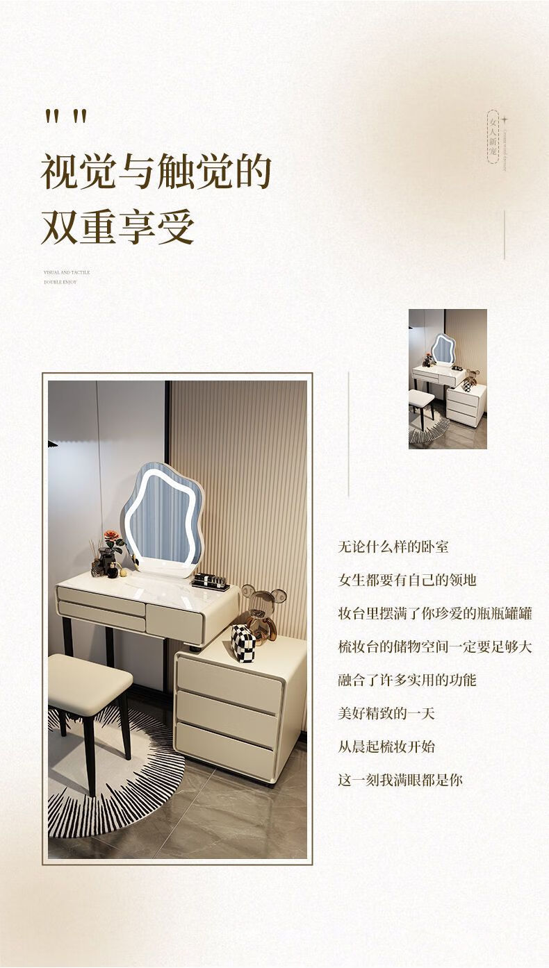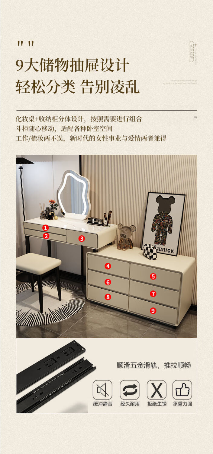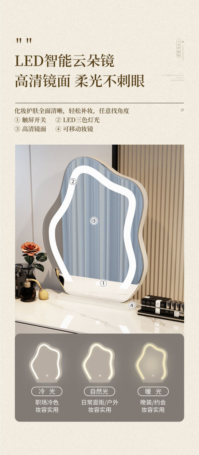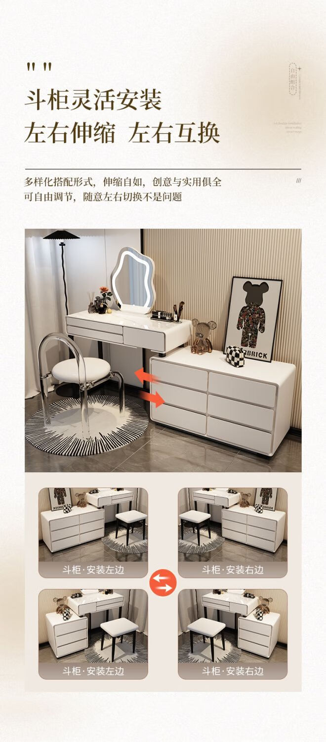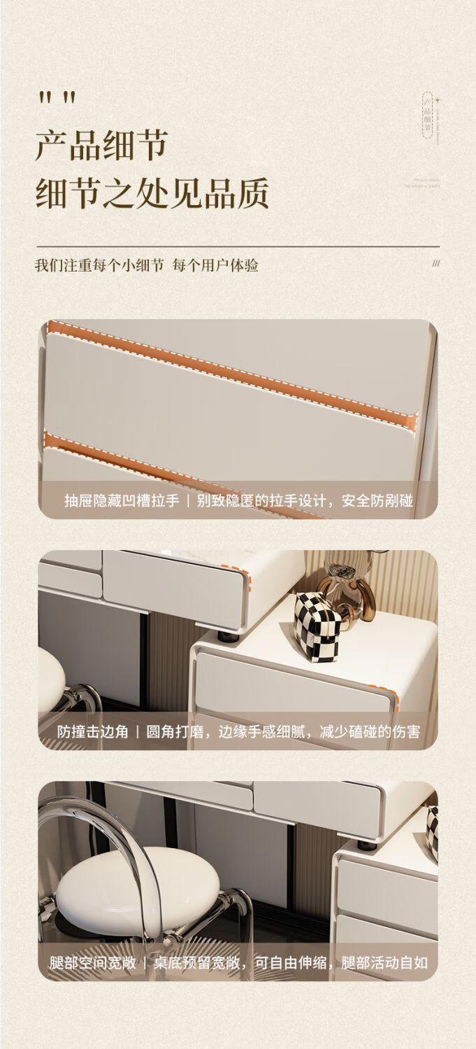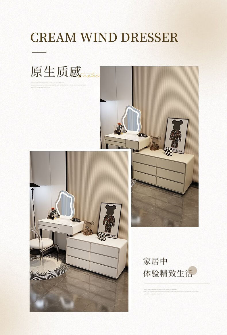 Dressing table bedroom integrated cabinet small apartment dressing table drawer cabinet solid wood slate dressing table storage makeup cabinet white 80cm table + cabinet + cloud mirror + petal chair solid wood three drawer cabinet slate countertop