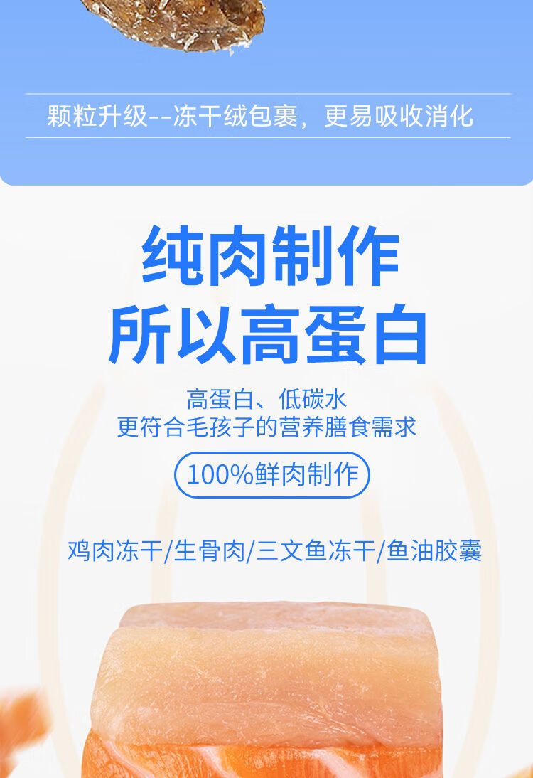 Baichan Dizi Full-priced fresh meat high protein freeze-dried cat food for general fattening, hair, cheeks, and fur. Freeze-dried cat food with rich nutrition and meat. Five pieces of fresh meat freeze-dried cat food. 10Jin Jin is equal to 0.5kg.
