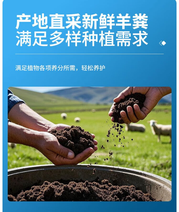 Pure sheep manure fermented organic fertilizer 10 Jin Jin is equal to 0.5 kg. General purpose fertilizer for vegetable garden, flower and fruit tree farming and household fertilizer. Inner Mongolia fermented pure sheep manure fertilizer 10 Jin Jin is equal to 0.5 kg.
