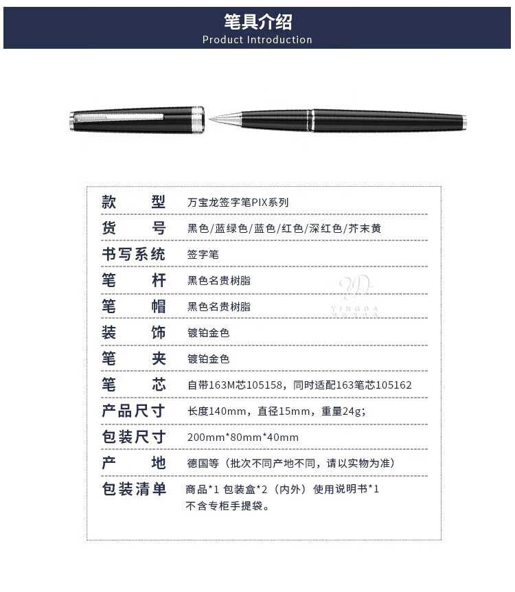 Montblanc (MONTBLANC) is not closed during the Spring Festival, New Year's Day Pix series signature pen resin ballpoint pen business gift blue 114809