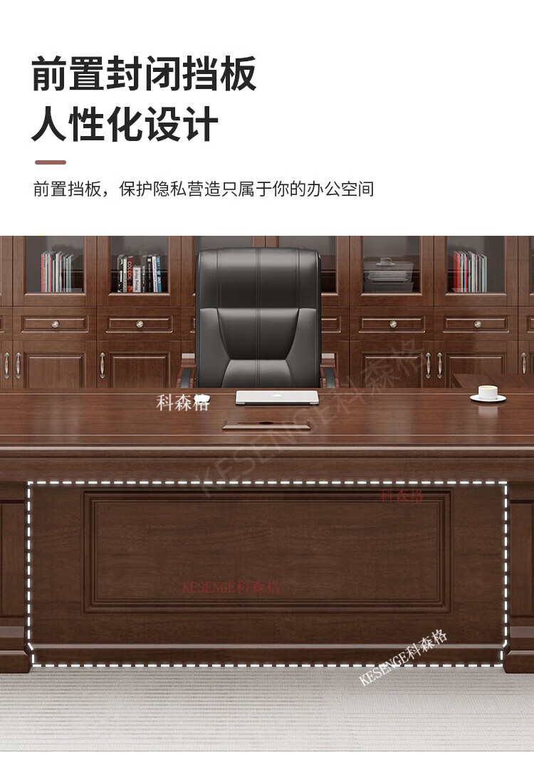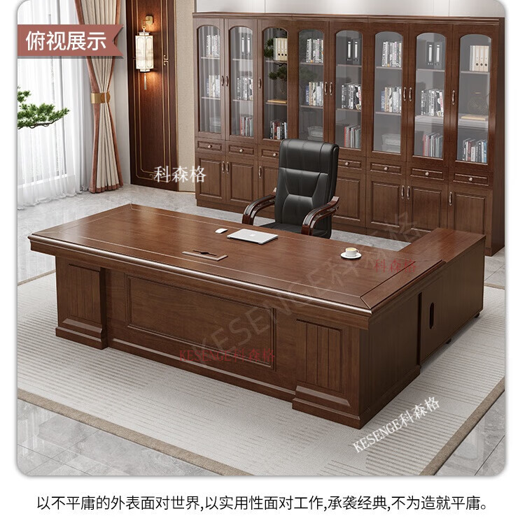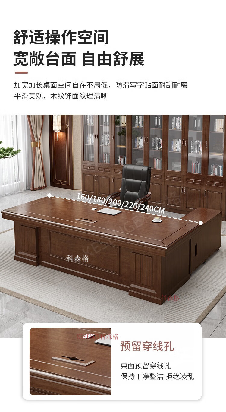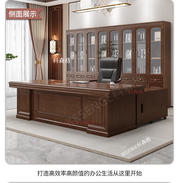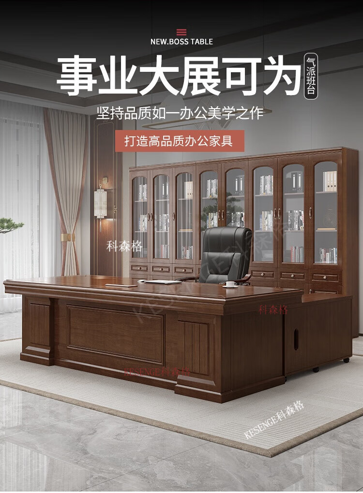 Cosenger all solid wood boss desk office desk Chinese style high-end simple boss desk office chairman president desk and chair combination boss table + double side cabinet + chair all solid wood 1.8 meters